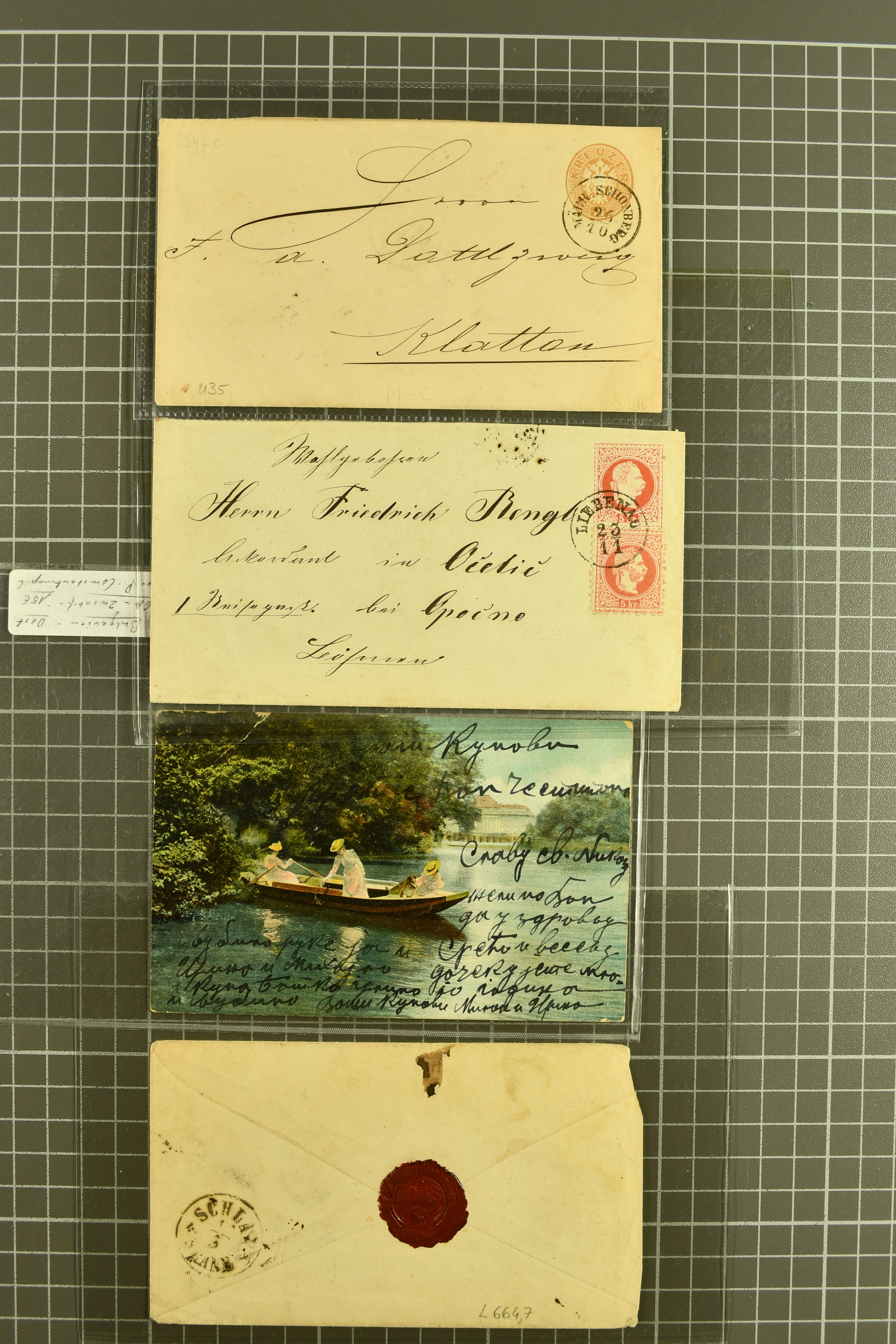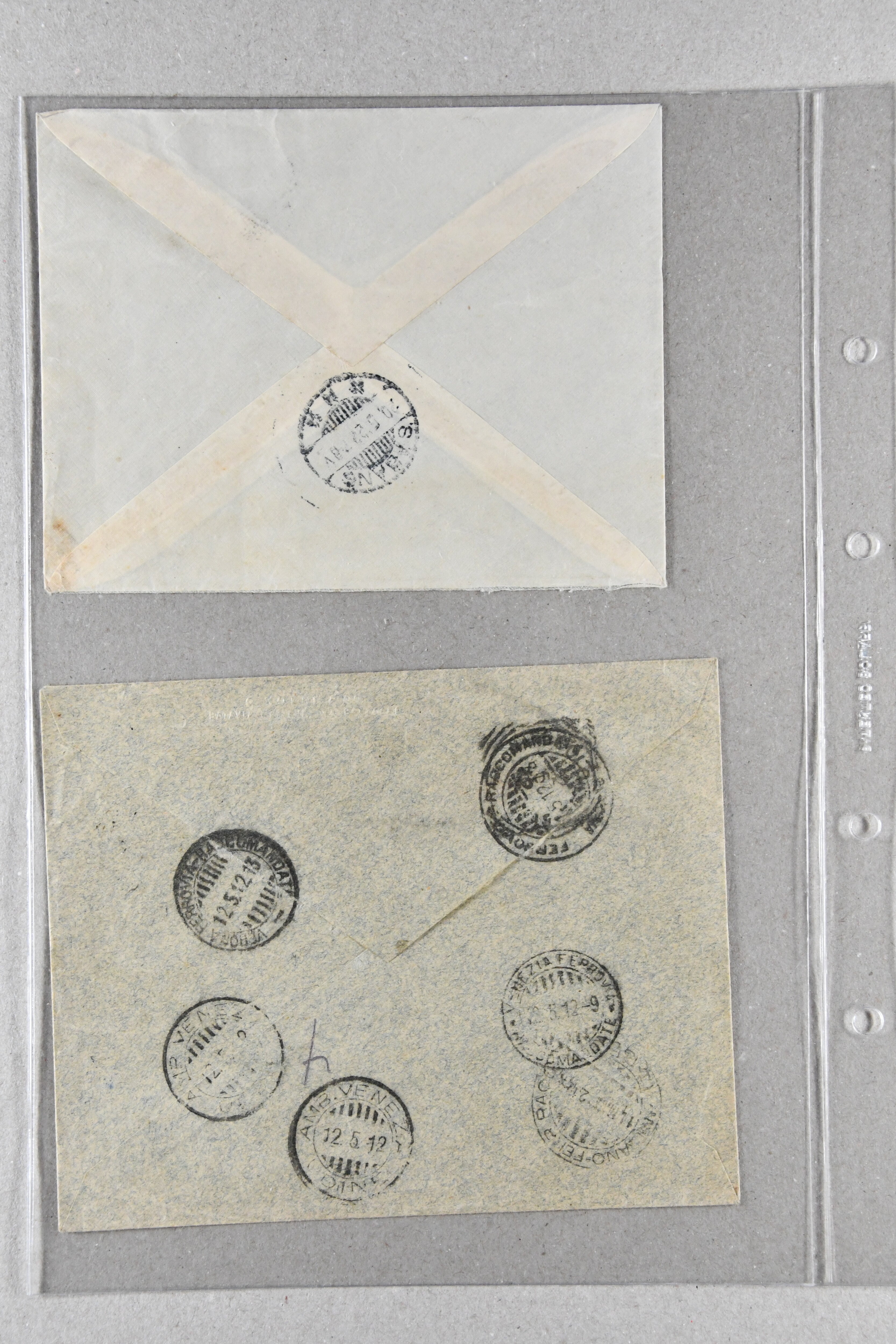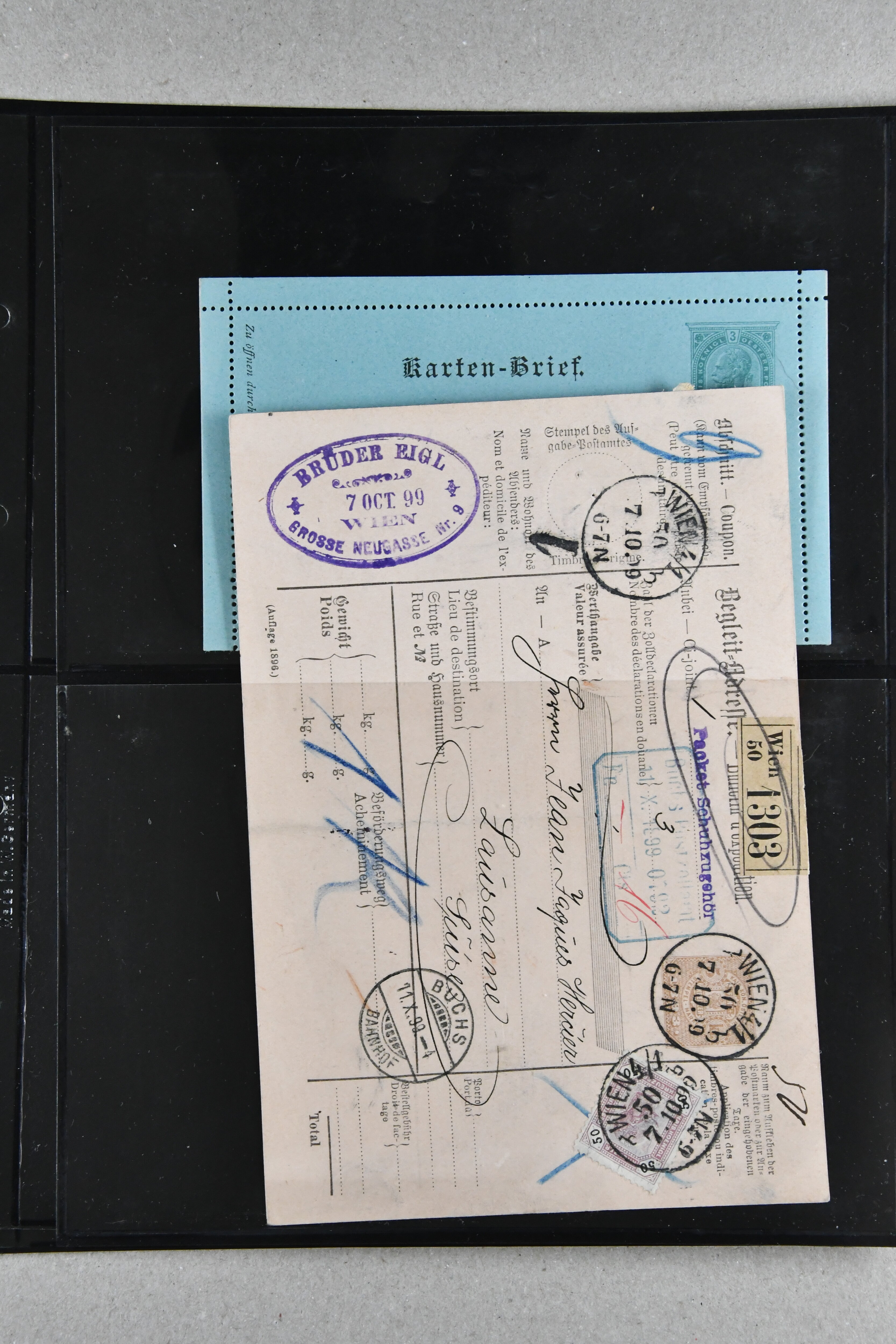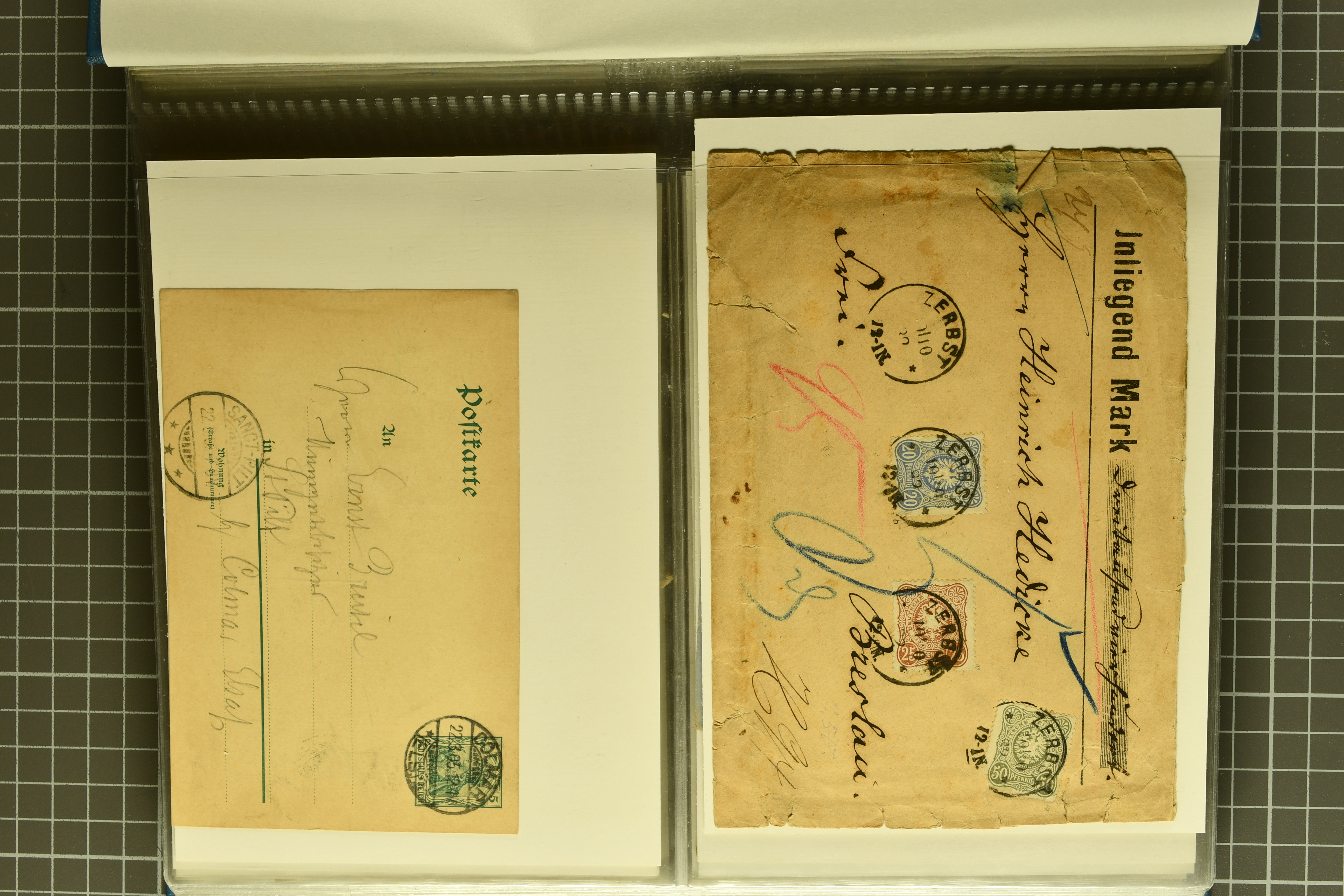 1501 cover image1870/1950c: Group 111 covers / postcards worldwide with many interesting usages including Bulgaria stationery cards from a French WWI POW in Bulgaria to France and to a Bulgarian POW in France with the corresponding censorship cancellations, a 1934 postcard written by Franz See; Poland two 1919/20 stationeries; Czechoslovakia 1929/31 three express stationery postcards; Hungary 1820 envelope from Buda Festung Ofen "F. OFEN" to Modern (Müller 1049a), 1917 complete stationery parcel card Sopron to Constantinople Turkey with 2 kr Franz-Josef & 25 f. Turul; Latvia airmail cover 1928 Riga to Luzern Switzerland, DERULUFT Riga, Invalid stamps; Austria three 1864/67 stationery envelopes with additional frankings, postcard 1898 from Austrian PO in Constantinople to Gouadeloupe, 1889 postcard from FPO Sarajevo; France Alsace française 1917 Gerardmer to Wesserling, censure militaire, 1902 PC from Majunga Madagascar; Romania 1907/21 three PC's to Constantinople or Smyrna; Russia eleven imperial covers / stationeries incl. MTF's; Tunesia 1939 first airmal service Marseille Tunis Damascus; Great Britain 1943 three censored covers to Switzerland; Bavaria 1906 registerd cover to Simla, then Calcutta with Aden Sea Post cancellation, response postcard used 1912 from Constantinople; German Empire PPC Darmstadt to Paris, forwarded to Riga Russia 1909, combination franking with 10 pf. and 10 c.; Belgium 1902 express postcard, 1907 card with punctured and embossed corners; Netherlands 1938 Airmail First flight Amsterdam Batavia Sydney; Ottoman Empire 1907 postcard to New York, four cards to Brazil and five to Romania; Singapore 1905 picture postcard French Ship Mail Ligne N PAQ FR No 8 to France; further items from Japan, Lebanon, Serbia, Sweden, Hyderabad, India, Switzerland, Mexico, Cuba, Egypt, and Finland, in addition India 1957-70, group 48 First Day Covers (Image 1) (Image 2) (Image 3) (Image 4) (Image 5) (Image 6) (Image 7) (Image 8) (Image 9) (Image 10) (Image 11) (Image 12) (Image 13) (Image 14) (Image 15) (Image 16)
