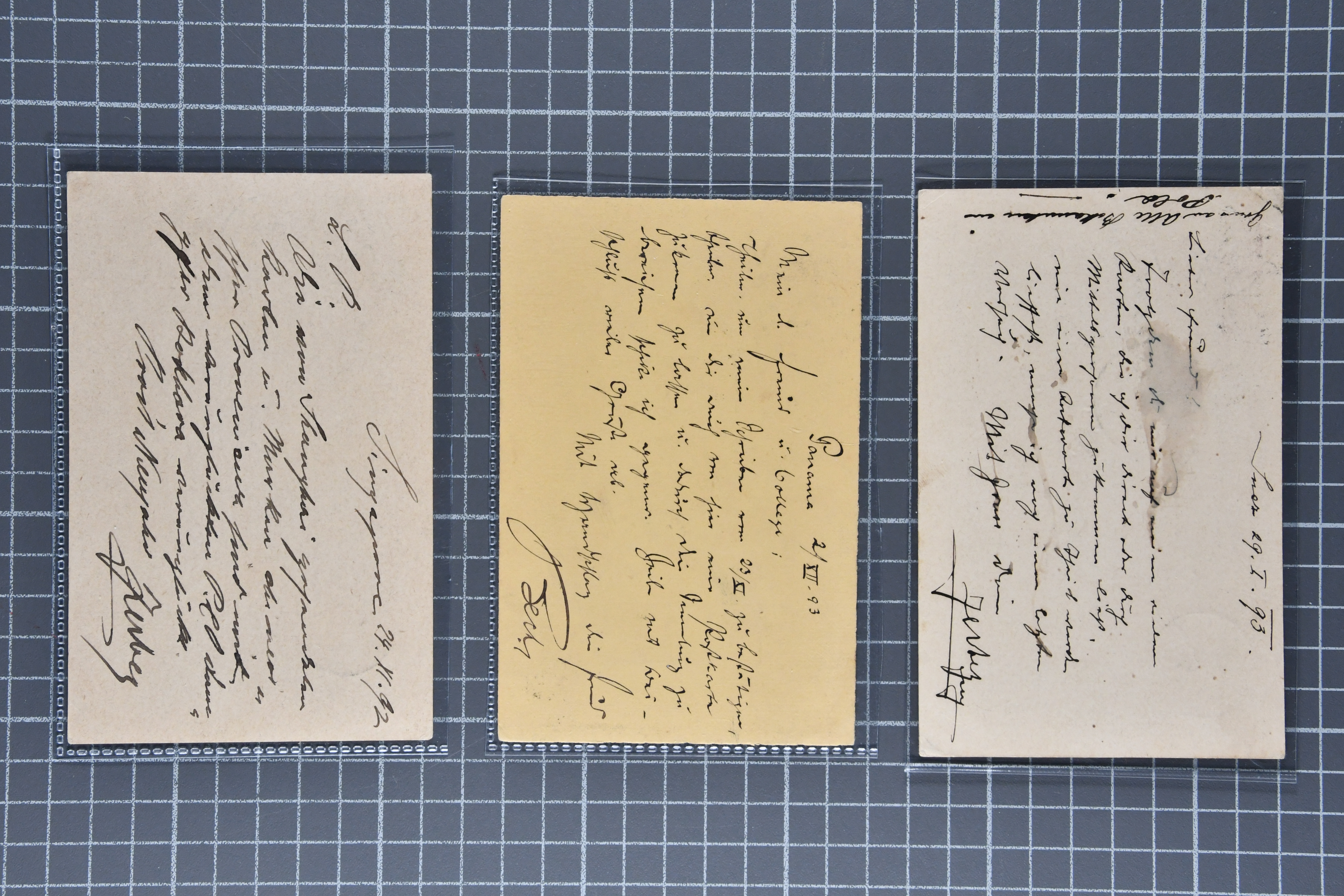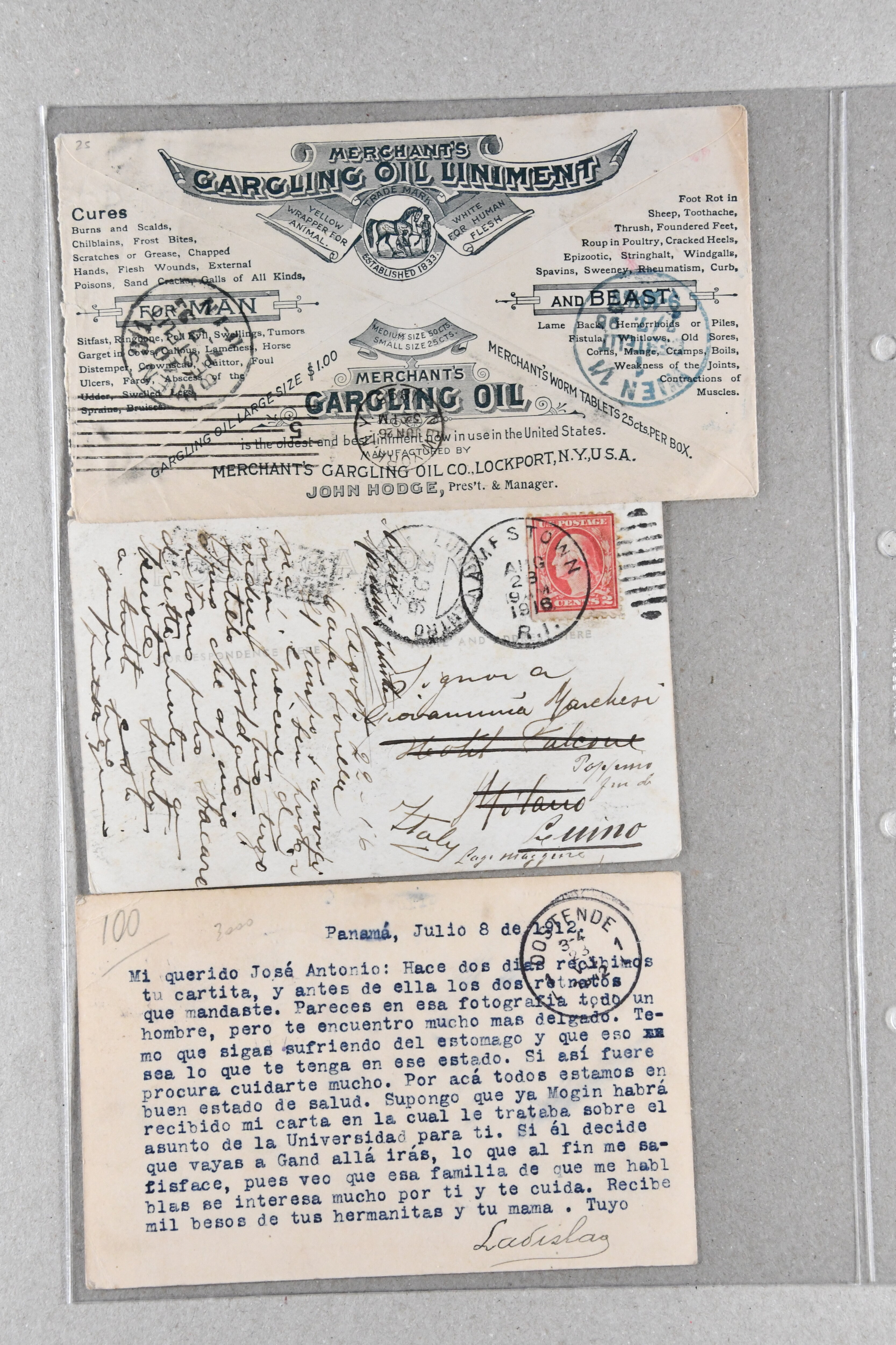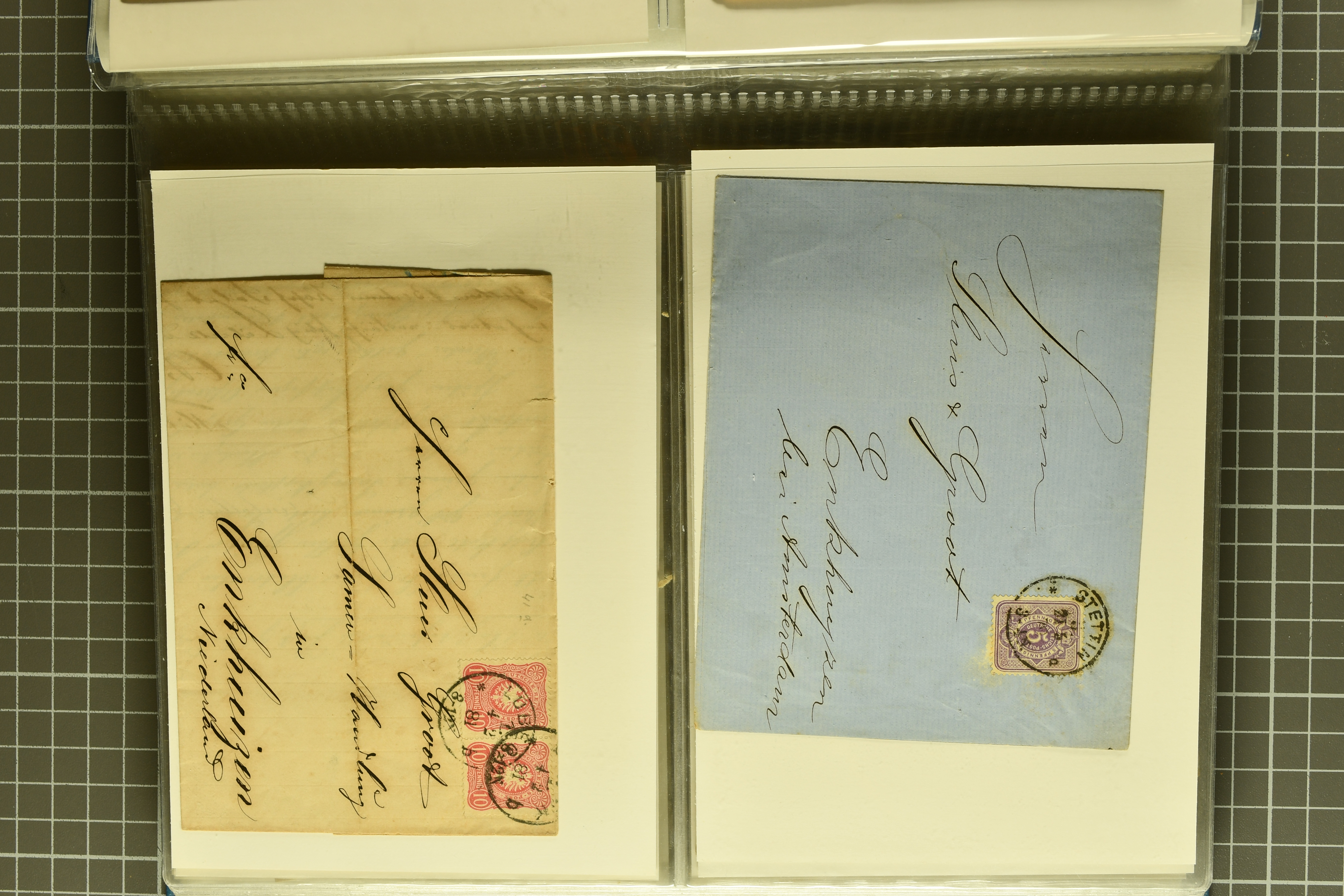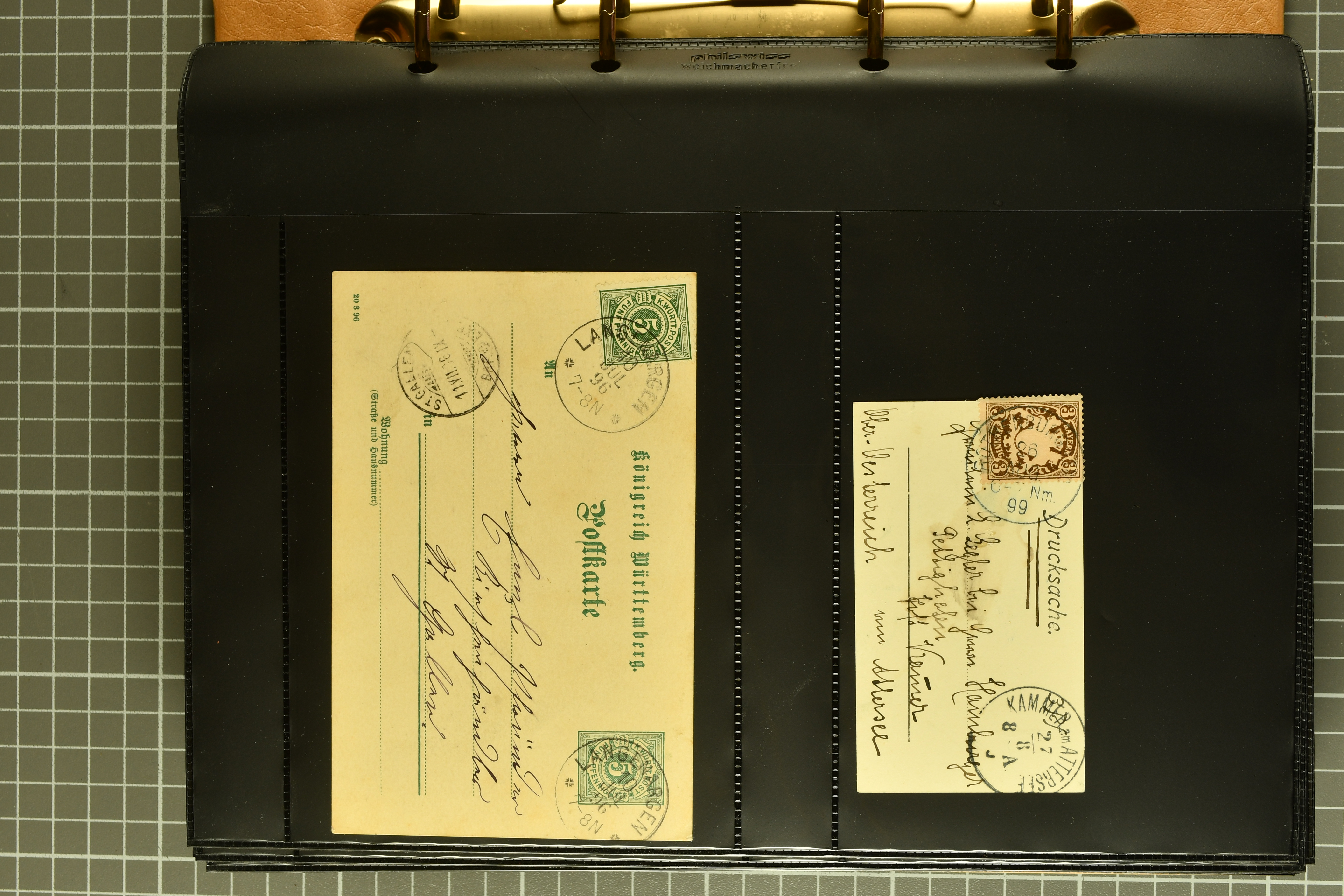 1501 cover image1870/1950c: Group 111 covers / postcards worldwide with many interesting usages including Bulgaria stationery cards from a French WWI POW in Bulgaria to France and to a Bulgarian POW in France with the corresponding censorship cancellations, a 1934 postcard written by Franz See; Poland two 1919/20 stationeries; Czechoslovakia 1929/31 three express stationery postcards; Hungary 1820 envelope from Buda Festung Ofen "F. OFEN" to Modern (Müller 1049a), 1917 complete stationery parcel card Sopron to Constantinople Turkey with 2 kr Franz-Josef & 25 f. Turul; Latvia airmail cover 1928 Riga to Luzern Switzerland, DERULUFT Riga, Invalid stamps; Austria three 1864/67 stationery envelopes with additional frankings, postcard 1898 from Austrian PO in Constantinople to Gouadeloupe, 1889 postcard from FPO Sarajevo; France Alsace française 1917 Gerardmer to Wesserling, censure militaire, 1902 PC from Majunga Madagascar; Romania 1907/21 three PC's to Constantinople or Smyrna; Russia eleven imperial covers / stationeries incl. MTF's; Tunesia 1939 first airmal service Marseille Tunis Damascus; Great Britain 1943 three censored covers to Switzerland; Bavaria 1906 registerd cover to Simla, then Calcutta with Aden Sea Post cancellation, response postcard used 1912 from Constantinople; German Empire PPC Darmstadt to Paris, forwarded to Riga Russia 1909, combination franking with 10 pf. and 10 c.; Belgium 1902 express postcard, 1907 card with punctured and embossed corners; Netherlands 1938 Airmail First flight Amsterdam Batavia Sydney; Ottoman Empire 1907 postcard to New York, four cards to Brazil and five to Romania; Singapore 1905 picture postcard French Ship Mail Ligne N PAQ FR No 8 to France; further items from Japan, Lebanon, Serbia, Sweden, Hyderabad, India, Switzerland, Mexico, Cuba, Egypt, and Finland, in addition India 1957-70, group 48 First Day Covers (Image 1) (Image 2) (Image 3) (Image 4) (Image 5) (Image 6) (Image 7) (Image 8) (Image 9) (Image 10) (Image 11) (Image 12) (Image 13) (Image 14) (Image 15) (Image 16)