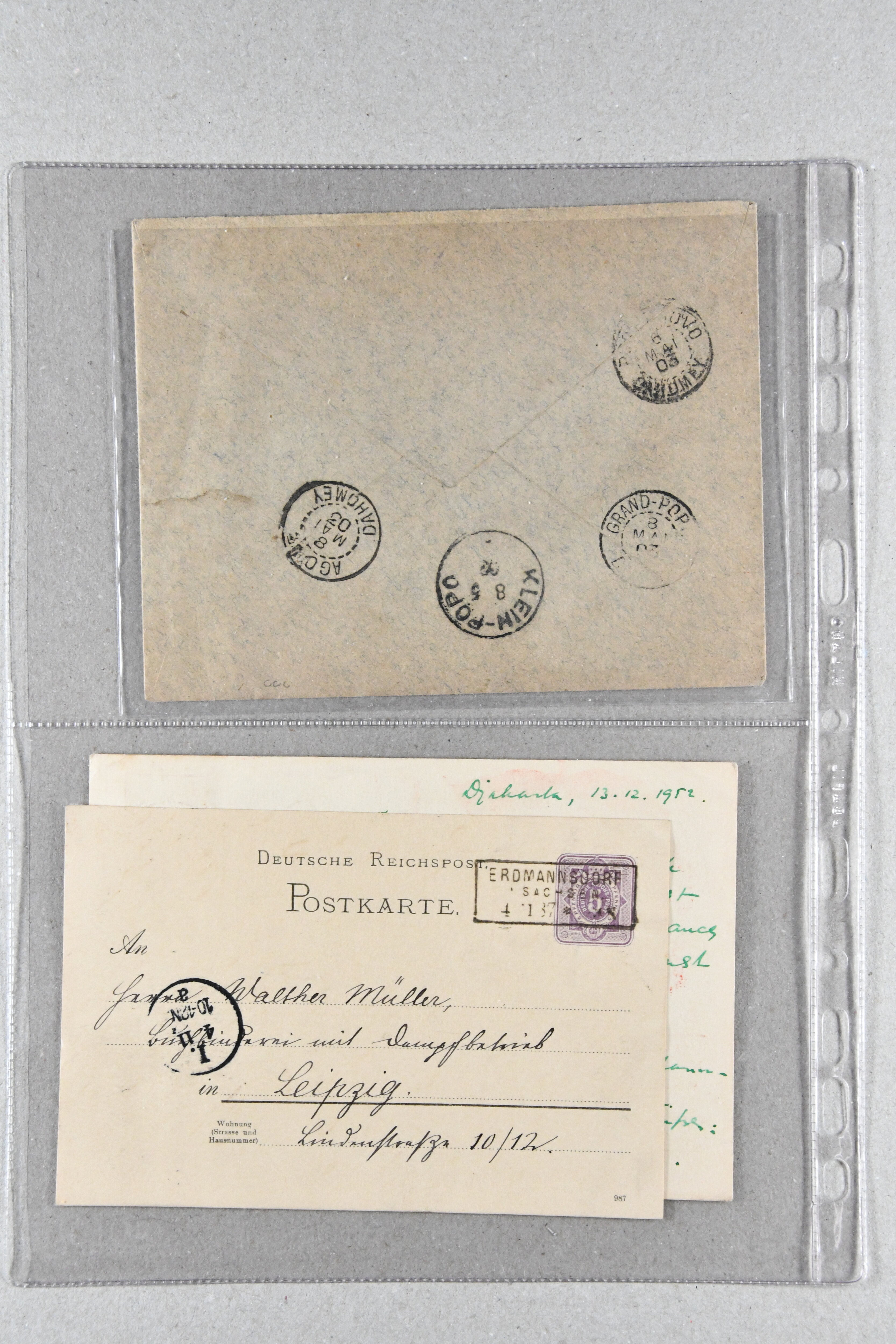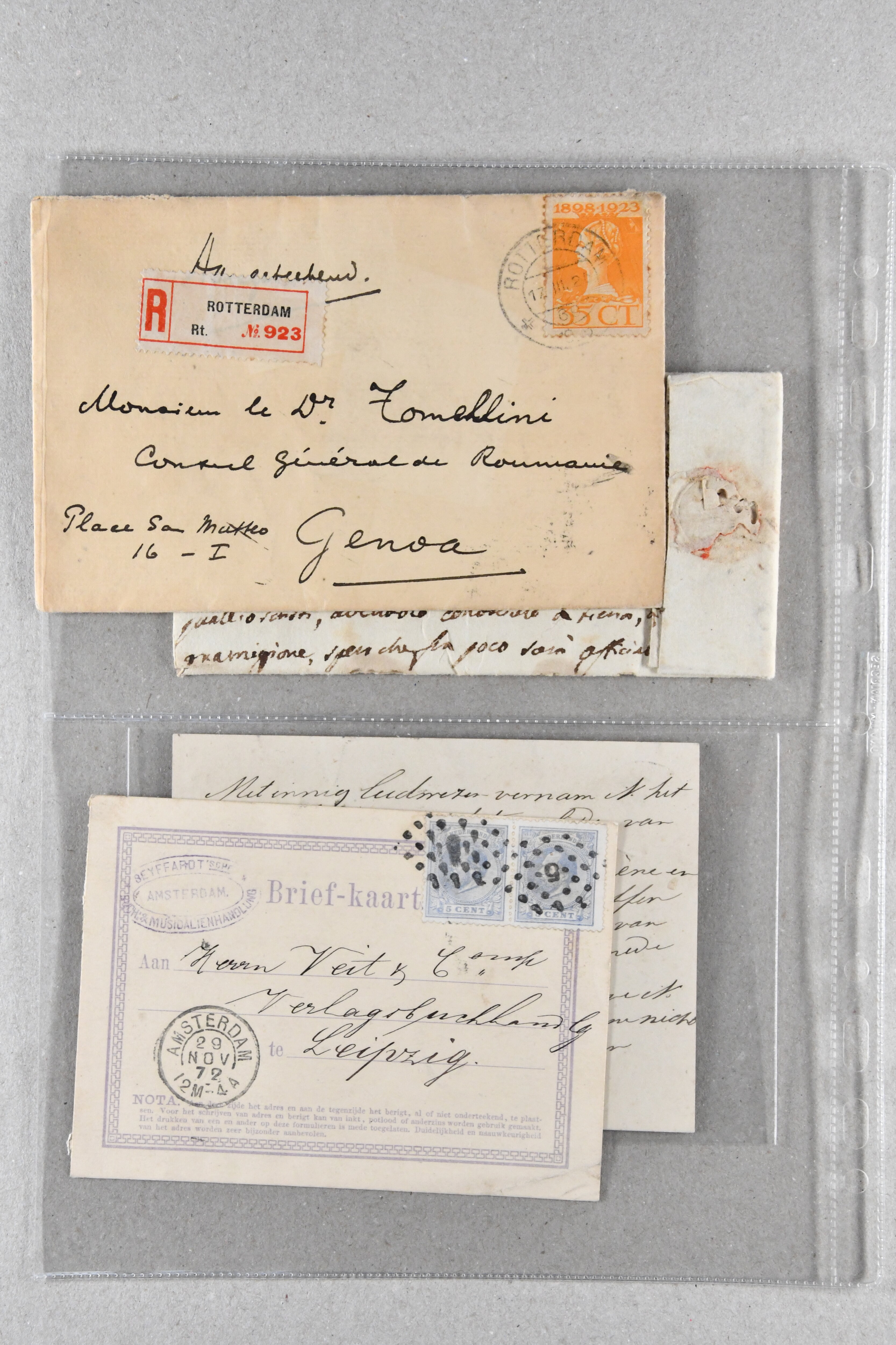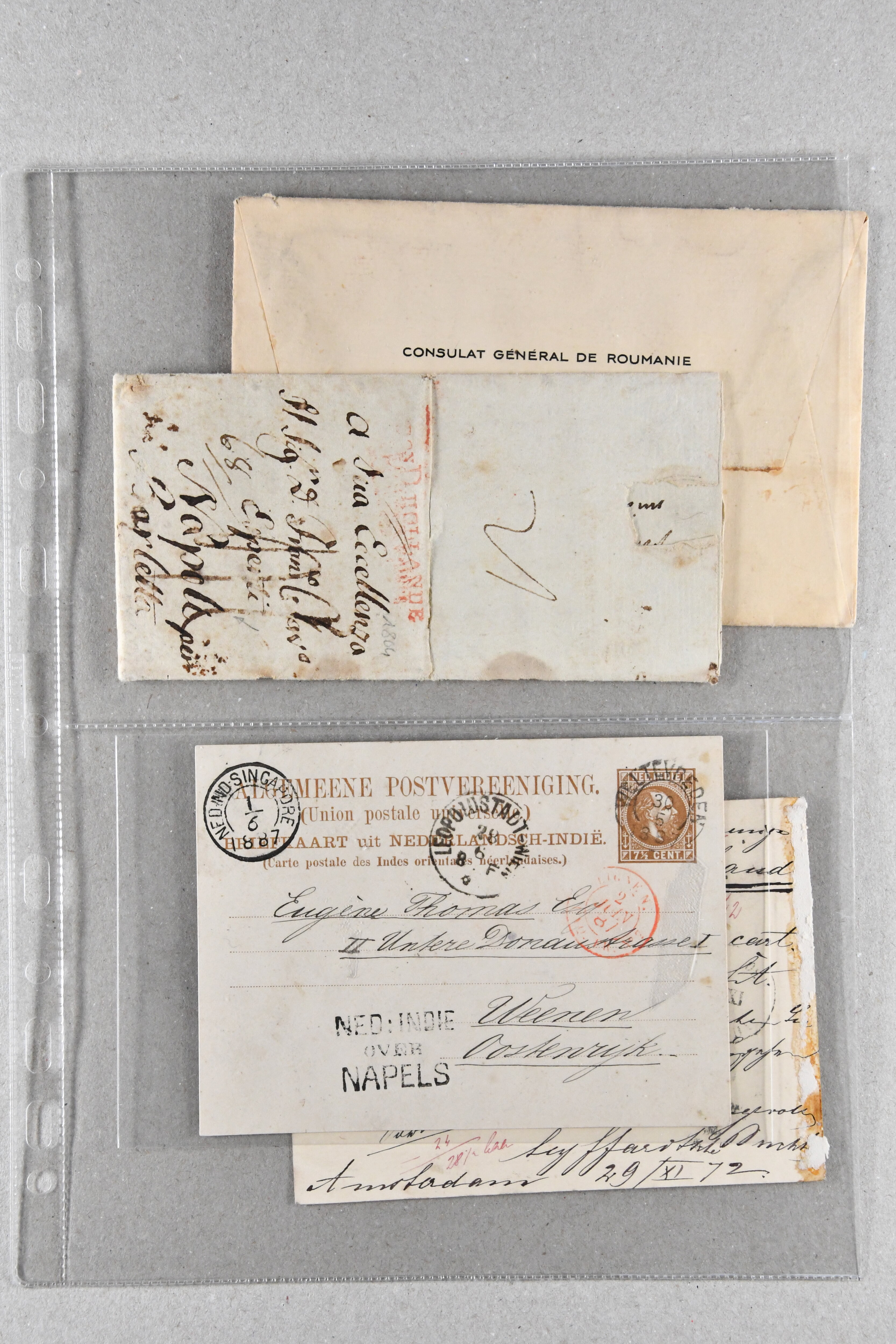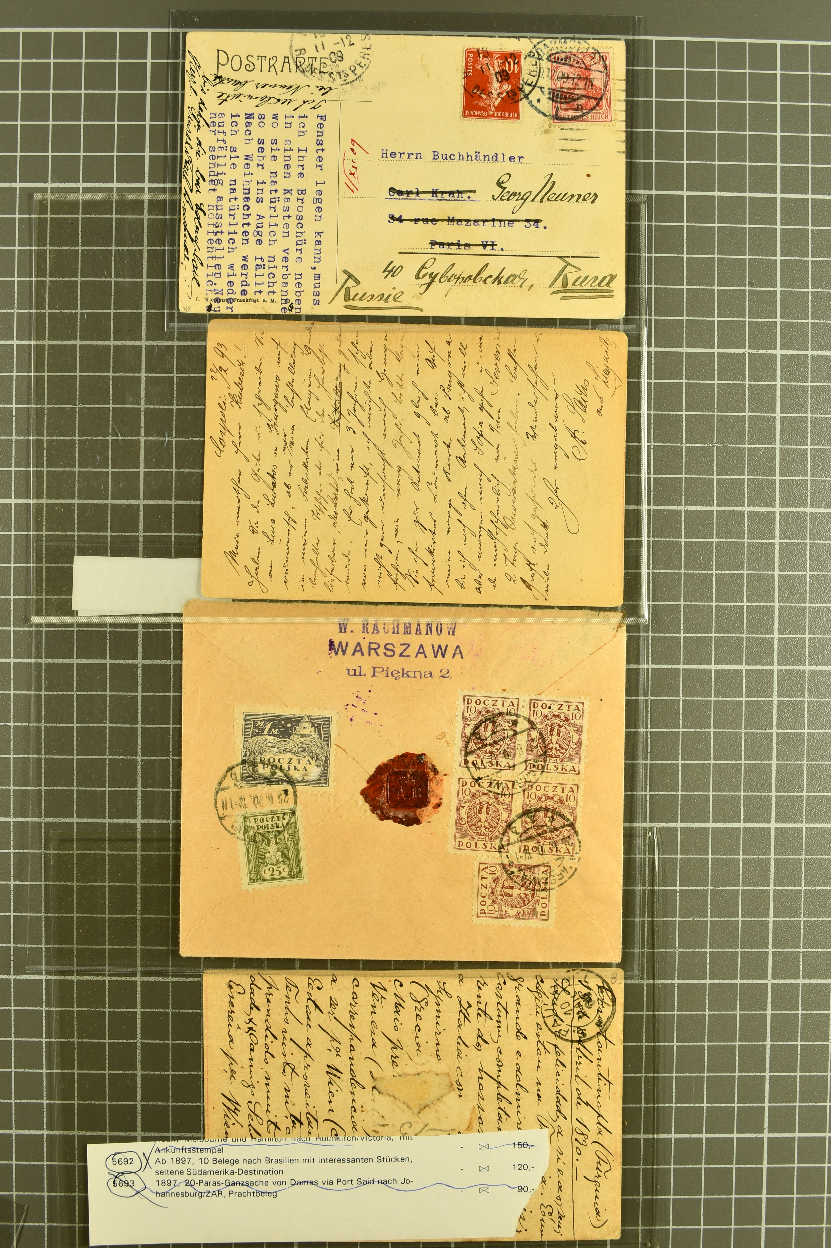 1503 cover 1775/1921: Interesting and desirable diverse lot of old covers and cards in somewhat mixed condition. Including folded letter from Cap d’Haiti with “Colonies par L’Isle de Ré” cancel to Bordeaux; four covers with President Salomon issues – two to Germany, one to Switzerland, one to the USA; folded letter from Antwerp to Alexandrette 1861; German stationery postcard 'Nur für Marineschiffspost' 1897 from Smyrna to Wilhelmshaven (Cretan blockade); Austrian Levant, three covers 1872/79, one to Sarajevo; Austrian Levant issue for Crete used in Vienna; registered cover from New Caledonia 1903 with attractive franking to Lucerne; small archive of French Morocco picture postcards from military senders to Switzerland; cover with Temesvár issue and Romanian stamps to Switzerland 1921; Hungary, two covers from Orsova to Vienna 1876 and to Widdin (Bulgaria) 1887; Russia, 3 k. stationery postcard with uprated 1 k. stamp (1866 issue) with local post cancel “No 225” to Poland; three covers from the Netherlands including a three-colour franking to Trieste 1892, and a return cover 1890 routed via Como, Milan, Zürich back to Amsterdam; Mozambique, 10 r. stationery postcard uprated with 50 r. to Antwerp, Belgium; picture postcard from Tiflis Georgia with inflation franking; money bill with franking of 2.1 million roubles for a transfer of 35 million from Шемаха (Schemacha, Azerbaijan); plus two older picture postcards from Russia