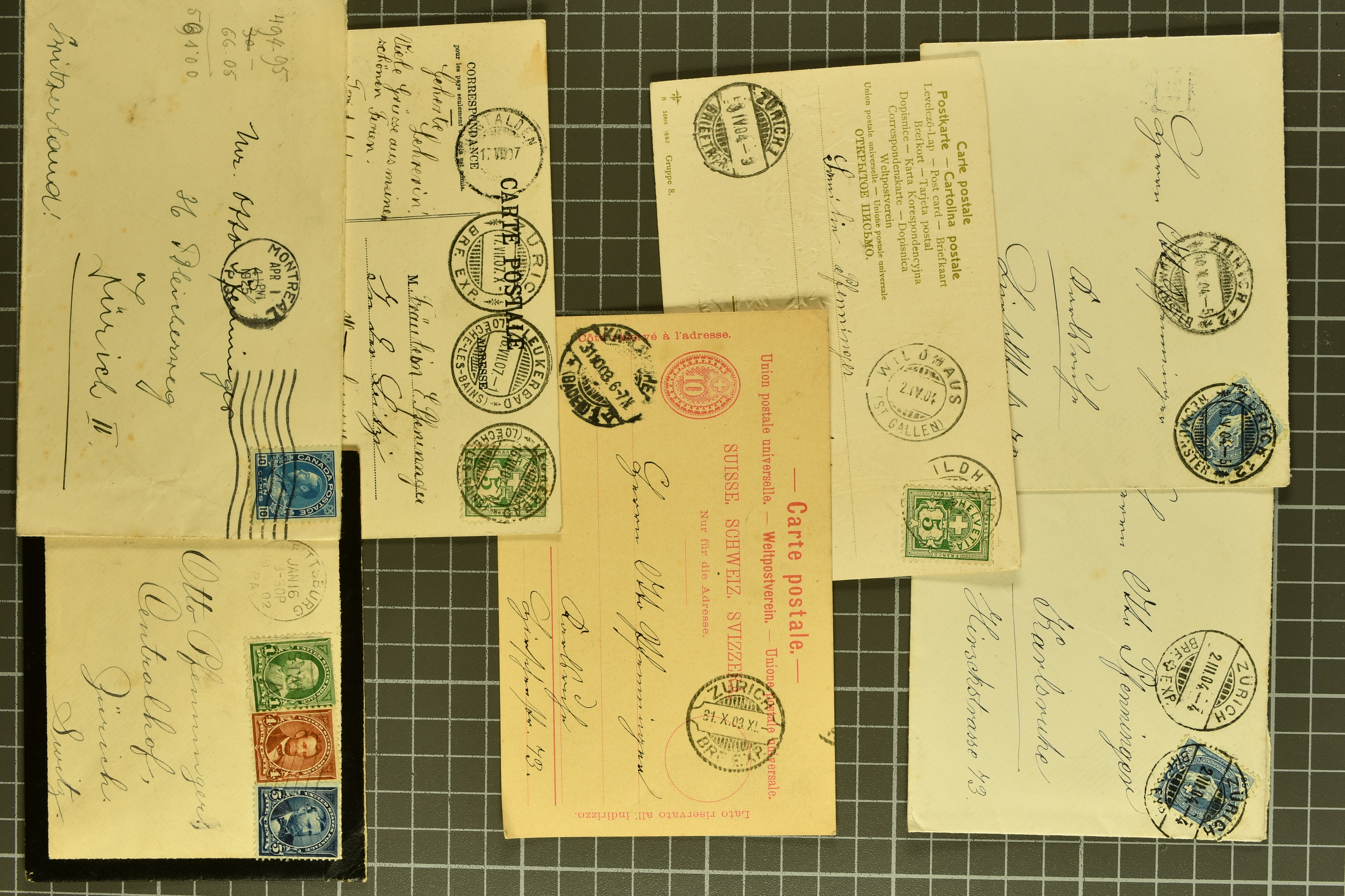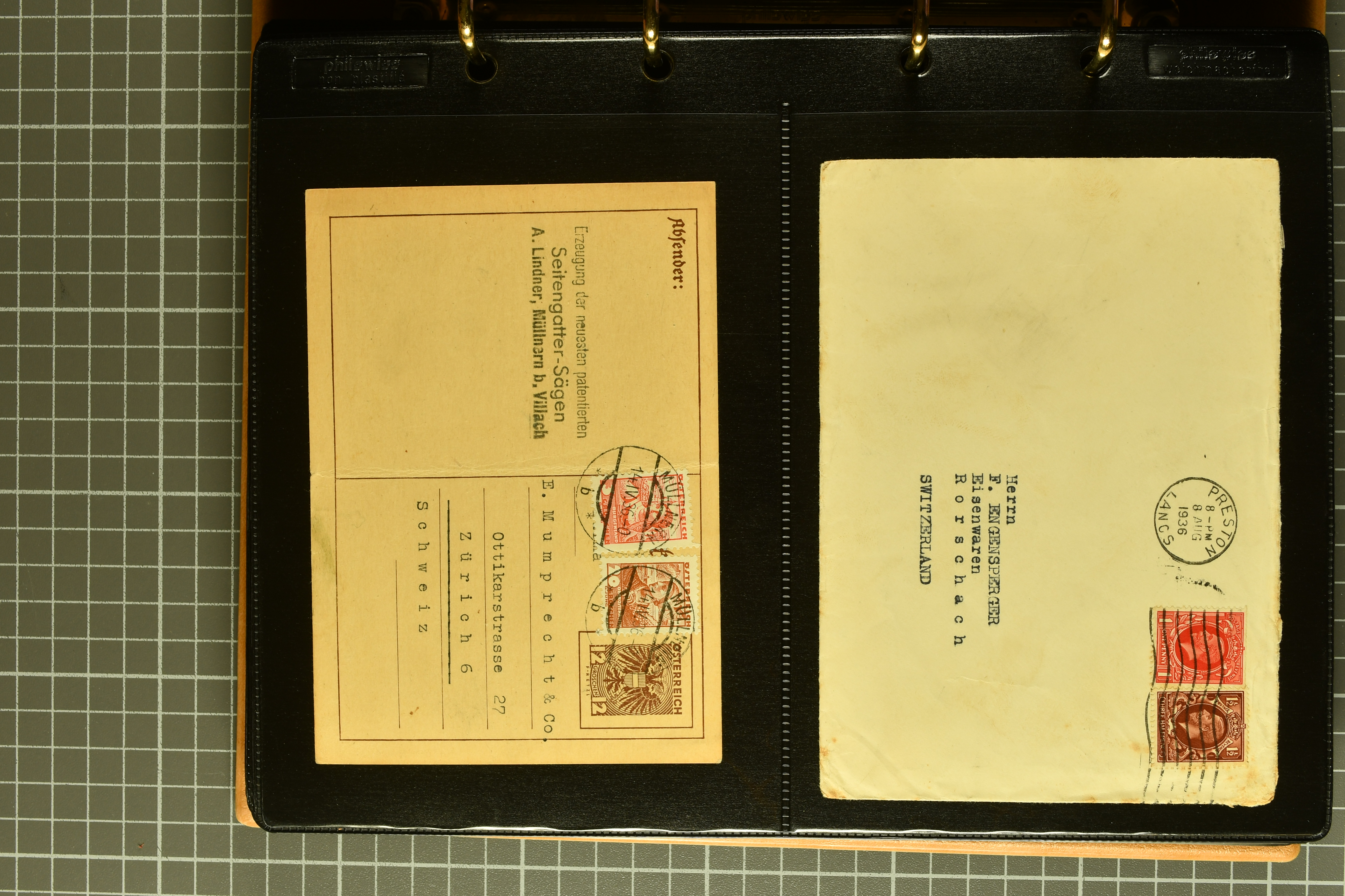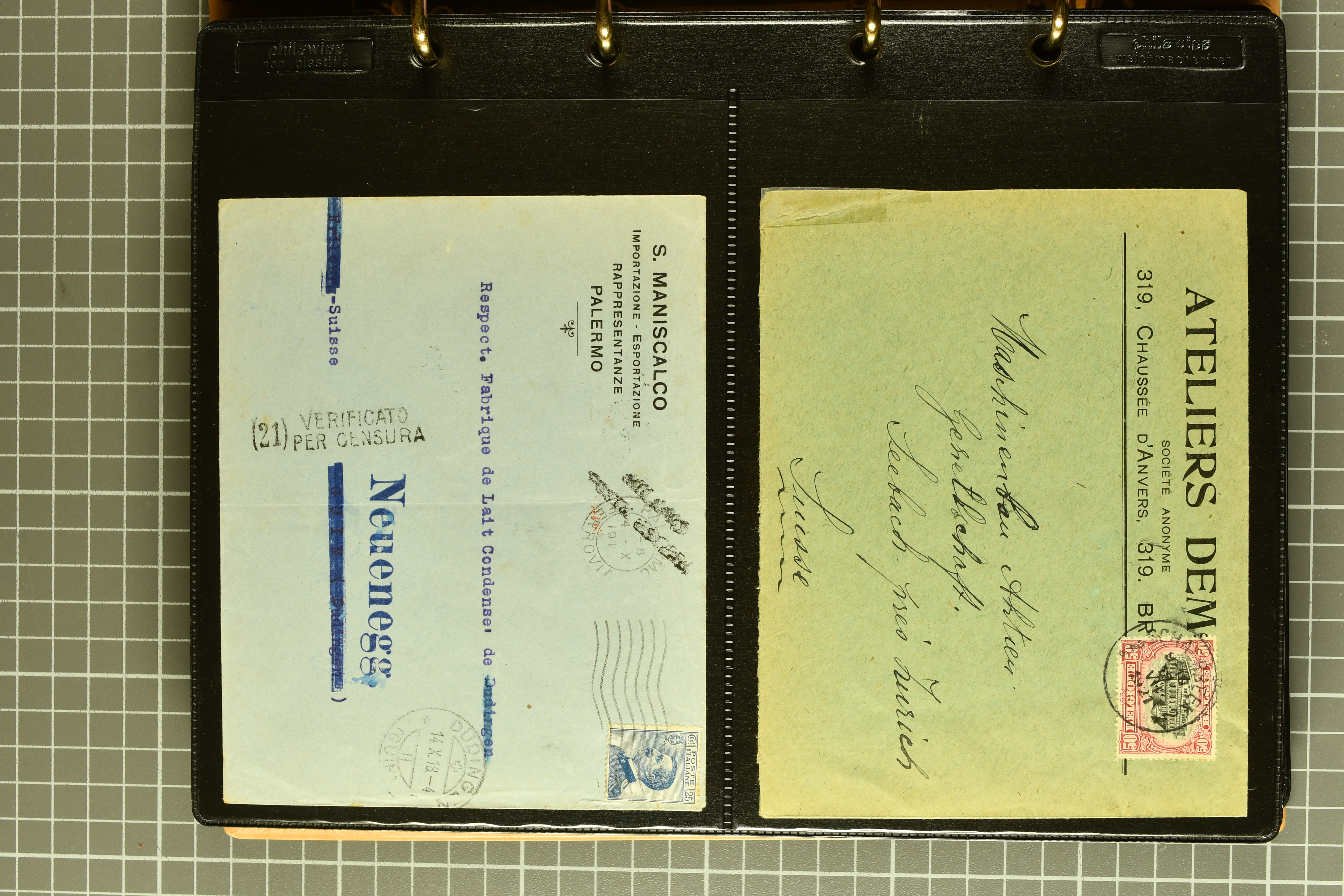 1493 cover image1870/1980ca.: Six cover albums, largely filled with non-philatelic correspondence, predominantly addressed to Swiss recipients (some items also to Germany and Austria). Wide range of origins including Belgium, Bulgaria, Germany, Egypt and others. One album contains attractively franked covers from France, Tunisia and Ethiopia. Some propaganda material from the Third Reich also noted (Image 1) (Image 2) (Image 3) (Image 4) (Image 5) (Image 6) (Image 7) (Image 8) (Image 9) (Image 10) (Image 11) (Image 12) (Image 13) (Image 14) (Image 15) (Image 16) (Image 17) (Image 18) (Image 19) (Image 20) (Image 21) (Image 22) (Image 23) (Image 24) (Image 25) (Image 26) (Image 27) (Image 28) (Image 29) (Image 30) (Image 31) (Image 32) (Image 33) (Image 34) (Image 35) (Image 36) (Image 37) (Image 38) (Image 39) (Image 40) (Image 41) (Image 42) (Image 43) (Image 44) (Image 45) (Image 46) (Image 47) (Image 48) (Image 49) (Image 50)