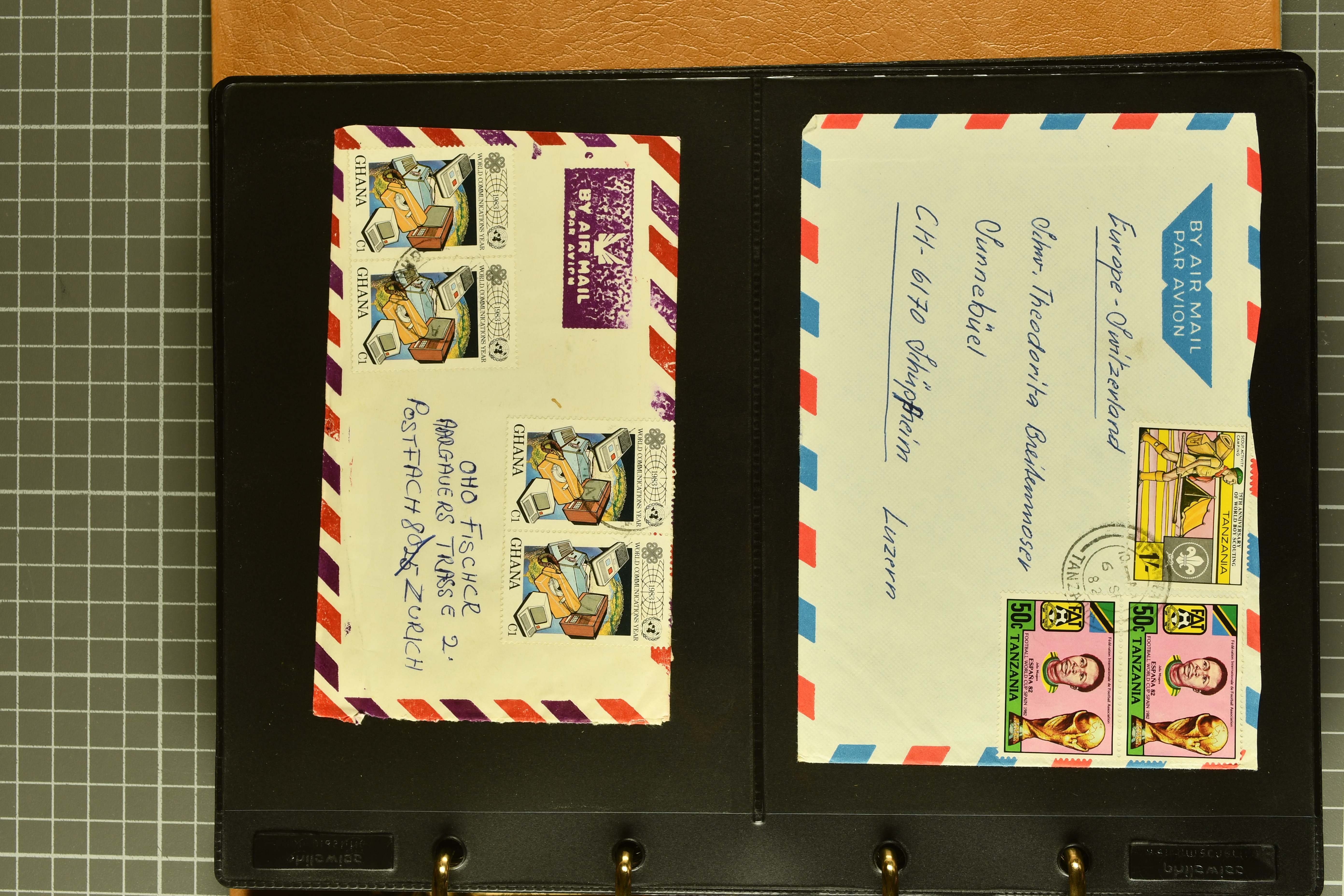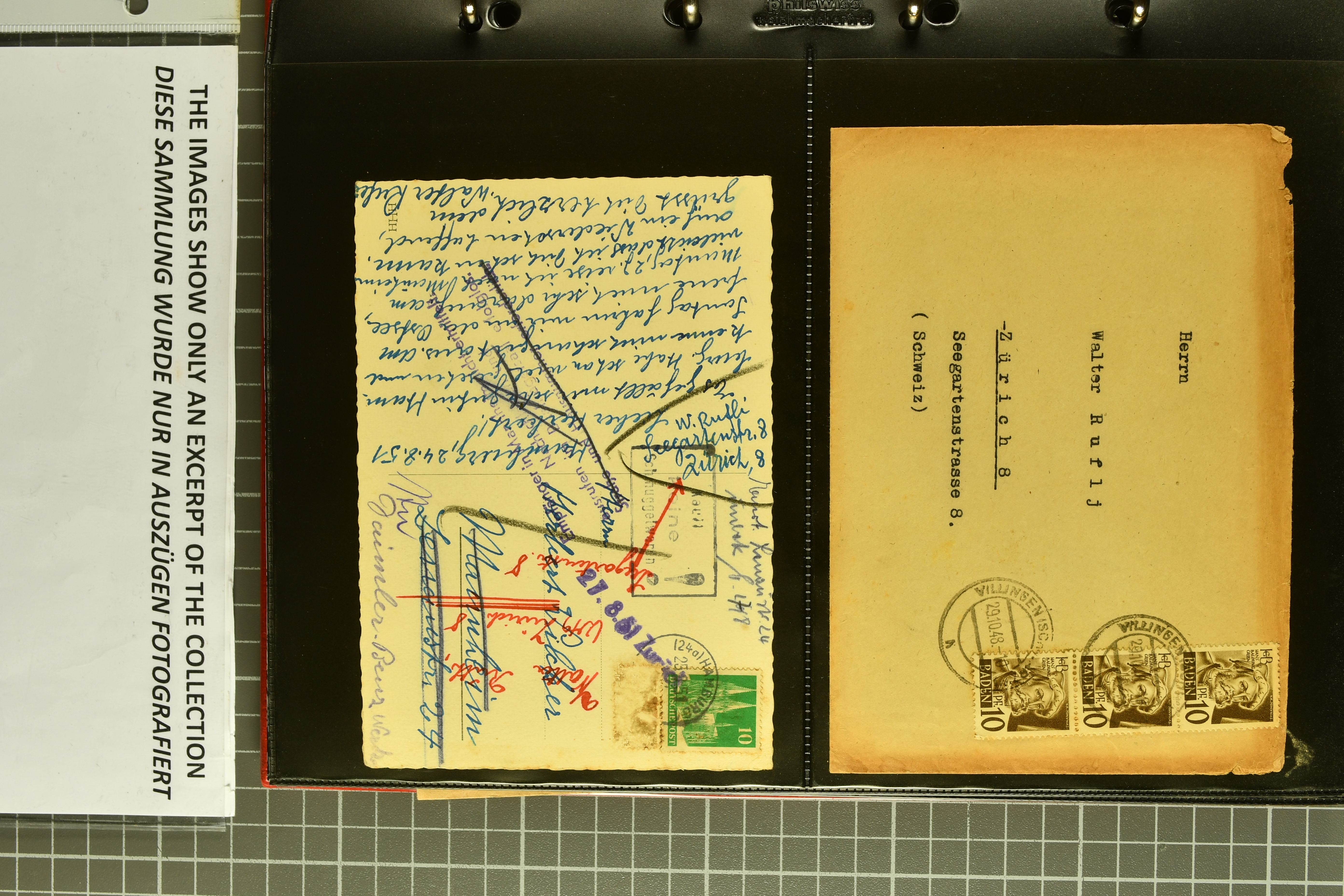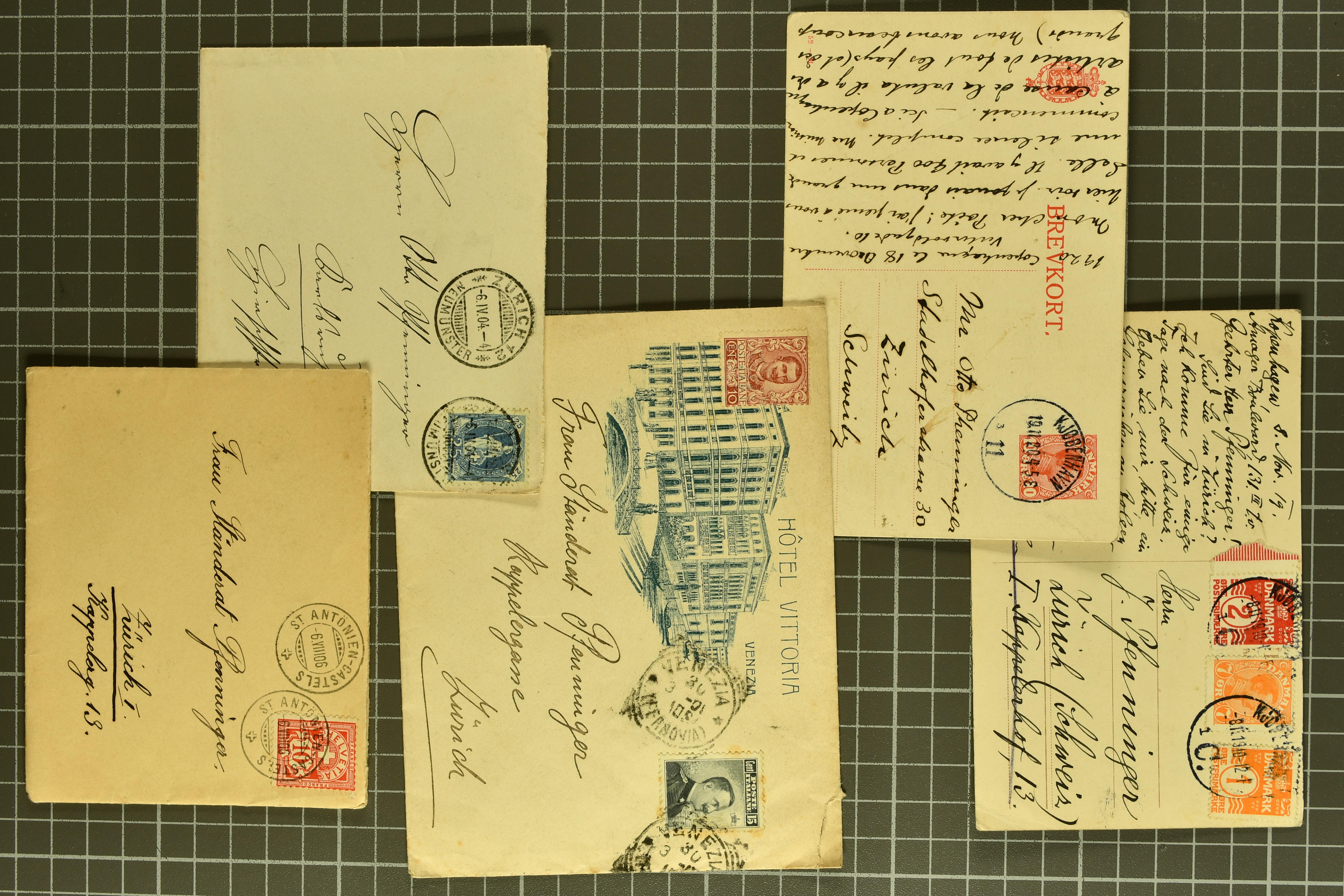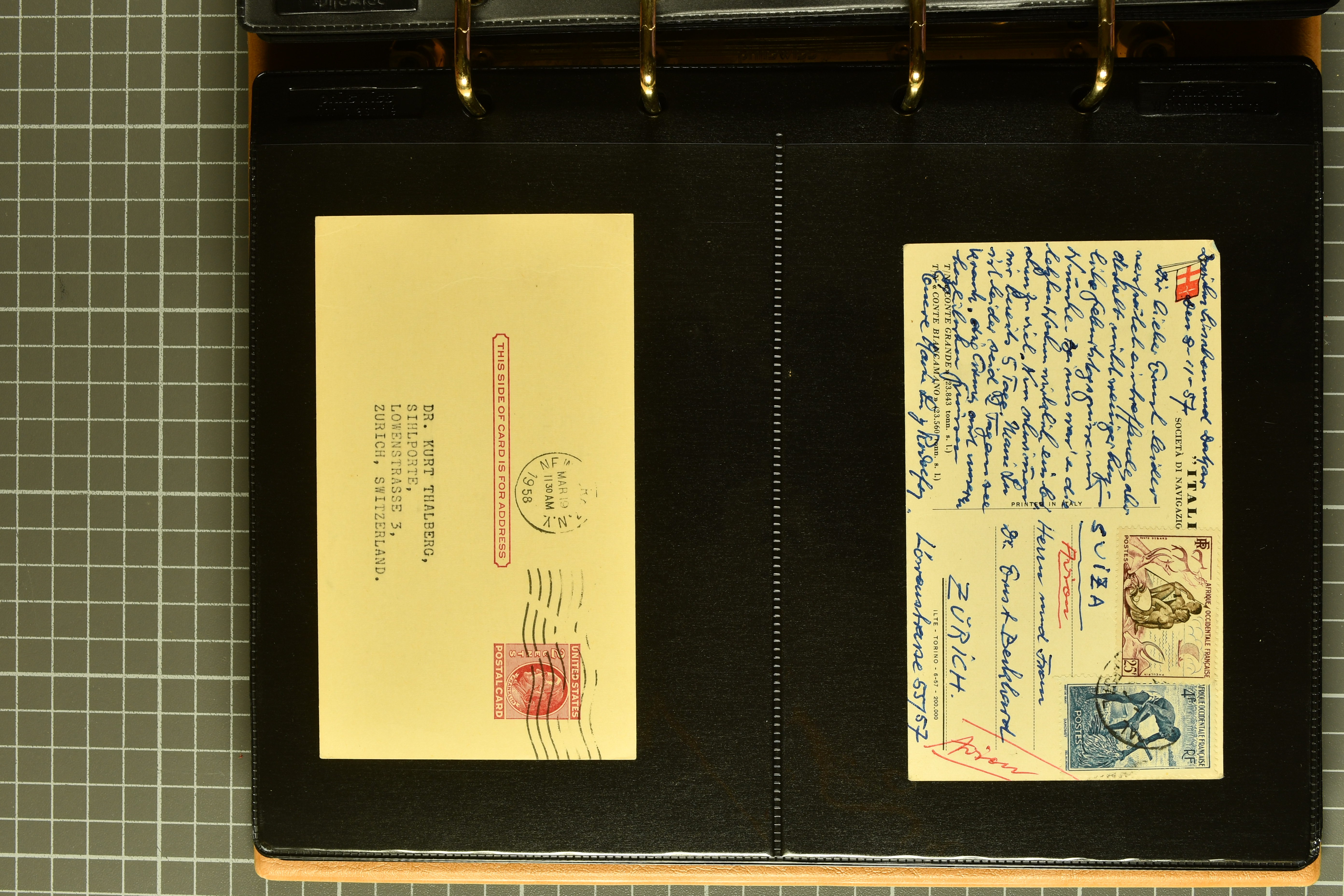 1493 cover image1870/1980ca.: Six cover albums, largely filled with non-philatelic correspondence, predominantly addressed to Swiss recipients (some items also to Germany and Austria). Wide range of origins including Belgium, Bulgaria, Germany, Egypt and others. One album contains attractively franked covers from France, Tunisia and Ethiopia. Some propaganda material from the Third Reich also noted (Image 1) (Image 2) (Image 3) (Image 4) (Image 5) (Image 6) (Image 7) (Image 8) (Image 9) (Image 10) (Image 11) (Image 12) (Image 13) (Image 14) (Image 15) (Image 16) (Image 17) (Image 18) (Image 19) (Image 20) (Image 21) (Image 22) (Image 23) (Image 24) (Image 25) (Image 26) (Image 27) (Image 28) (Image 29) (Image 30) (Image 31) (Image 32) (Image 33) (Image 34) (Image 35) (Image 36) (Image 37) (Image 38) (Image 39) (Image 40) (Image 41) (Image 42) (Image 43) (Image 44) (Image 45) (Image 46) (Image 47) (Image 48) (Image 49) (Image 50)