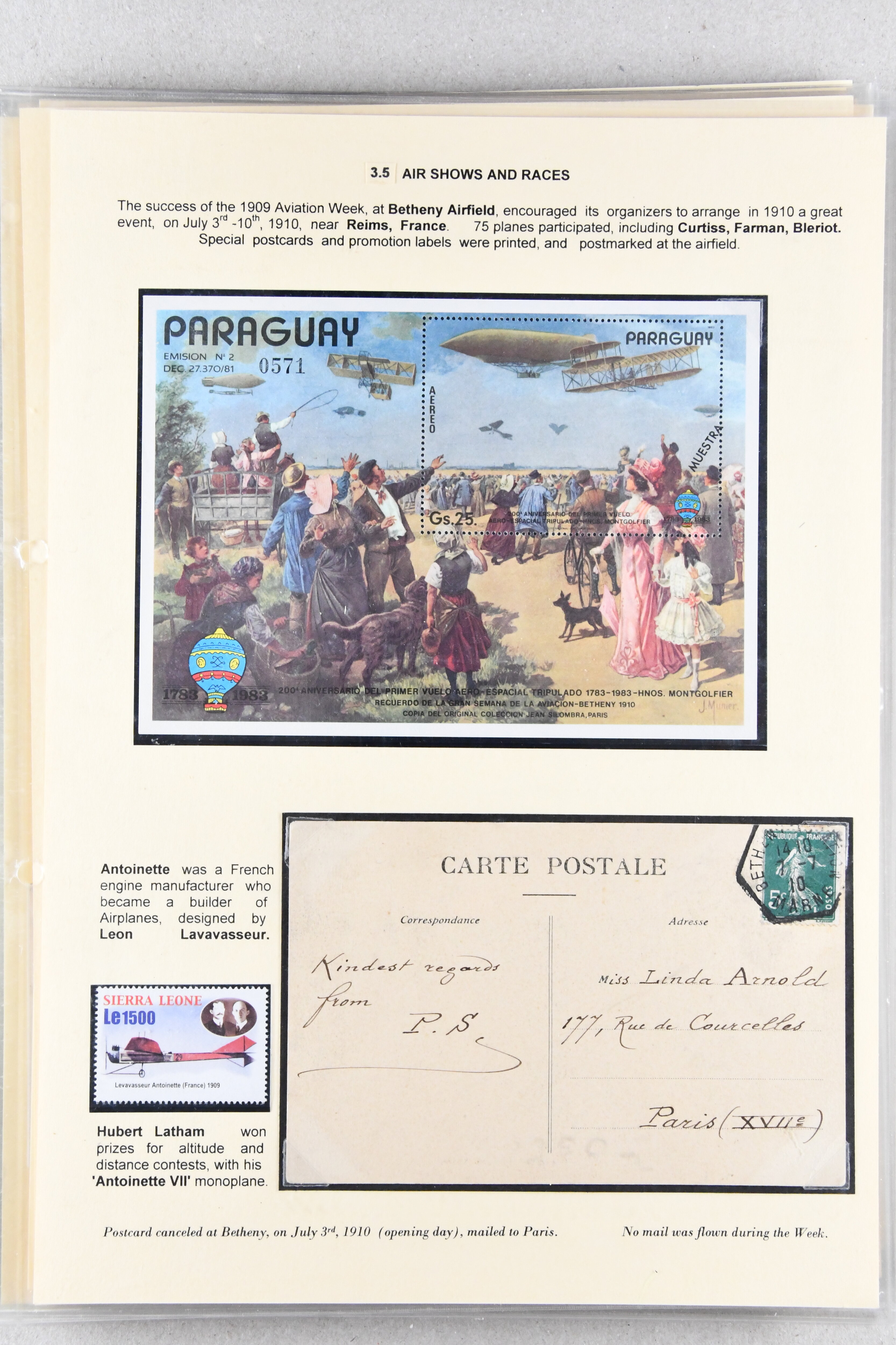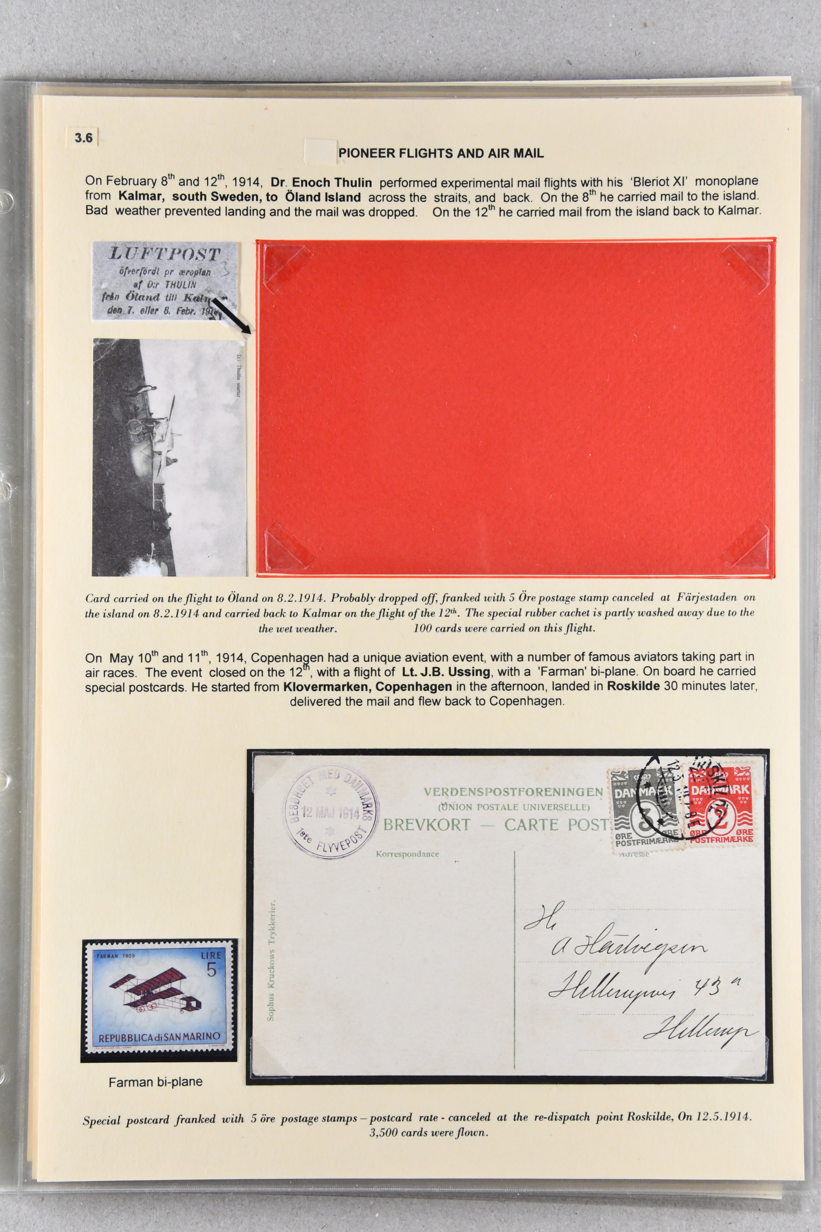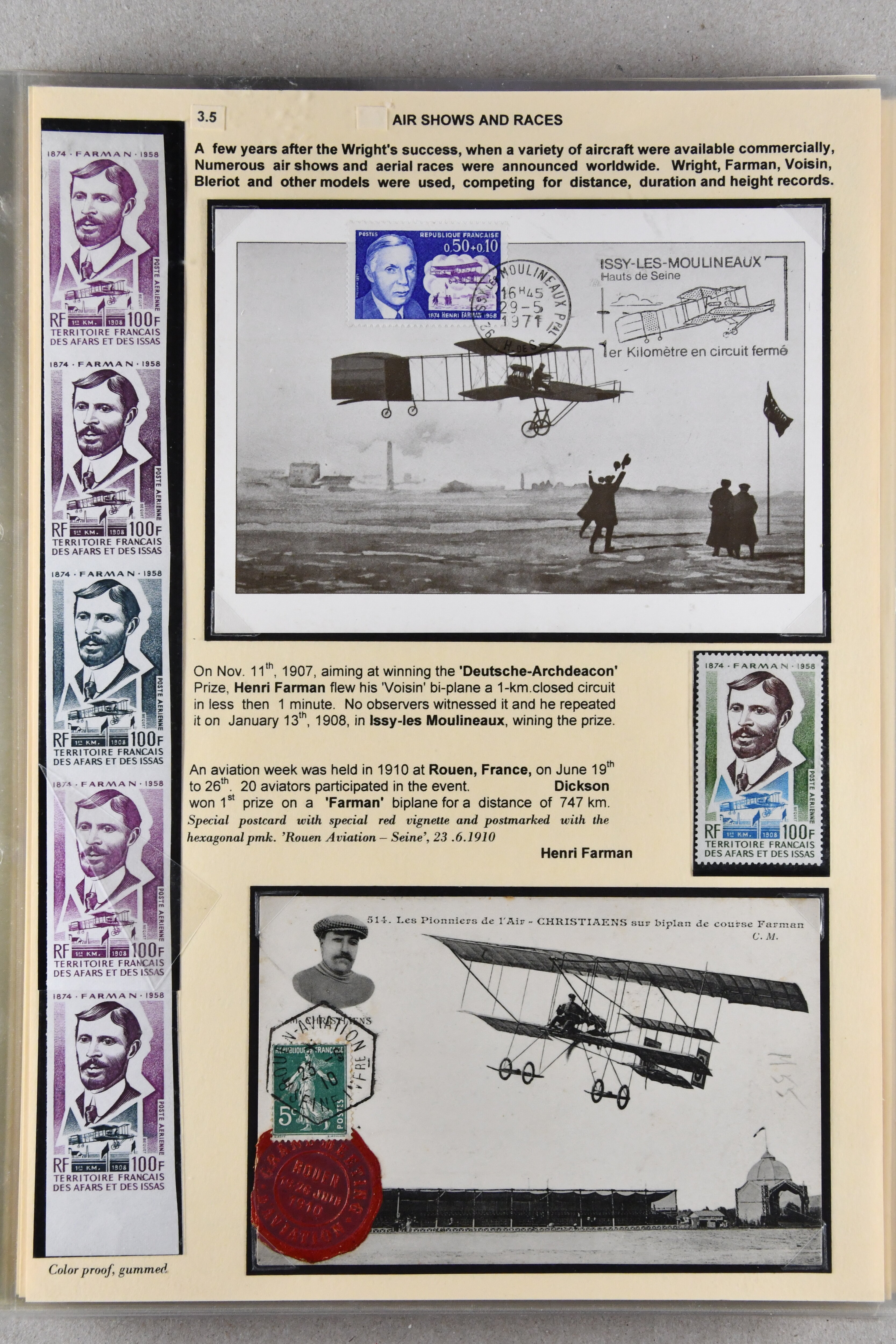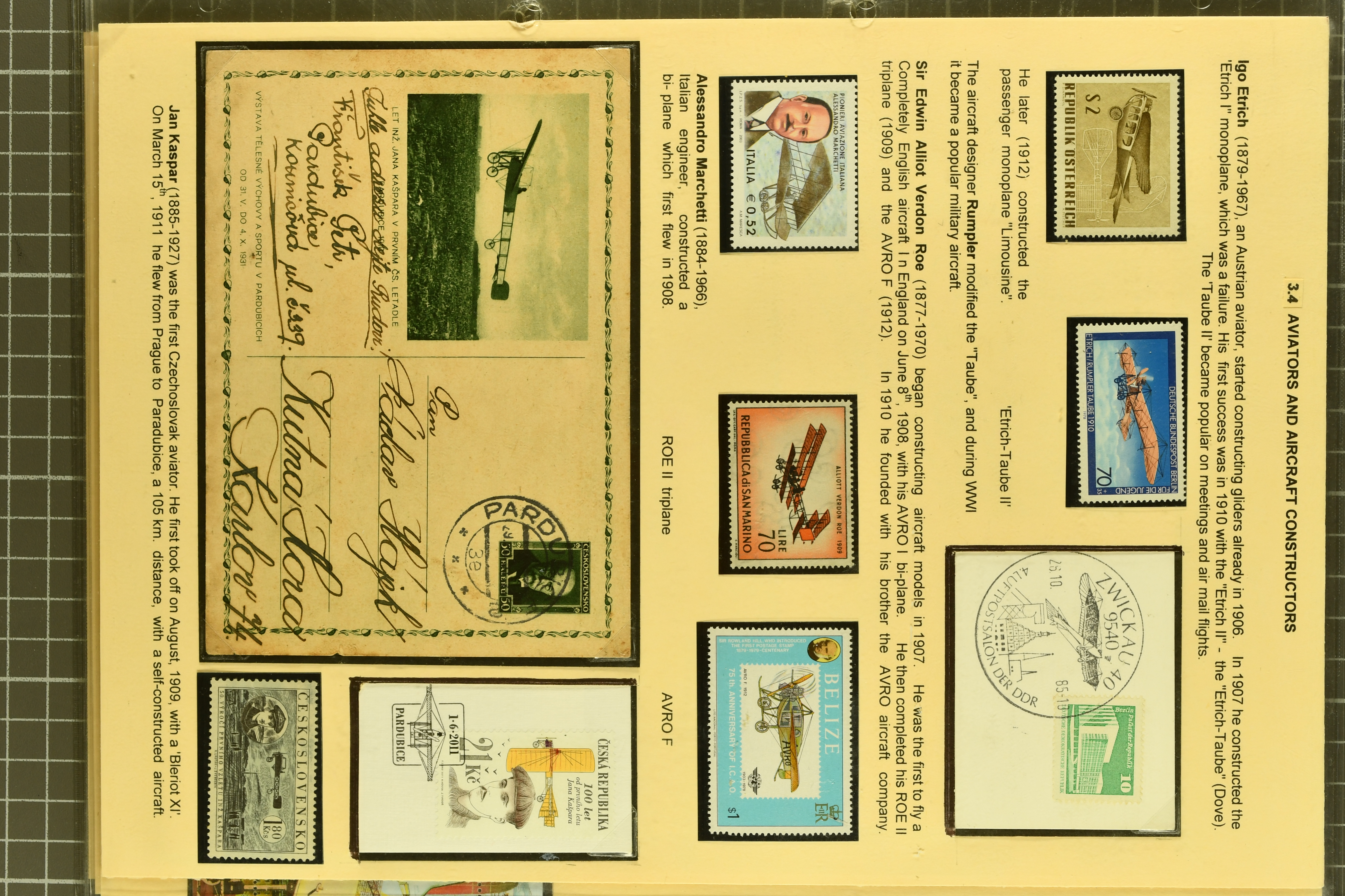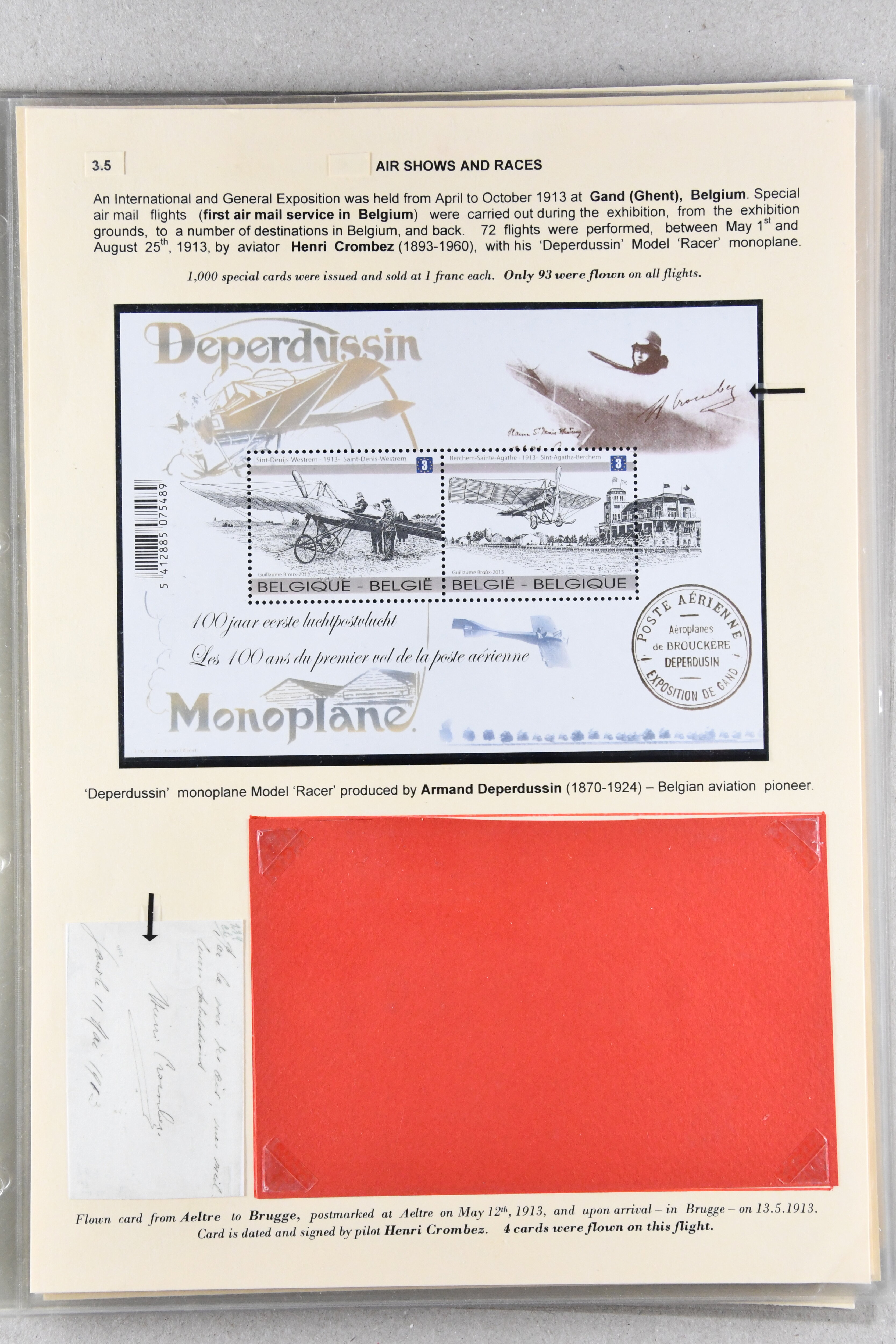 1490 **/*/cover/(*) image1888/2015: Collection of Airshow, Race and Pioneer Flight material, set-out on 25 exhibition pages, comprising over 100 items, including Proofs, an artist's original design drawing signed by engraver Achille Ouvre, special event cards, covers, airmail commemorative stamps, minisheets and a booklet. Noted; 1909 Aviation Week Paris postcard with event postmark, 1910 Henri Farman aviation week post card Rouen, France, also 1910 events in Lyon and Dijon, 1912 experimental flight Nancy to Luneville card with vingnette air mail stamp tied, 1914 The Monaco Air Rally illustrated cards (7), 1914 Air Exhibition Japan card depicting bi-plane take-off with event cachet, 1911 Morocco second event cards/cachet (2), 1912 Stockholm to Lidingö flight material post card damaged by sea water, sunken die proofs (4) and original artwork for Latvia airmail stamps depicting monoplane and assortment of issued airmail stamps. Useful assembly. Ex. The ‘Izhak Barak’ Collection: The Development of Aviation and Transportation of Mail by Air until 1914 (Image 1) (Image 2) (Image 3) (Image 4) (Image 5) (Image 6) (Image 7) (Image 8) (Image 9) (Image 10) (Image 11) (Image 12) (Image 13) (Image 14) (Image 15) (Image 16) (Image 17) (Image 18) (Image 19) (Image 20) (Image 21) (Image 22) (Image 23) (Image 24) (Image 25) (Image 26)