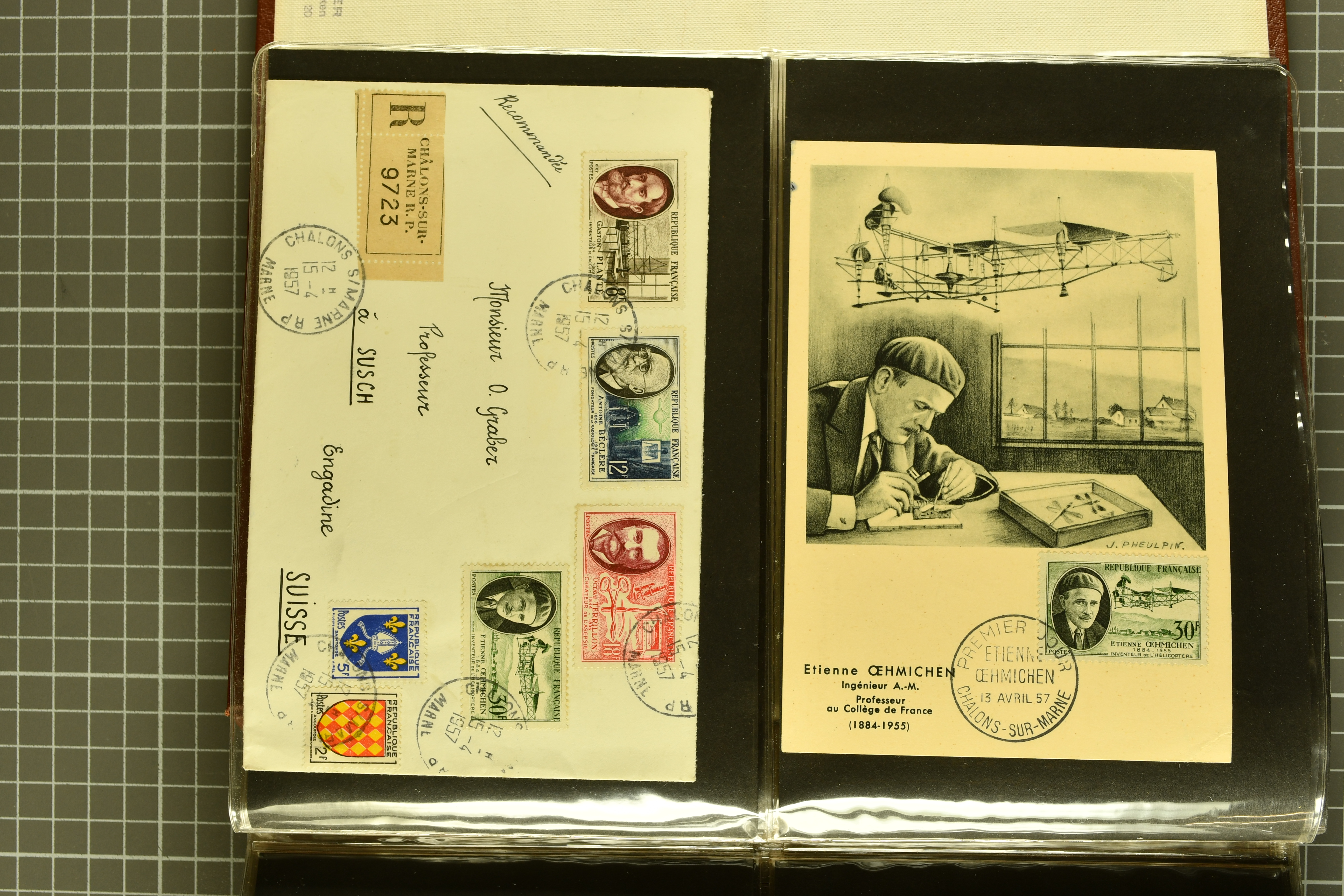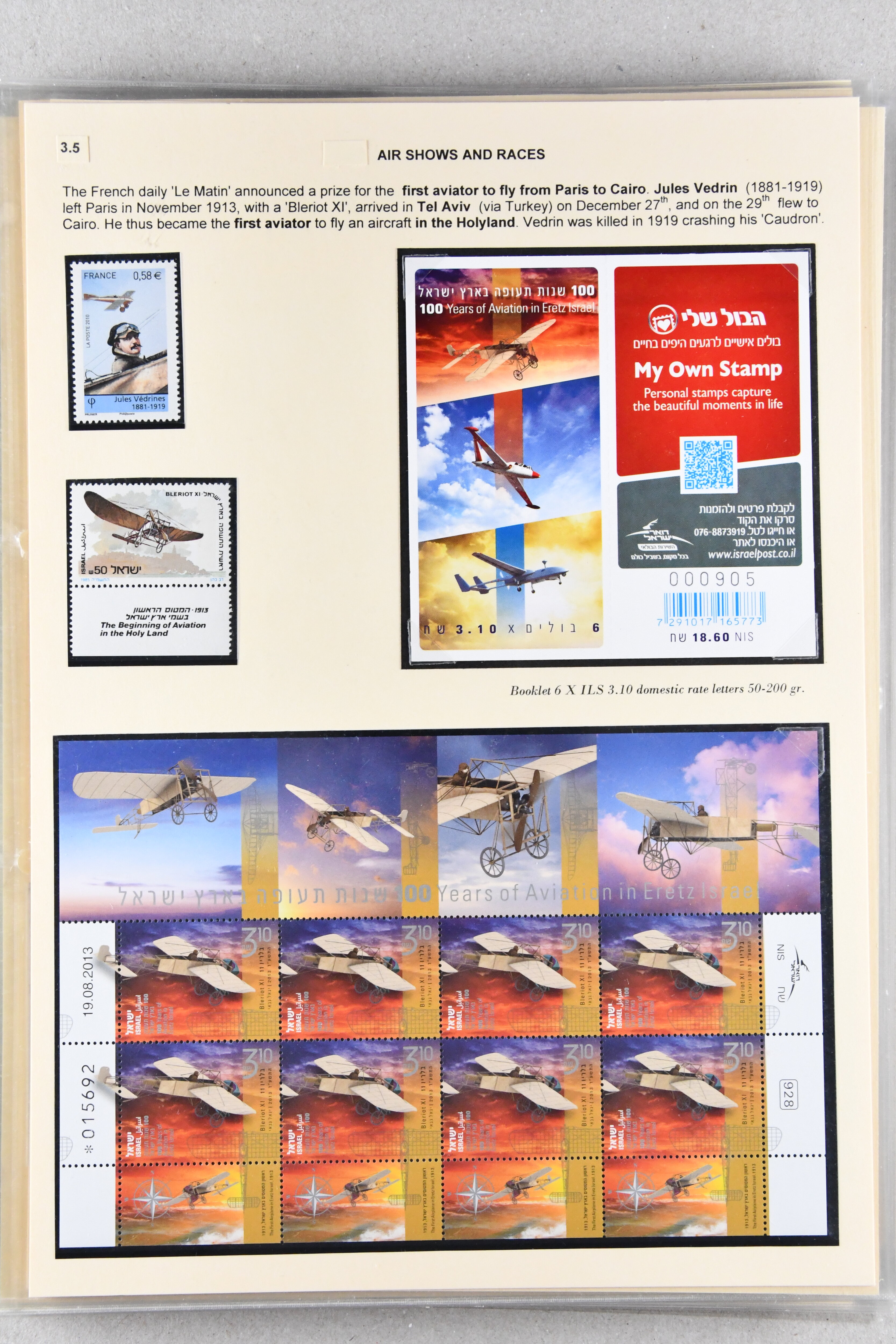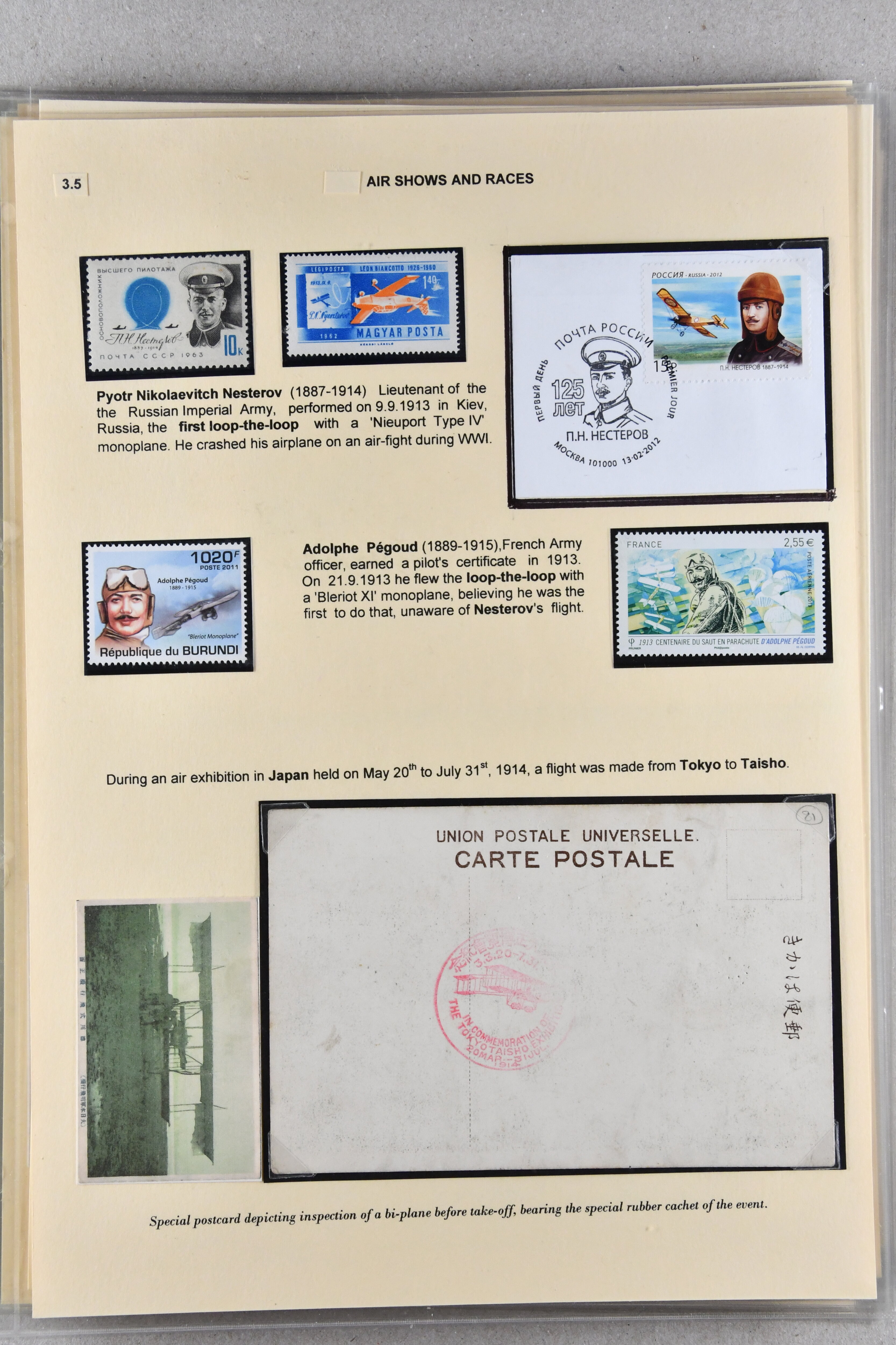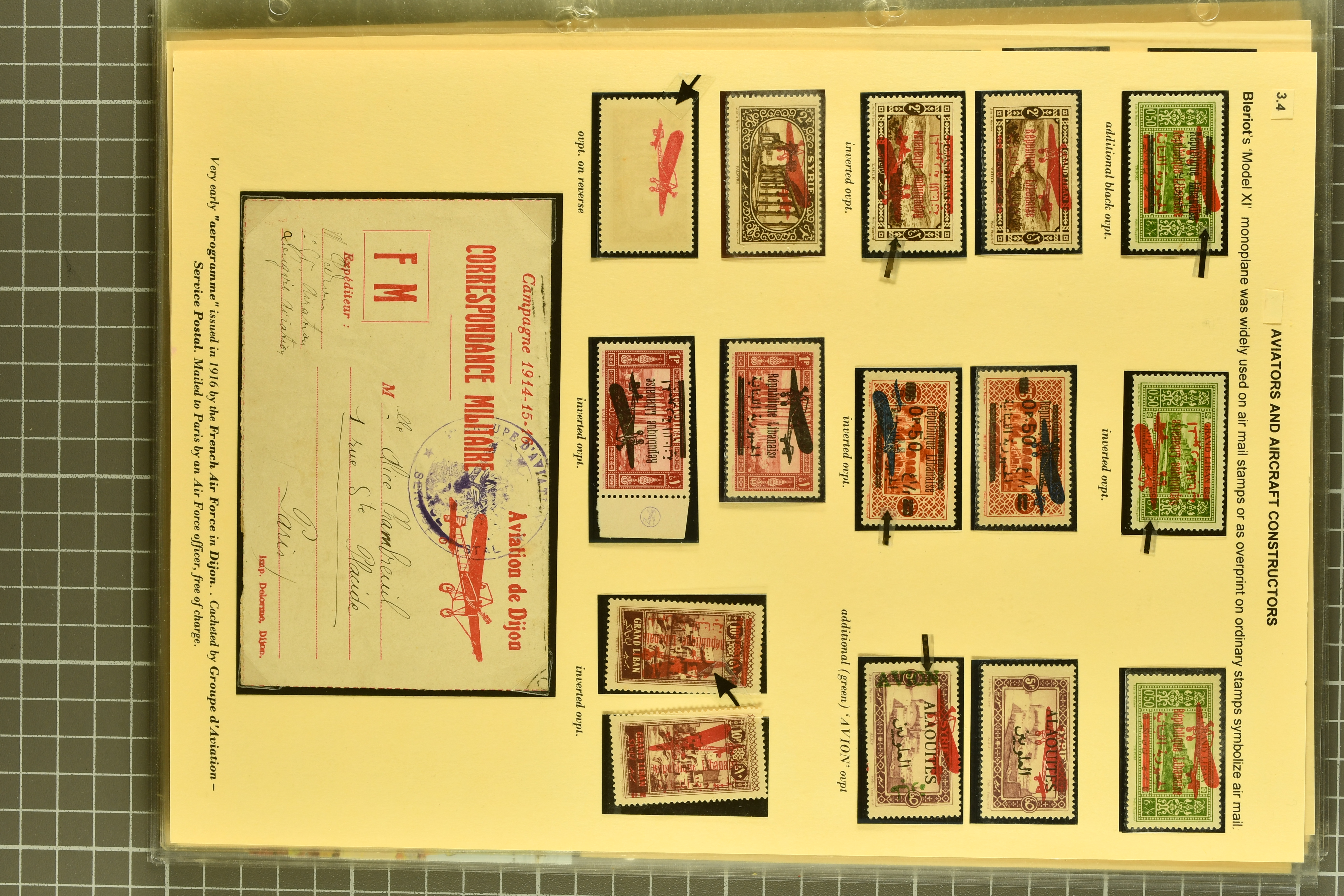1490 **/*/cover/(*) image1888/2015: Collection of Airshow, Race and Pioneer Flight material, set-out on 25 exhibition pages, comprising over 100 items, including Proofs, an artist's original design drawing signed by engraver Achille Ouvre, special event cards, covers, airmail commemorative stamps, minisheets and a booklet. Noted; 1909 Aviation Week Paris postcard with event postmark, 1910 Henri Farman aviation week post card Rouen, France, also 1910 events in Lyon and Dijon, 1912 experimental flight Nancy to Luneville card with vingnette air mail stamp tied, 1914 The Monaco Air Rally illustrated cards (7), 1914 Air Exhibition Japan card depicting bi-plane take-off with event cachet, 1911 Morocco second event cards/cachet (2), 1912 Stockholm to Lidingö flight material post card damaged by sea water, sunken die proofs (4) and original artwork for Latvia airmail stamps depicting monoplane and assortment of issued airmail stamps. Useful assembly. Ex. The ‘Izhak Barak’ Collection: The Development of Aviation and Transportation of Mail by Air until 1914 (Image 1) (Image 2) (Image 3) (Image 4) (Image 5) (Image 6) (Image 7) (Image 8) (Image 9) (Image 10) (Image 11) (Image 12) (Image 13) (Image 14) (Image 15) (Image 16) (Image 17) (Image 18) (Image 19) (Image 20) (Image 21) (Image 22) (Image 23) (Image 24) (Image 25) (Image 26)
