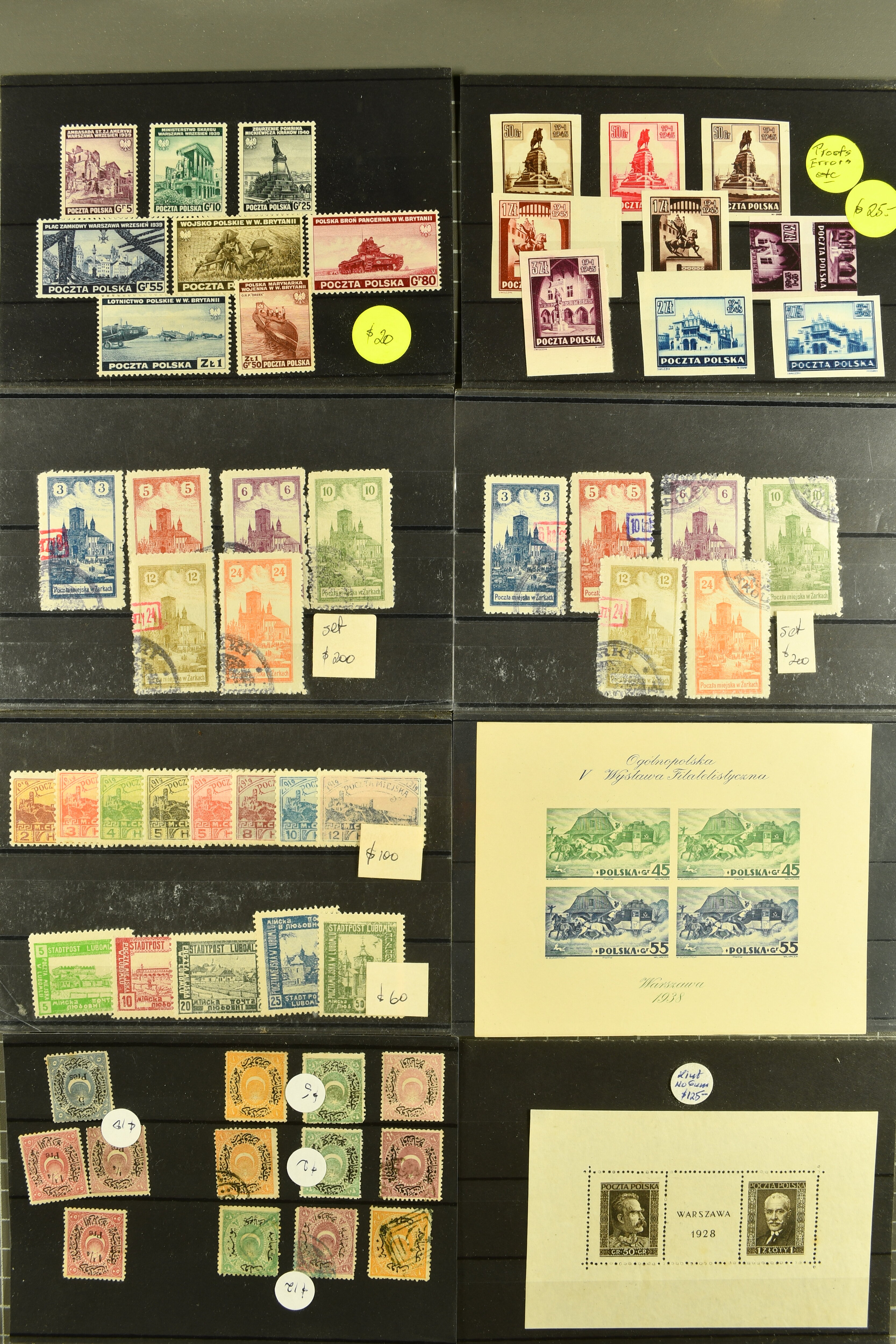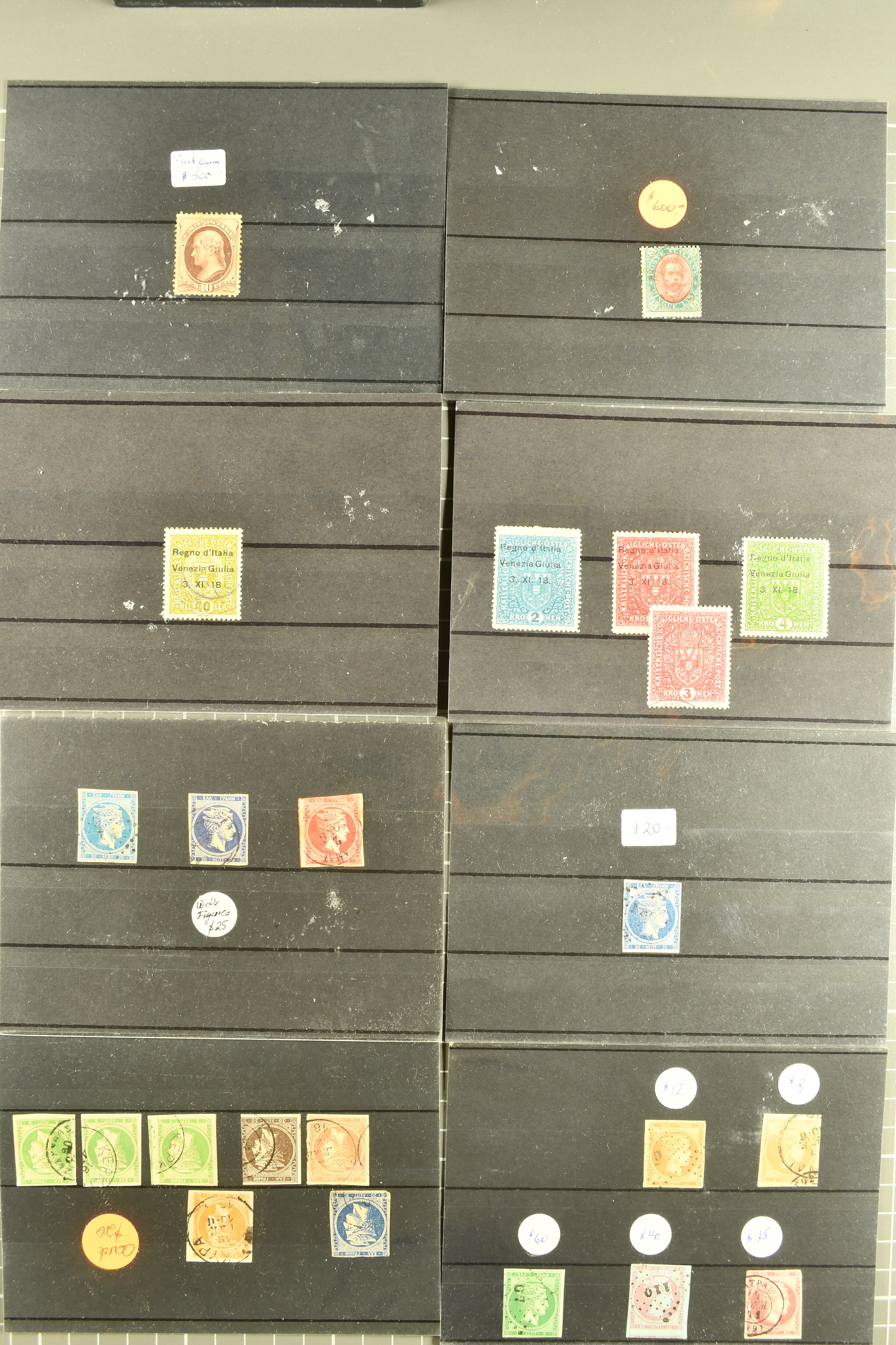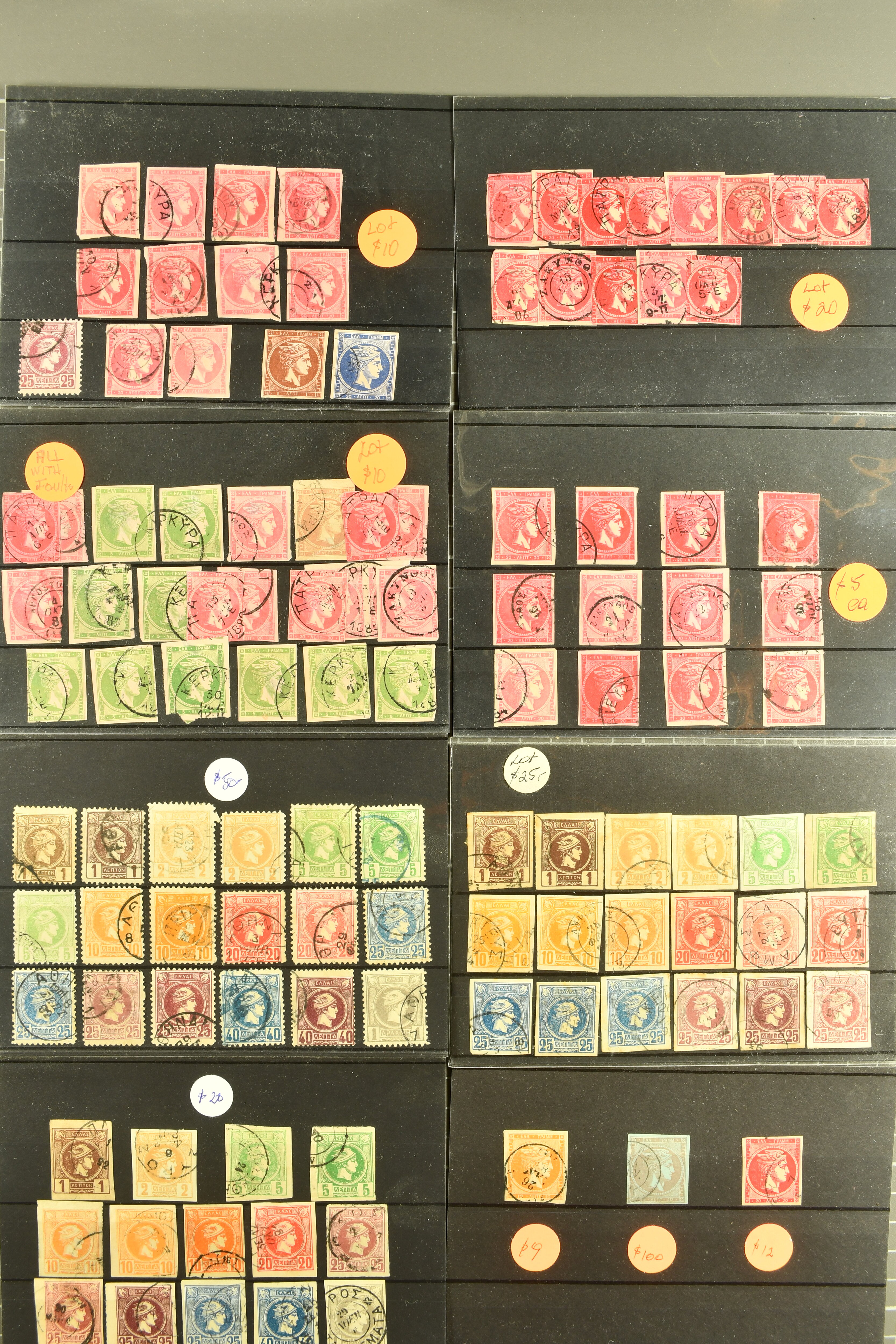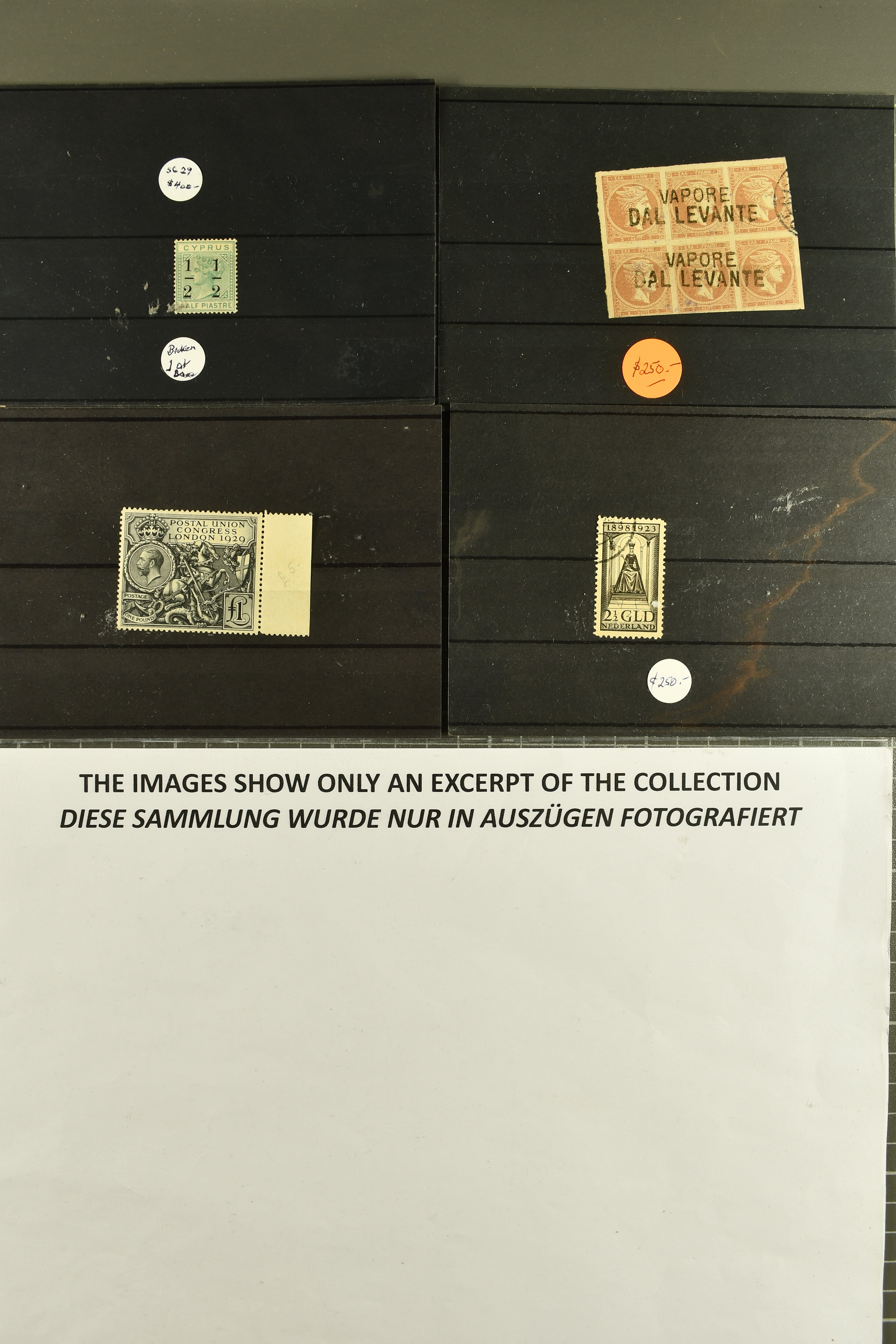 1486 image1860/1960 (ca.): All world dealer's stock on 150 stock-cards with a substantial section of Greece from Large Hermes Heads including 2 L. brown on cream in a remarkable corner marginal block of six cancelled by two clear strikes of "VAPORE / DAL LEVANTE" straightline in black, Cyprus including 1886 ½ pi. on ½ pi. emerald-green, wmk. Crown CA, surcharge Type 10 (Gi. 29), unused with large part og., Great Britain with 1929 Ninth UPU-Congress £ 1 black (Gi. 116) unused with large part og., Italy 1889 Umberto I 5 L. green/red (Mi. 54) used, good Poland including Local Issues Zarki 1918 3 H. bluish-grey to 5 H. olive in used blocks of four or USA 1882 Jefferson 10 c. brown (Scott 139) unused with part og. Usually in good condition (Image 1) (Image 2) (Image 3) (Image 4) (Image 5) (Image 6) (Image 7)