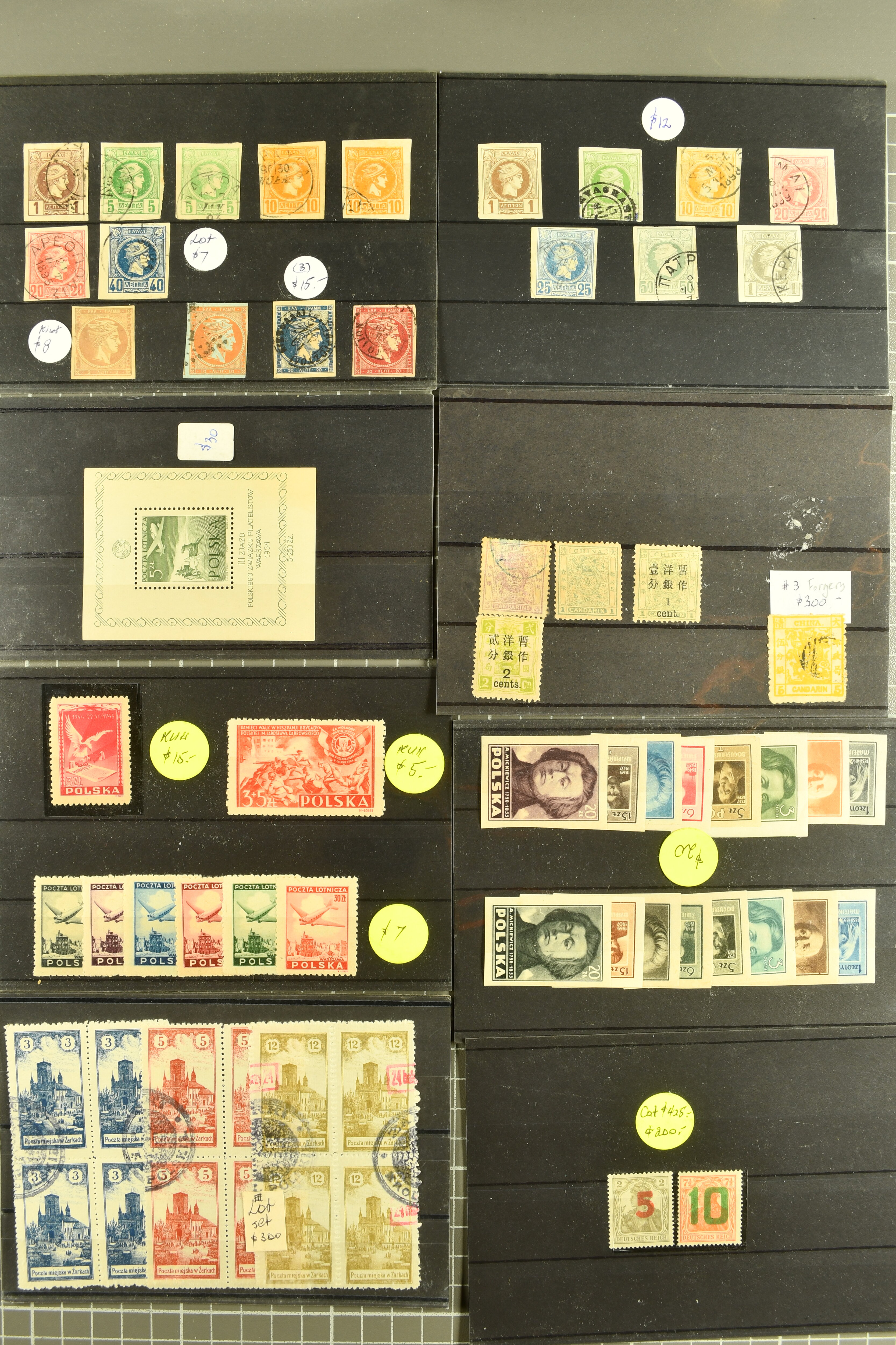 1488 1850/1980ca.: An extensive accumulation of stock cards holding stamps from many different countries worldwide, notably Asia, Central and South America, as well as French and British Colonies such as the Ionian Islands and the Cape of Good Hope. Included are early issues of China together with the d Goldfish set. Further material from Brazil, Mexico, Thailand, Poland and others. Condition somewhat mixed, as usual for such a lot, organized in four boxes