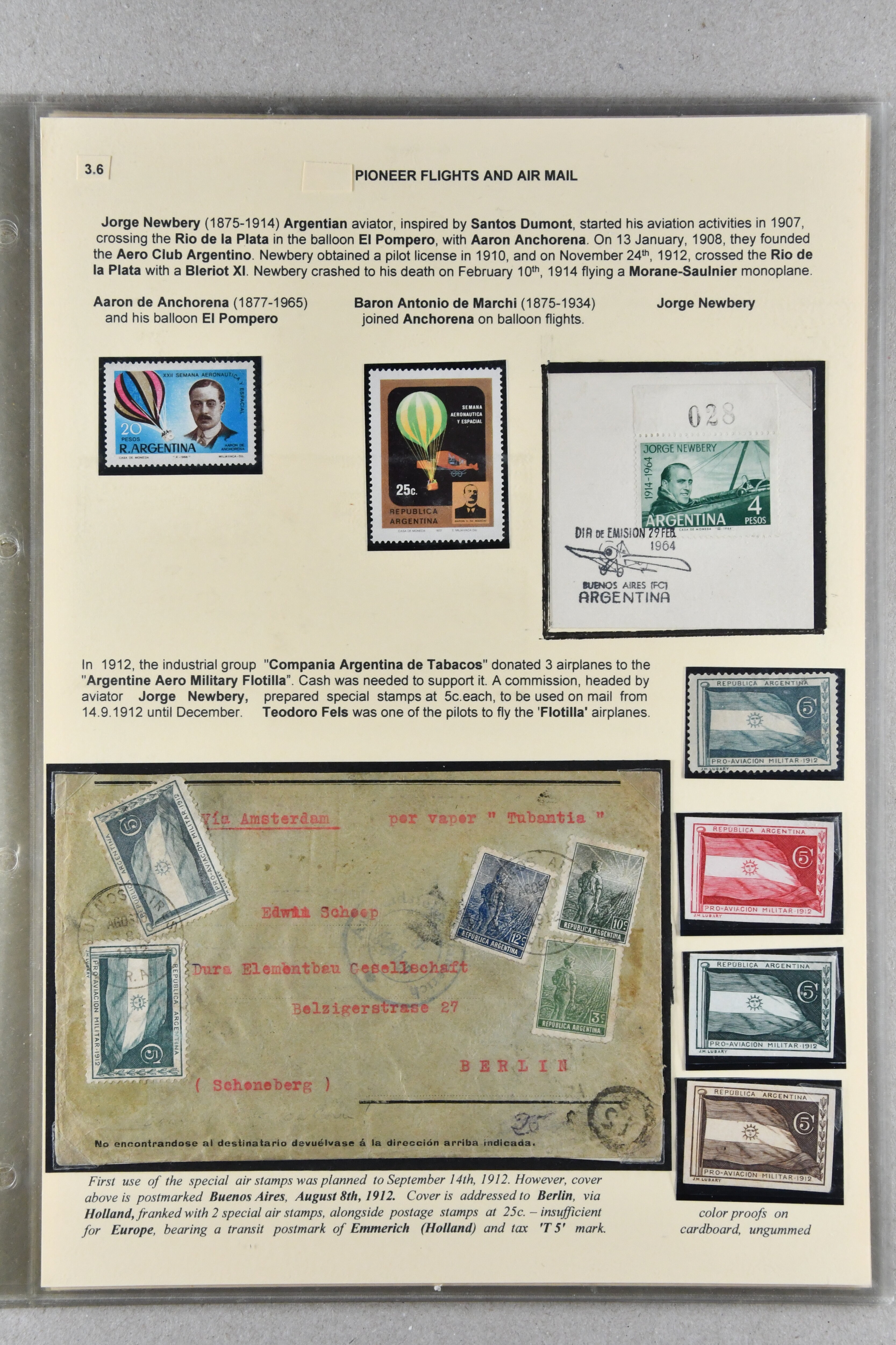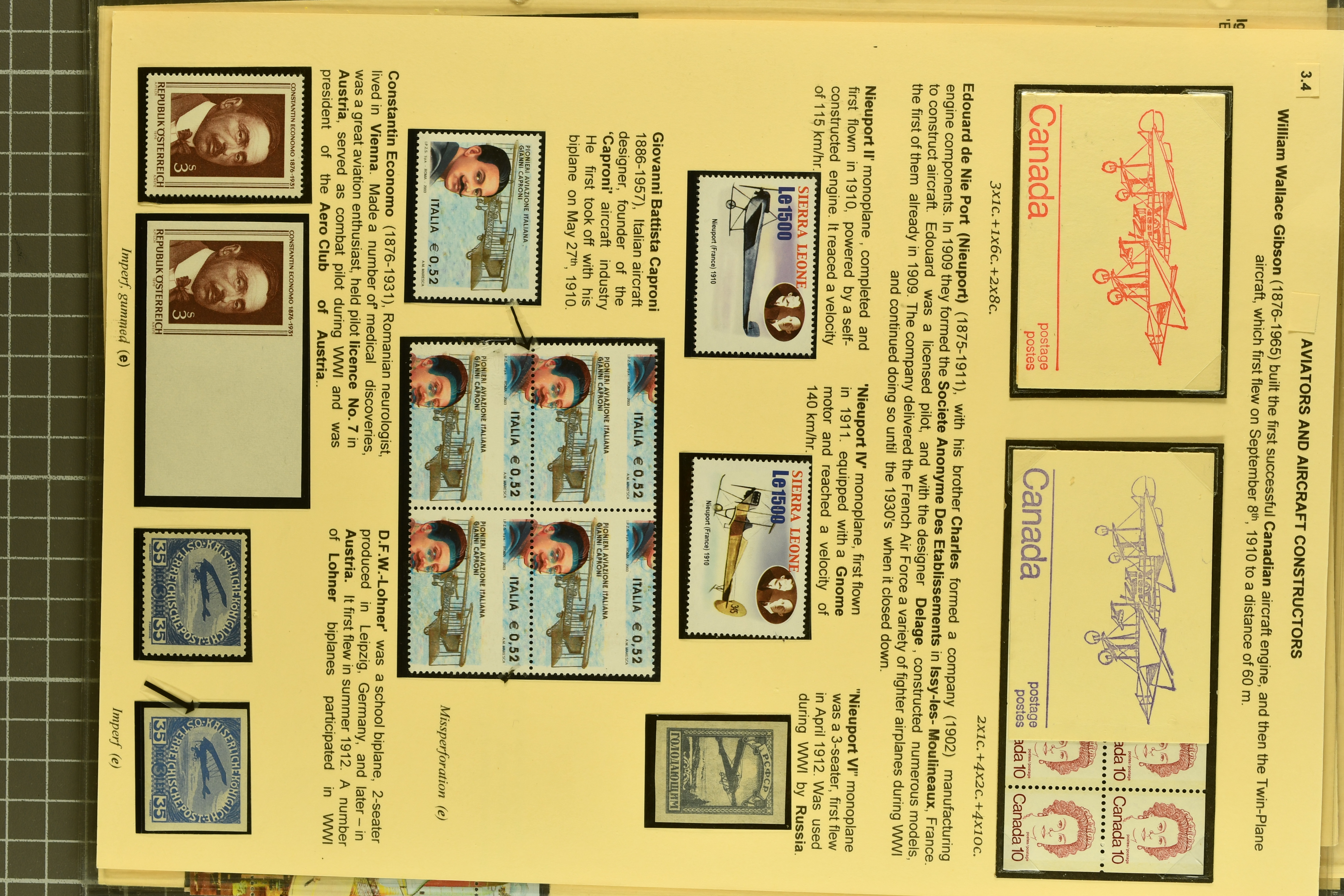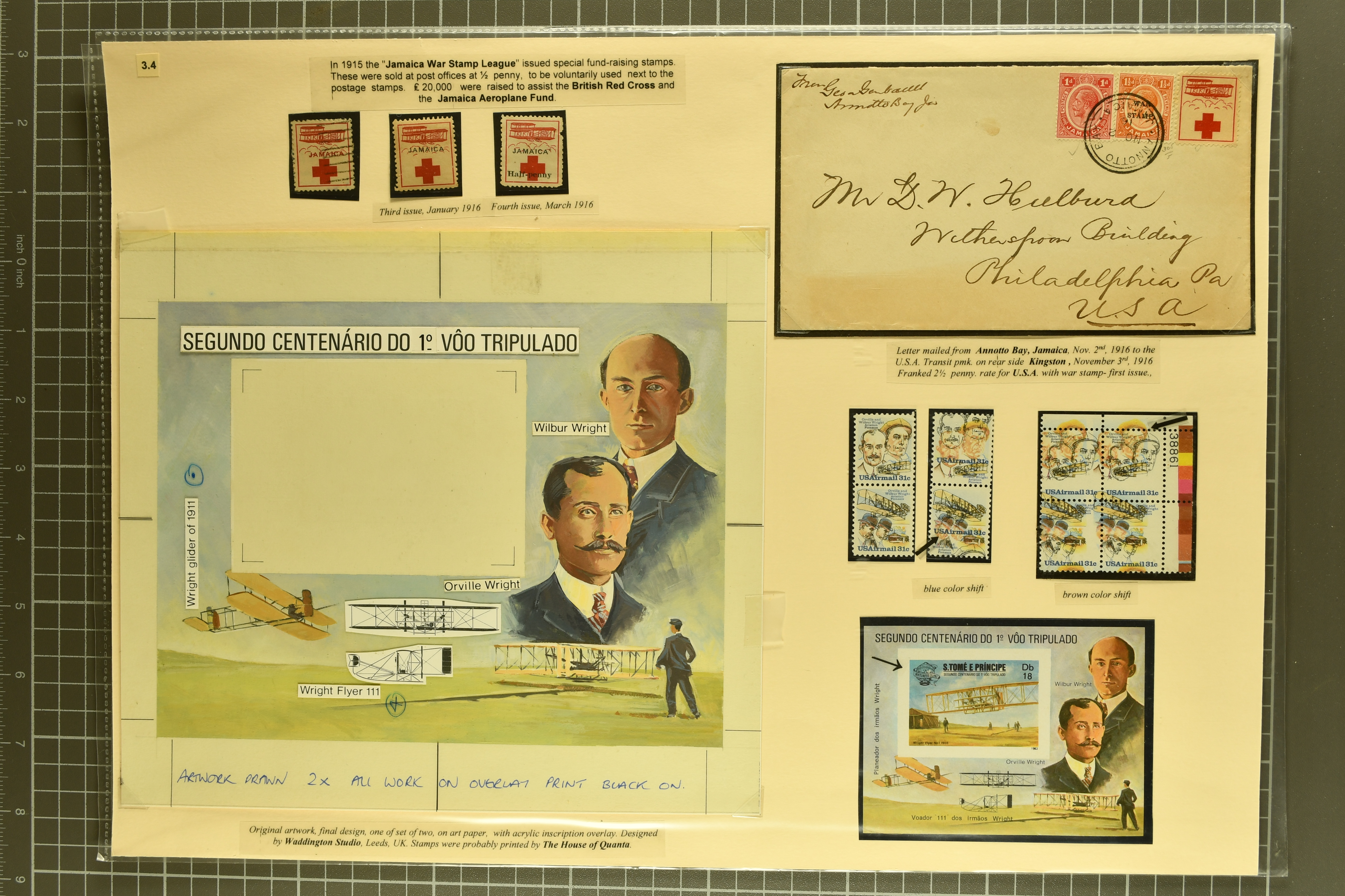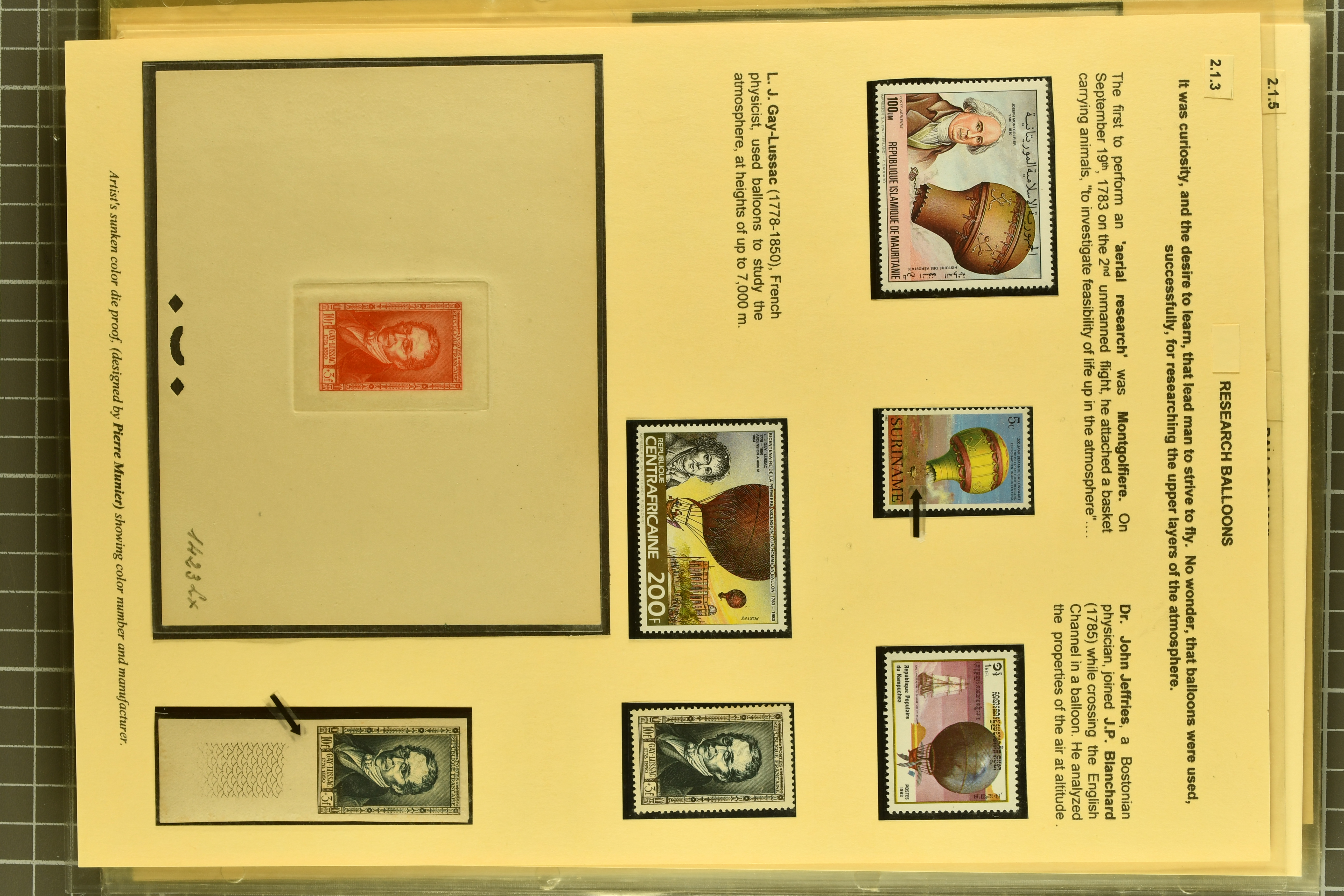 1491 **/*/cover/(*) image1979/2005: Airship, Aviator and Aircraft Constructors study collection, set-out upon 25 exhibition pages (x8 being A3), comprising over 200 items of which 16 are original artists artwork on cardboard, 28 proofs including sunken die proof, photographic and colour trials. Large quantity of Essay/Artwork/Minisheets for São Tomé and Príncipe airmail stamps, such as 200th Anniversary of Manned Flights, with a quantity of airmail related commenorative/airmail stamps from other countries including; Brazil (Santos Dumont portrait / airship), Denmark (Viggo Bang sketch and artwork), USA, Cuba, Czechoslovakia, DPR Korea, Gabon, Monoco, Slovakia, France, Sierra Leone, Canada, Syria, Jersey, Peru and others. Range of overprinted airmail issues including varieties. Colourful and visually appealing thematic study, with many scarce and fine items. Ex. The ‘Izhak Barak’ Collection: The Development of Aviation and Transportation of Mail by Air until 1914 (Image 1) (Image 2) (Image 3) (Image 4) (Image 5) (Image 6) (Image 7) (Image 8) (Image 9) (Image 10) (Image 11) (Image 12) (Image 13) (Image 14) (Image 15) (Image 16) (Image 17) (Image 18) (Image 19) (Image 20) (Image 21) (Image 22) (Image 23) (Image 24) (Image 25) (Image 26) (Image 27) (Image 28)