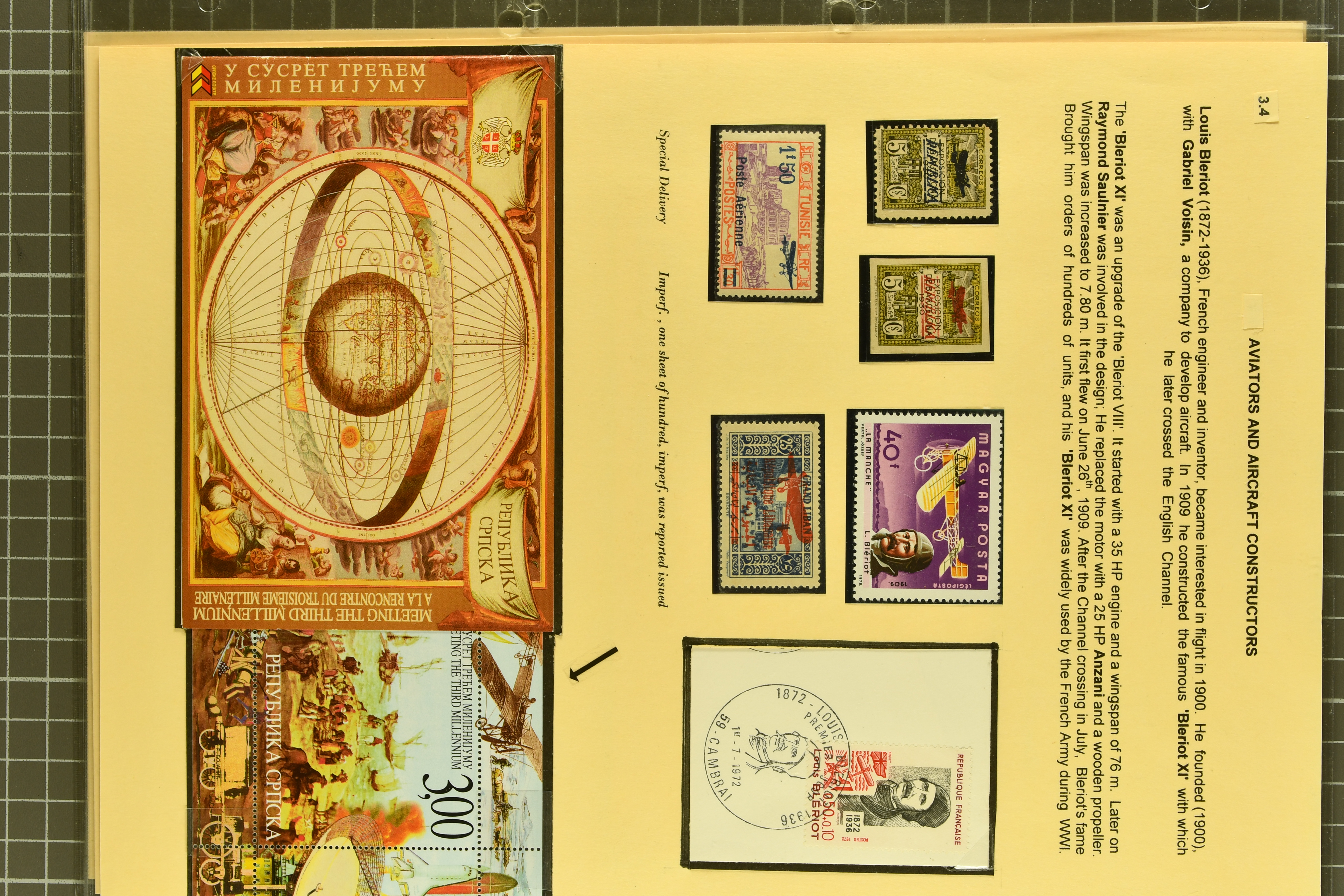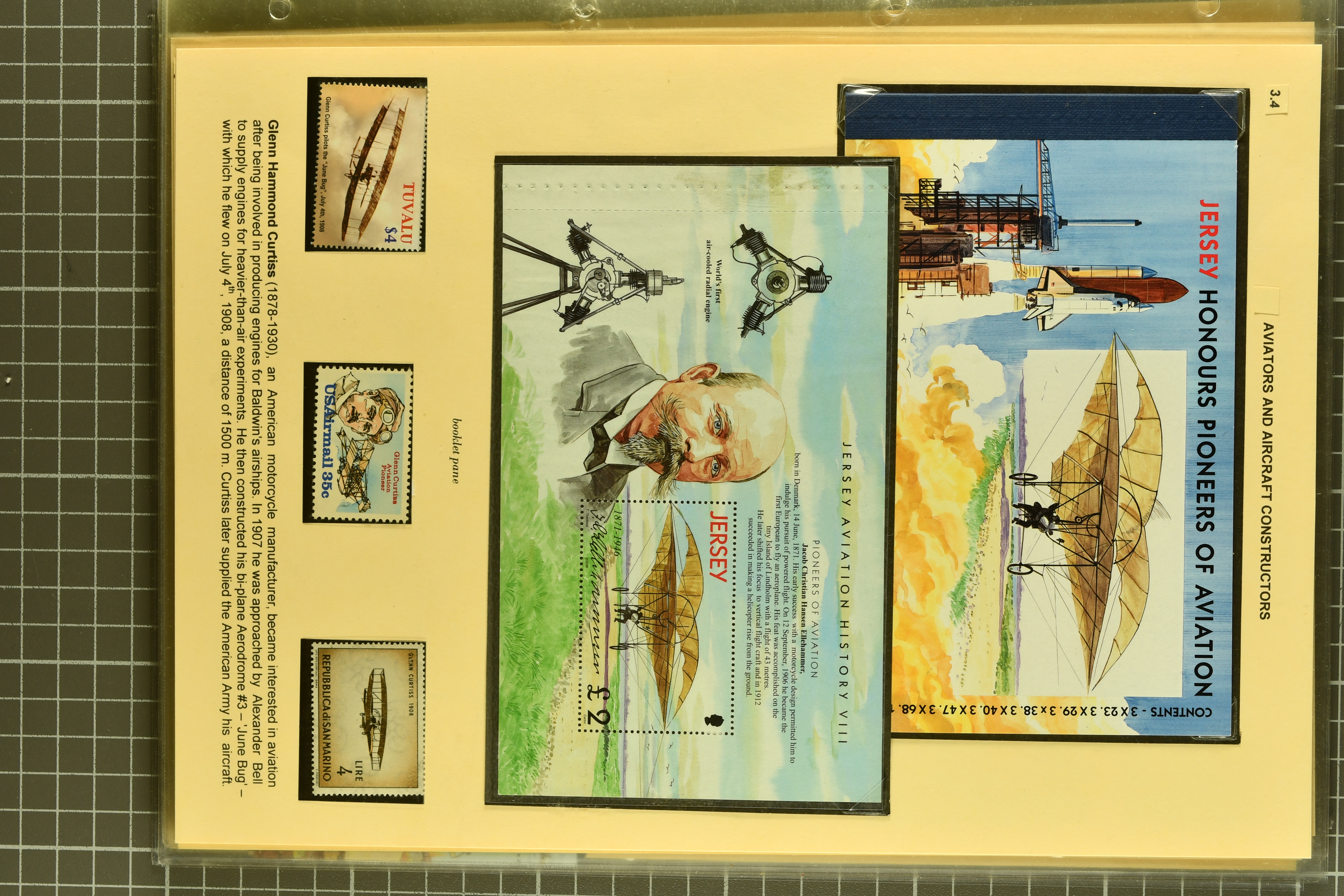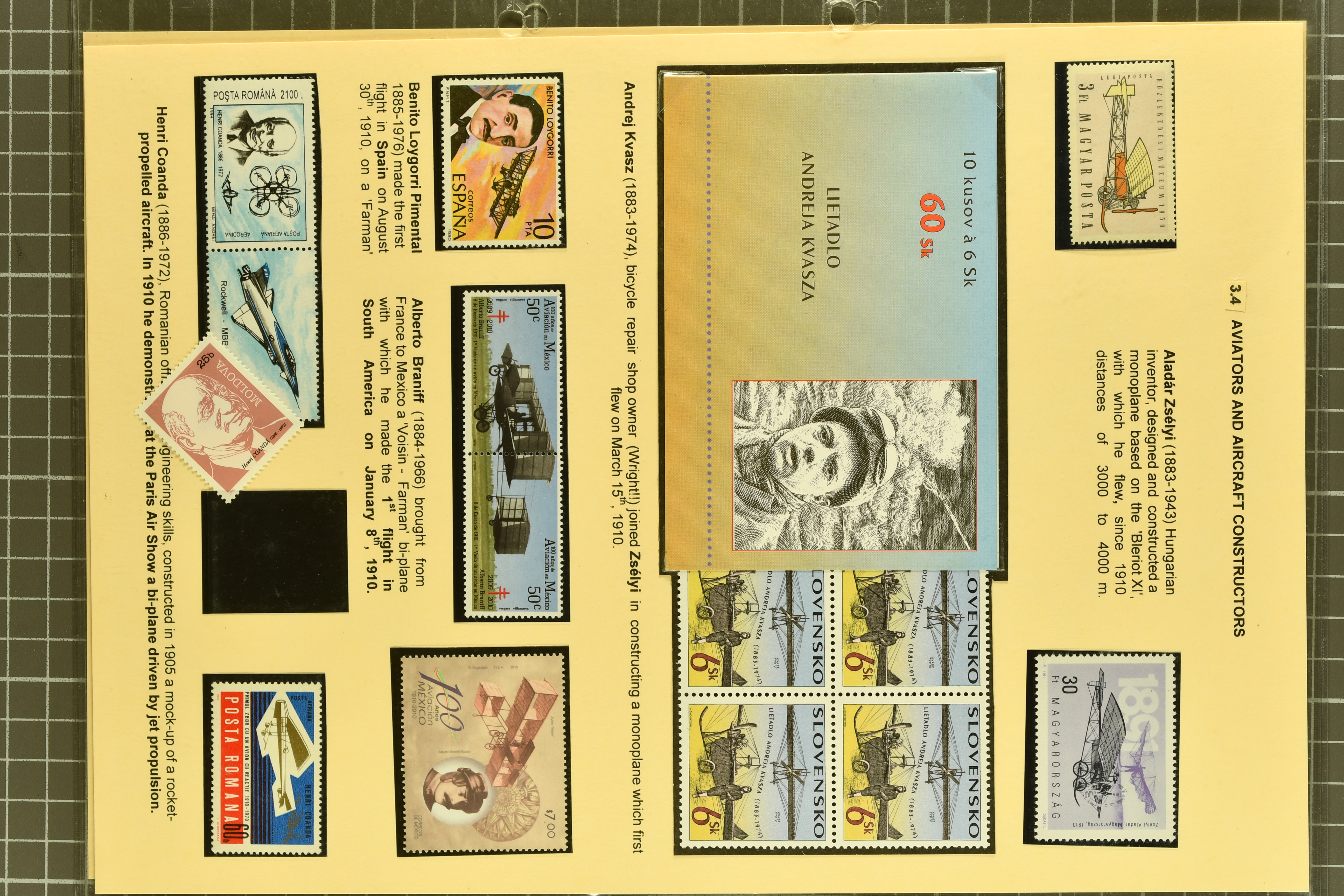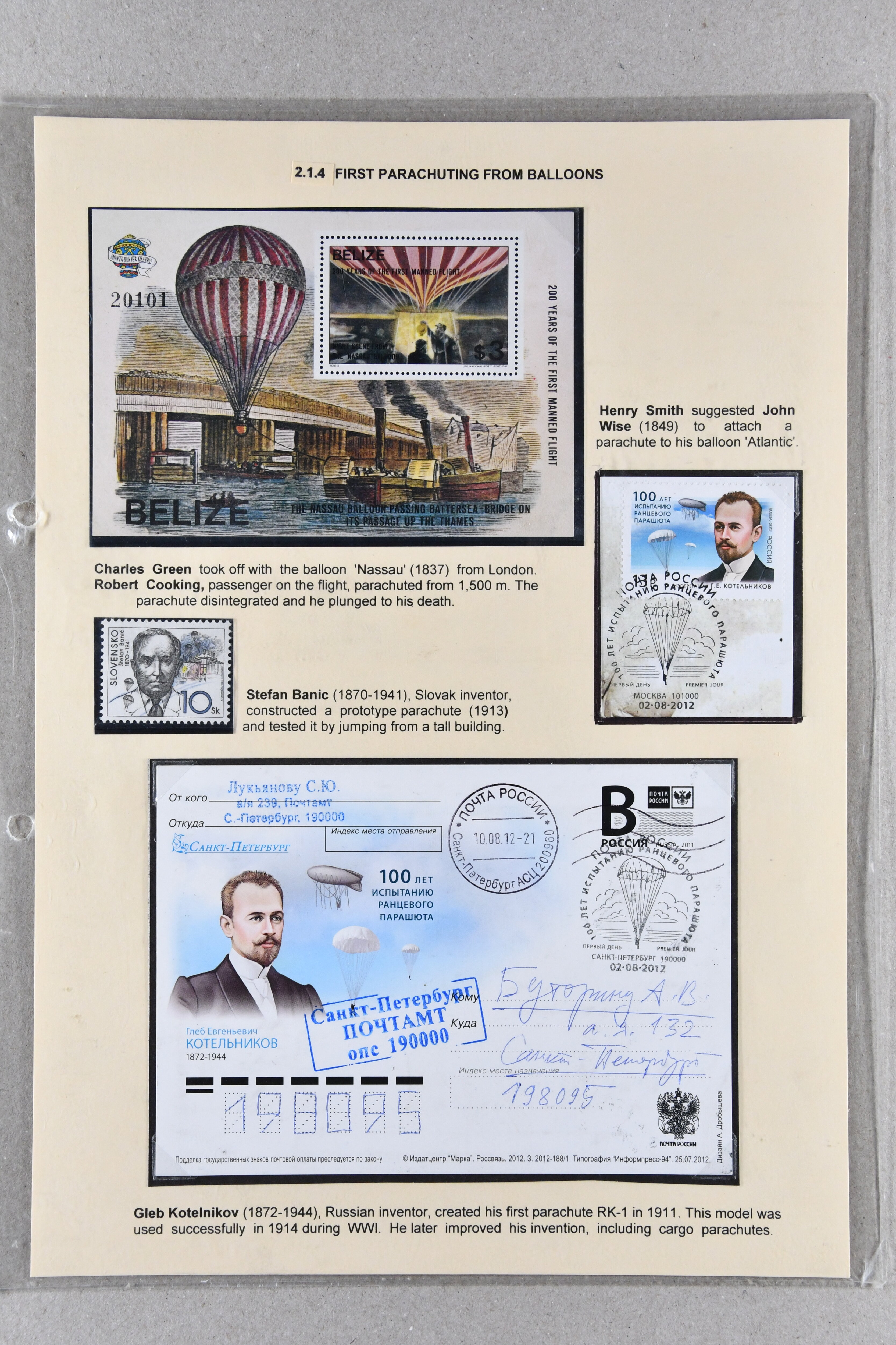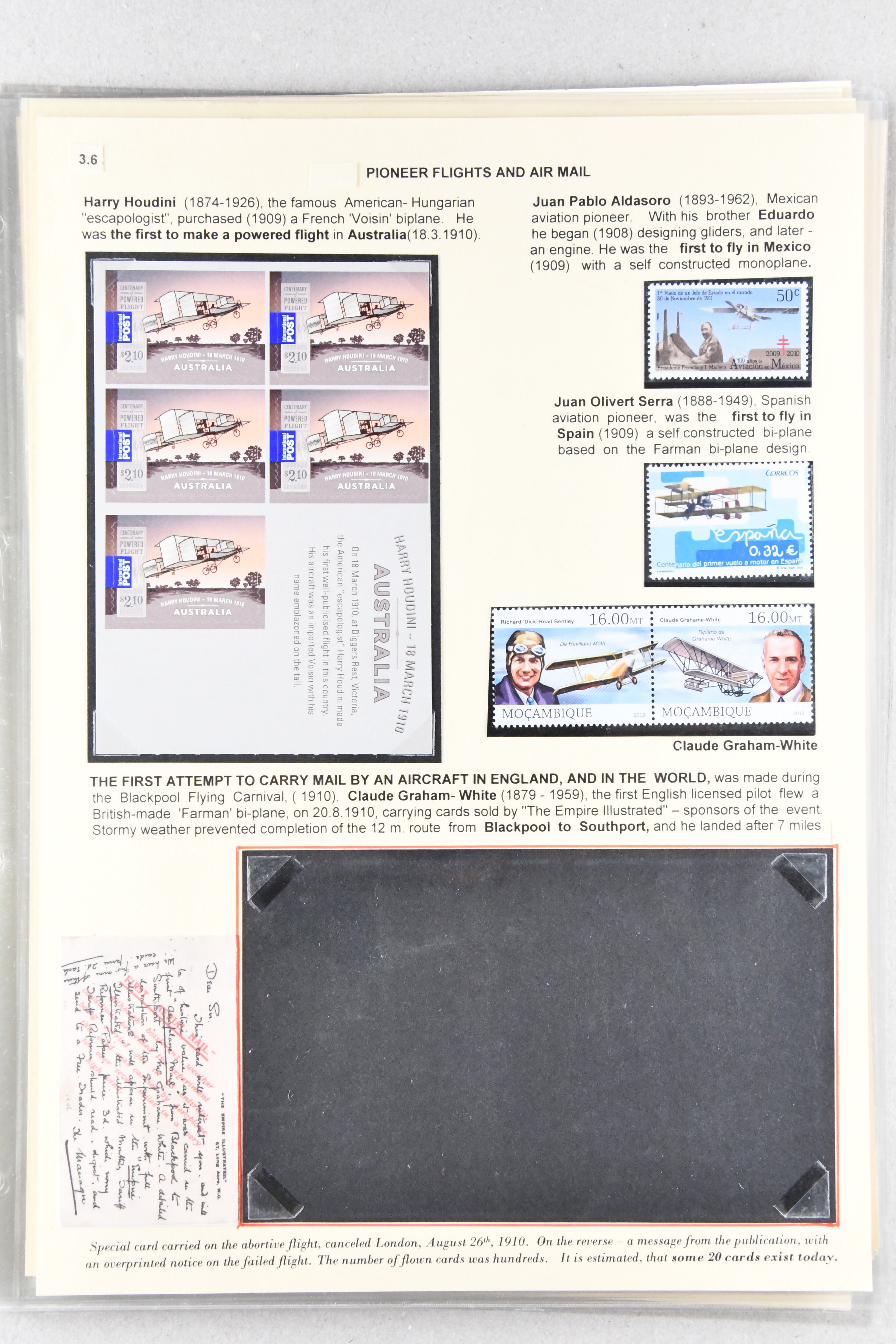 1491 **/*/cover/(*) image1979/2005: Airship, Aviator and Aircraft Constructors study collection, set-out upon 25 exhibition pages (x8 being A3), comprising over 200 items of which 16 are original artists artwork on cardboard, 28 proofs including sunken die proof, photographic and colour trials. Large quantity of Essay/Artwork/Minisheets for São Tomé and Príncipe airmail stamps, such as 200th Anniversary of Manned Flights, with a quantity of airmail related commenorative/airmail stamps from other countries including; Brazil (Santos Dumont portrait / airship), Denmark (Viggo Bang sketch and artwork), USA, Cuba, Czechoslovakia, DPR Korea, Gabon, Monoco, Slovakia, France, Sierra Leone, Canada, Syria, Jersey, Peru and others. Range of overprinted airmail issues including varieties. Colourful and visually appealing thematic study, with many scarce and fine items. Ex. The ‘Izhak Barak’ Collection: The Development of Aviation and Transportation of Mail by Air until 1914 (Image 1) (Image 2) (Image 3) (Image 4) (Image 5) (Image 6) (Image 7) (Image 8) (Image 9) (Image 10) (Image 11) (Image 12) (Image 13) (Image 14) (Image 15) (Image 16) (Image 17) (Image 18) (Image 19) (Image 20) (Image 21) (Image 22) (Image 23) (Image 24) (Image 25) (Image 26) (Image 27) (Image 28)