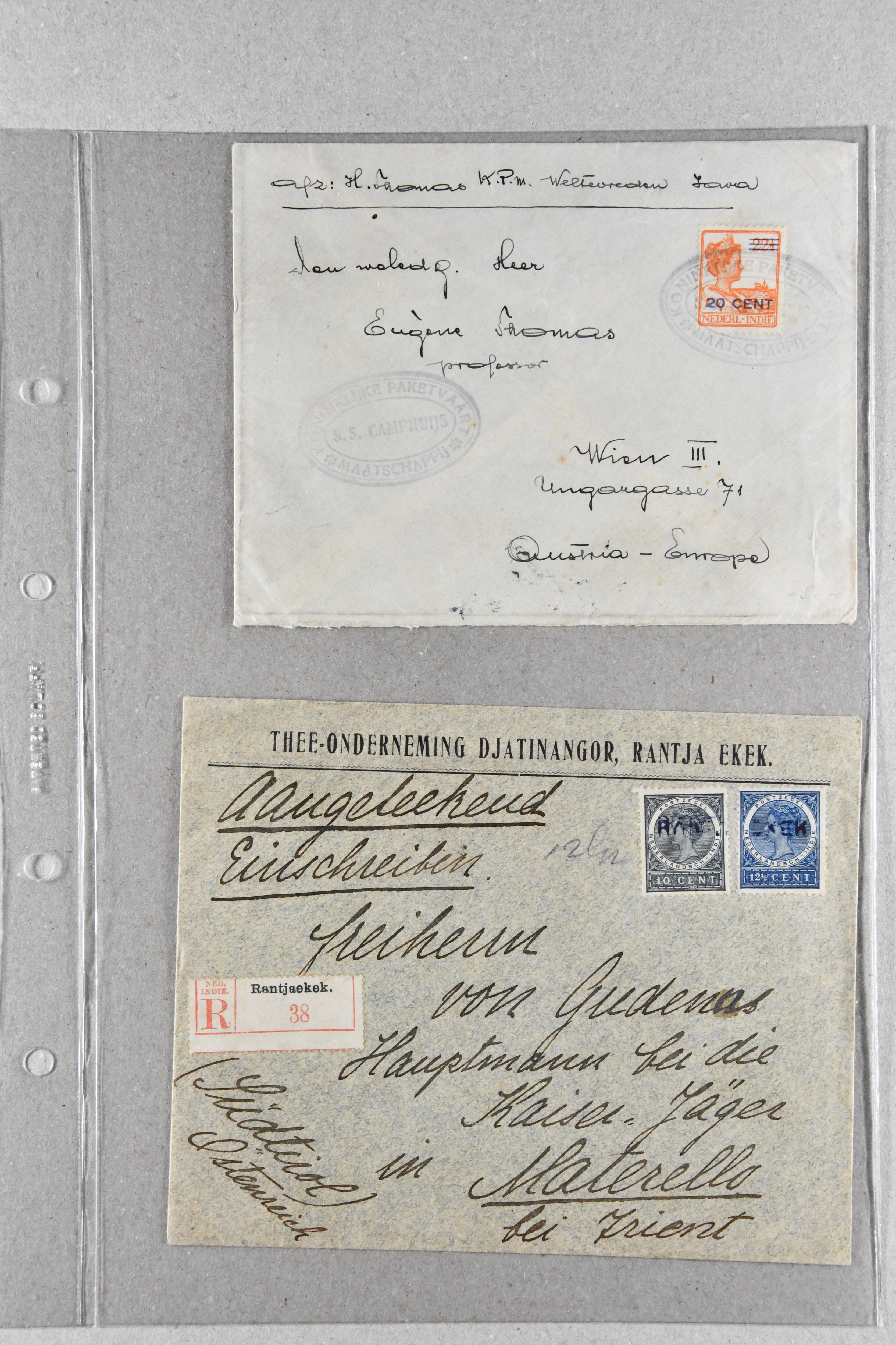 1498 cover 1870/1990ca.: Convolute of covers from early to modern, often oversized, with a range of attractive and unusual items. Highlights include a group of WWI Serbia-related cards and Dutch Indies WWII censored covers connected to the Red Cross. Also present are FDCs and modern material. A varied lot with much to explore – close inspection advised