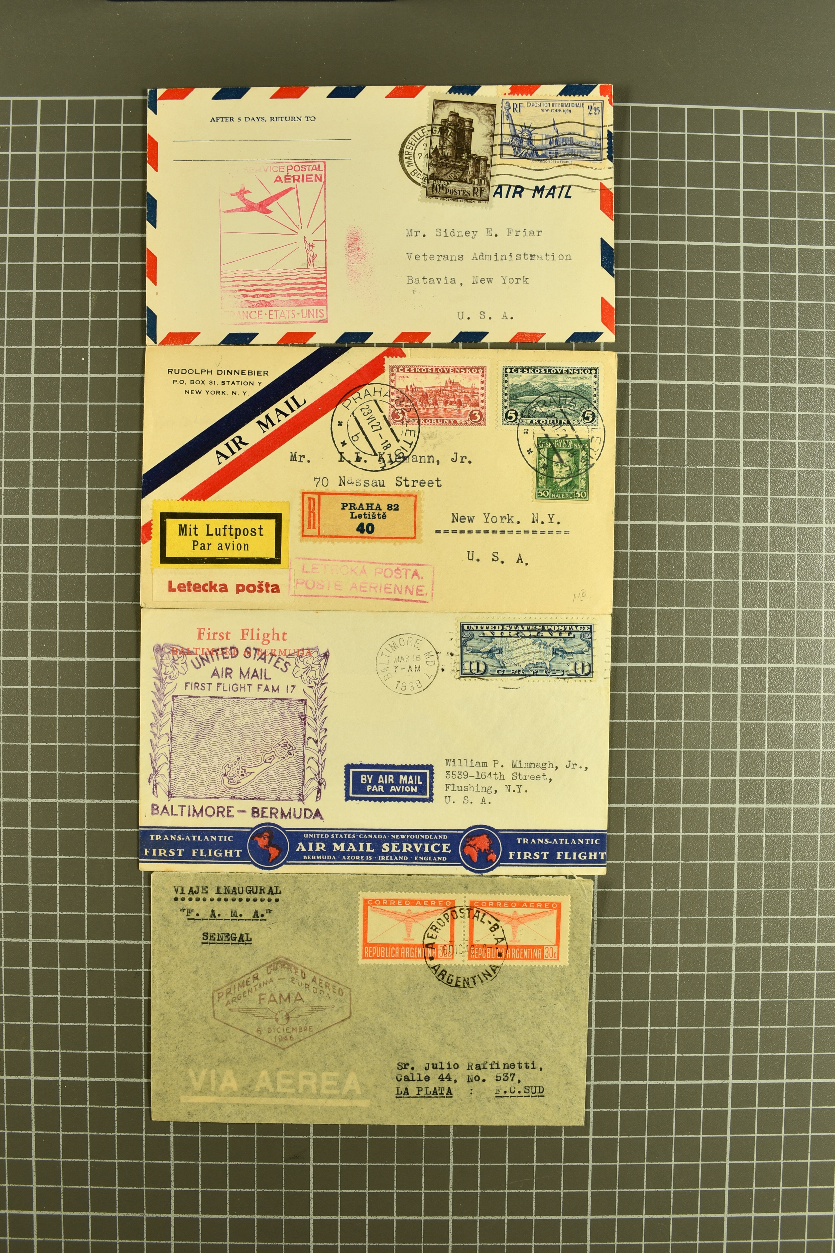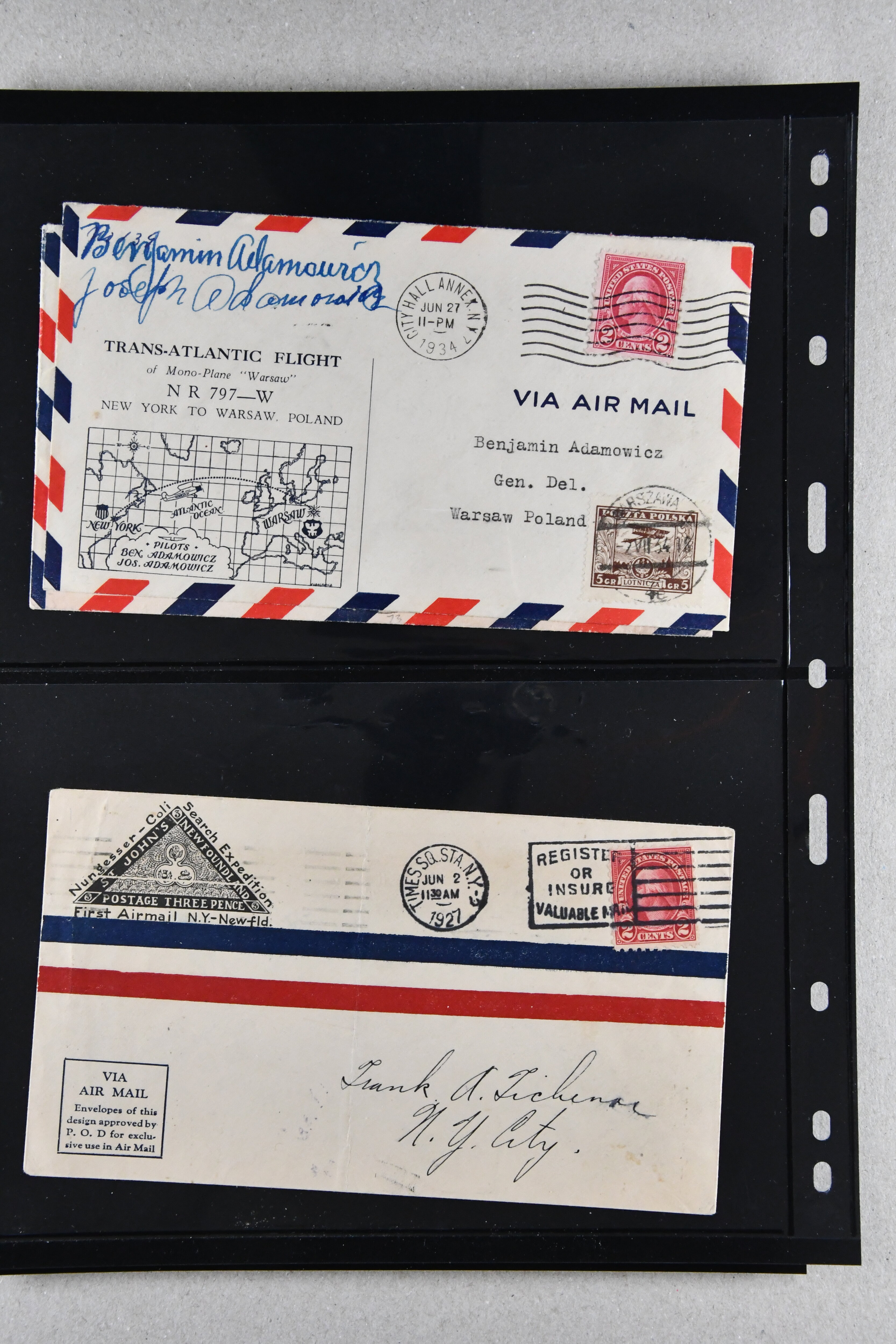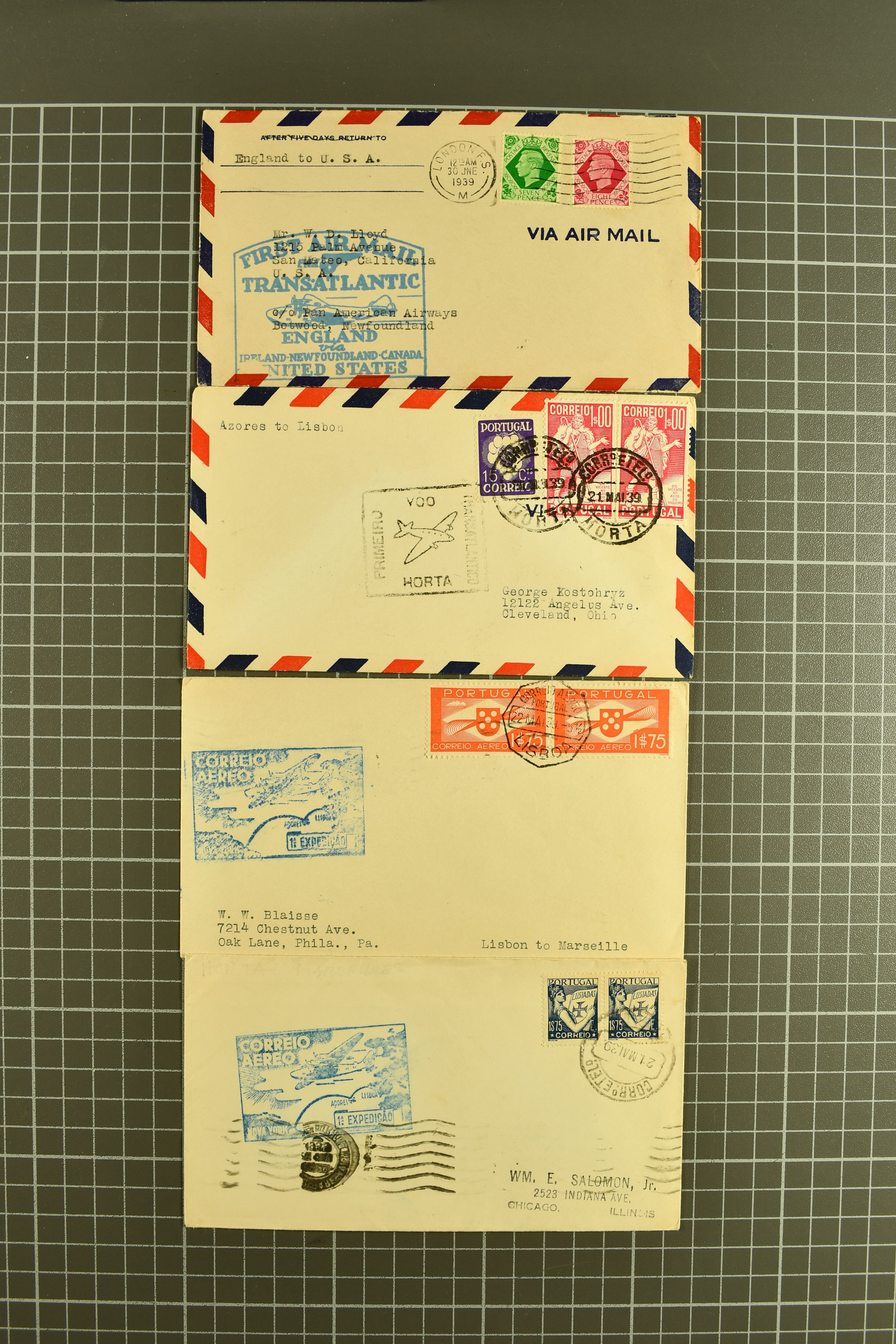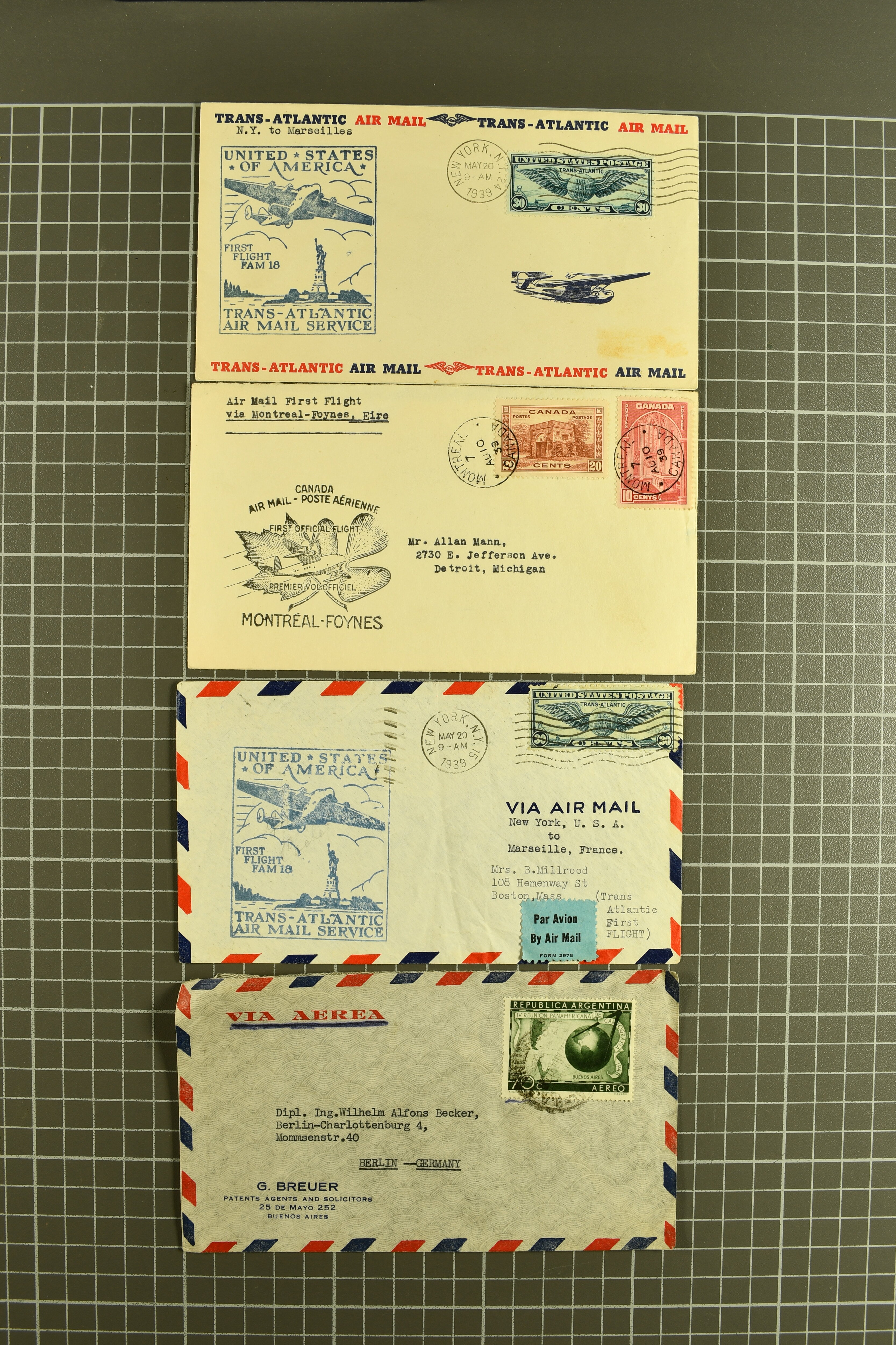 1505 cover imageTransatlantic Mail 1925/39: Group of 22 covers/cards, incl. 1925 'Amundsen - Ellsworth' North Pole Mail, 1927 Nungesser & Coli Search Expedition, 1931 Hilling and Hoiriis Transatlantic Flight, 1934 Benjamin and Joseph Adamowicz attempted non-stop flight New York to Warsaw (2), 1937 “Anglo-American Good Will Coronation Flight” (2), 1939 PAA flight Bogota - New York - Europe (Mu90), IA first flight Paramaribo - New York - Southampton to Holland (Mu51) as well as eight special printed 'Amon Carter' covers of 1939 'Yankee Clipper' flight New York - Azores - Lisbon - Marseilles FAM-18 inauguration flight. Some with edge wear, but generally fine (Image 1) (Image 2) (Image 3) (Image 4) (Image 5) (Image 6) (Image 7) (Image 8) (Image 9) (Image 10) (Image 11)