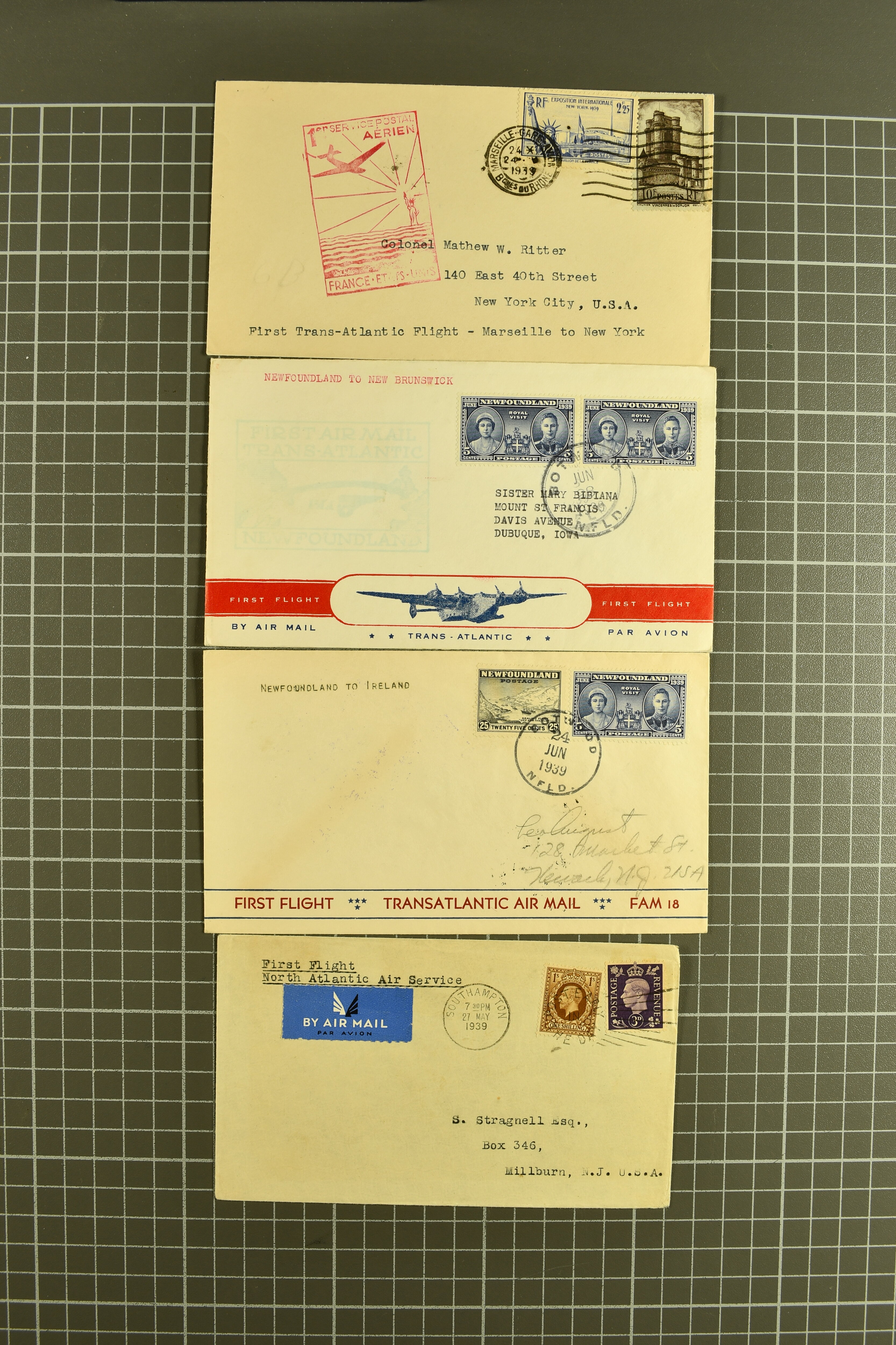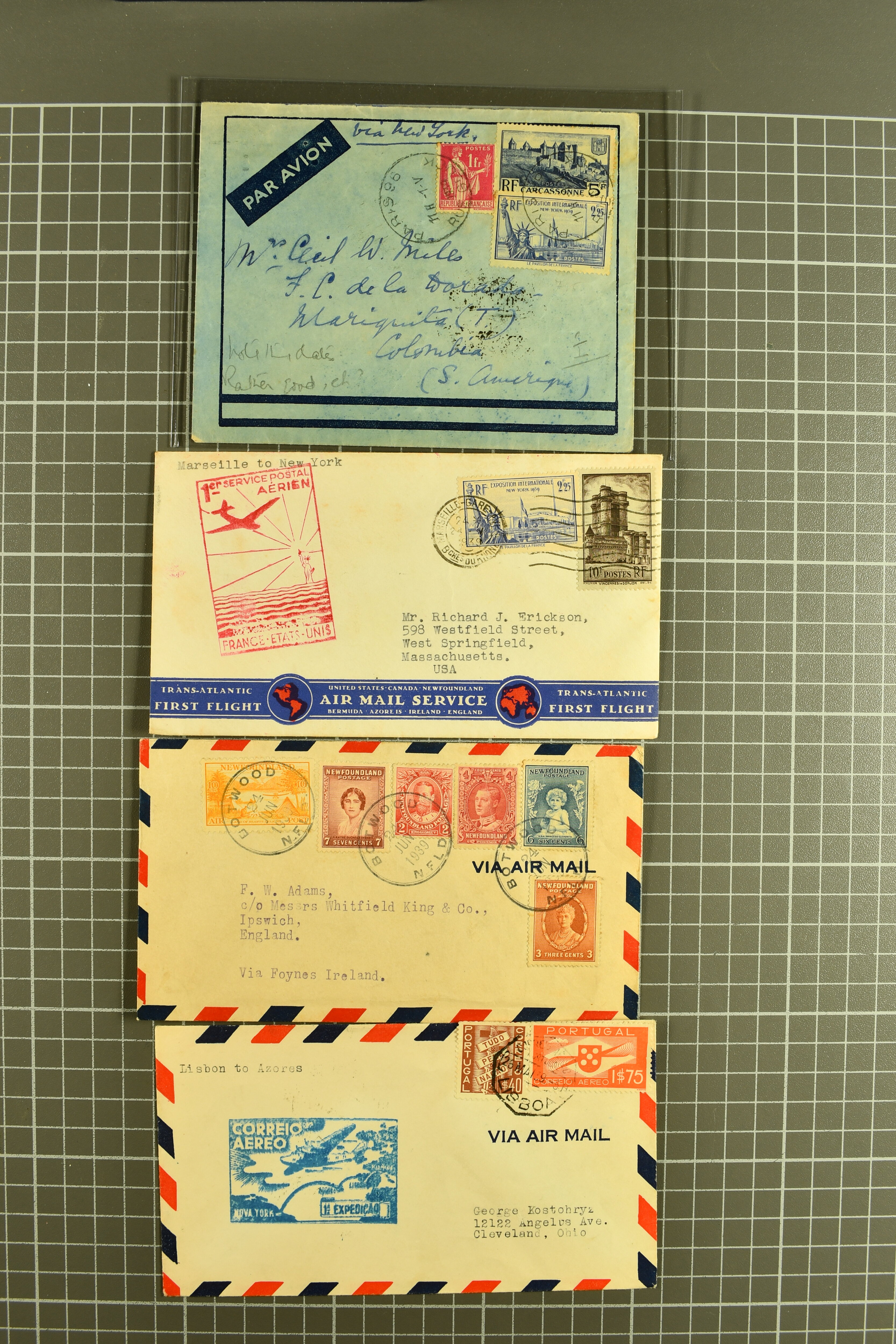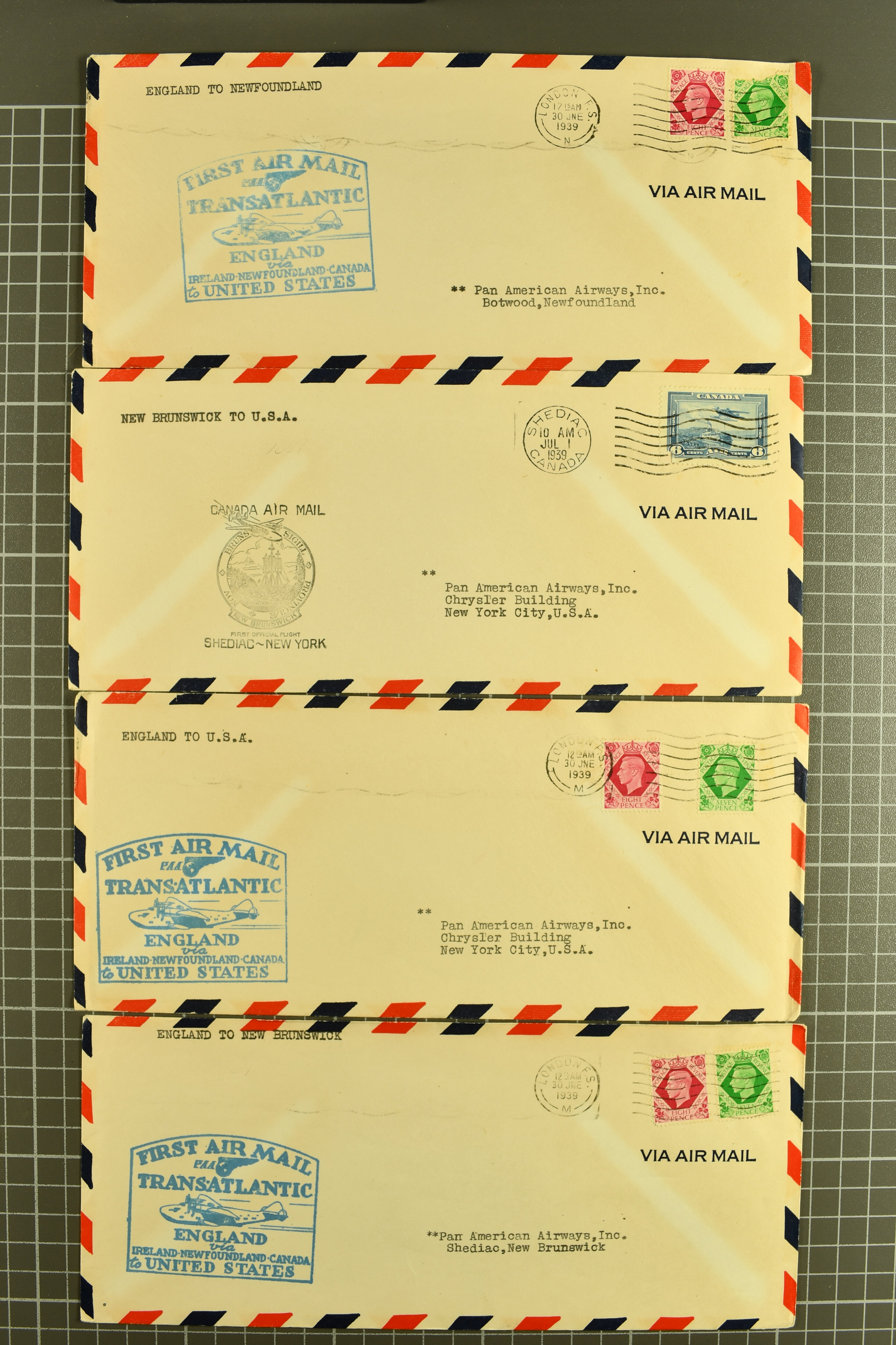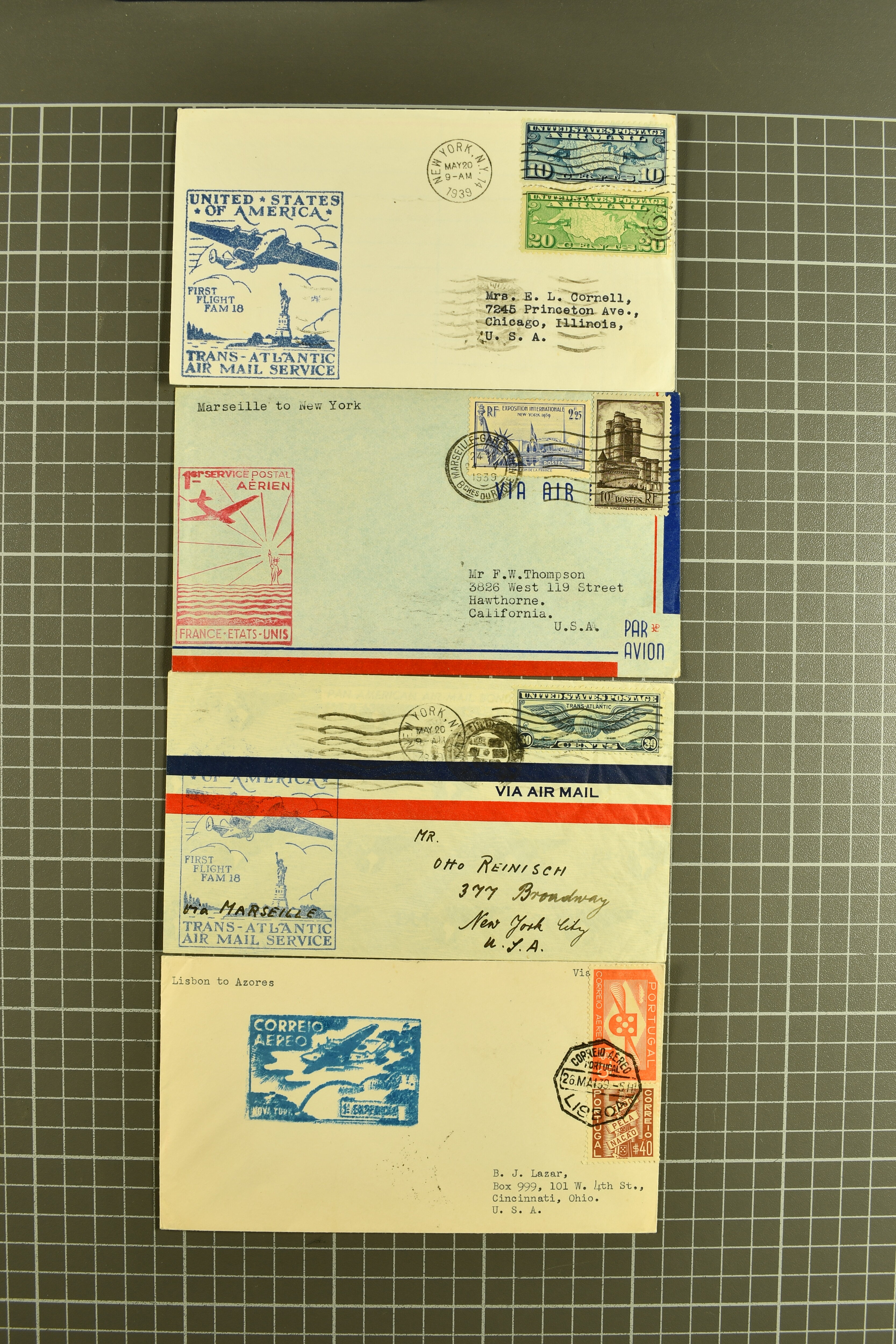1505 cover imageTransatlantic Mail 1925/39: Group of 22 covers/cards, incl. 1925 'Amundsen - Ellsworth' North Pole Mail, 1927 Nungesser & Coli Search Expedition, 1931 Hilling and Hoiriis Transatlantic Flight, 1934 Benjamin and Joseph Adamowicz attempted non-stop flight New York to Warsaw (2), 1937 “Anglo-American Good Will Coronation Flight” (2), 1939 PAA flight Bogota - New York - Europe (Mu90), IA first flight Paramaribo - New York - Southampton to Holland (Mu51) as well as eight special printed 'Amon Carter' covers of 1939 'Yankee Clipper' flight New York - Azores - Lisbon - Marseilles FAM-18 inauguration flight. Some with edge wear, but generally fine (Image 1) (Image 2) (Image 3) (Image 4) (Image 5) (Image 6) (Image 7) (Image 8) (Image 9) (Image 10) (Image 11)