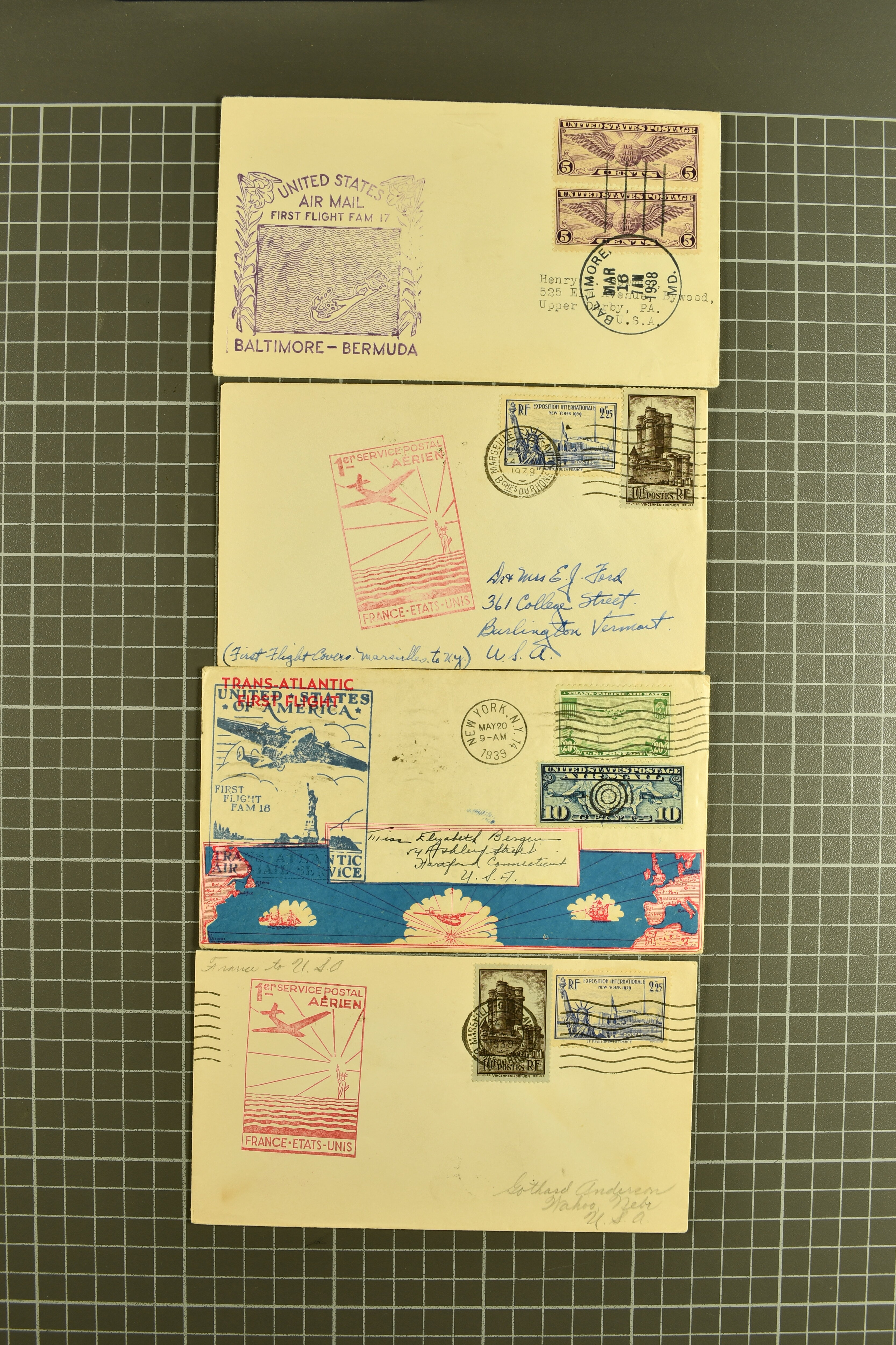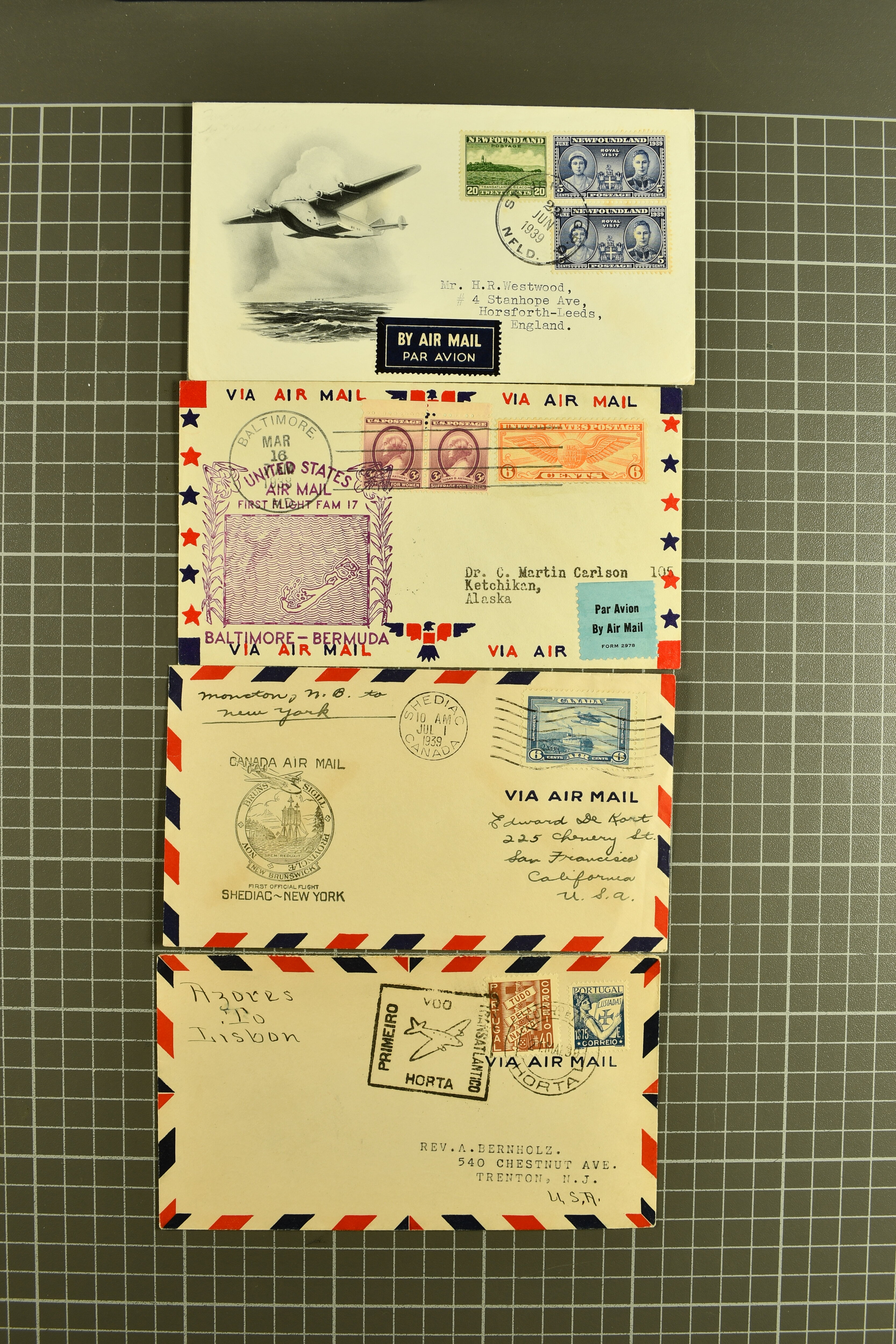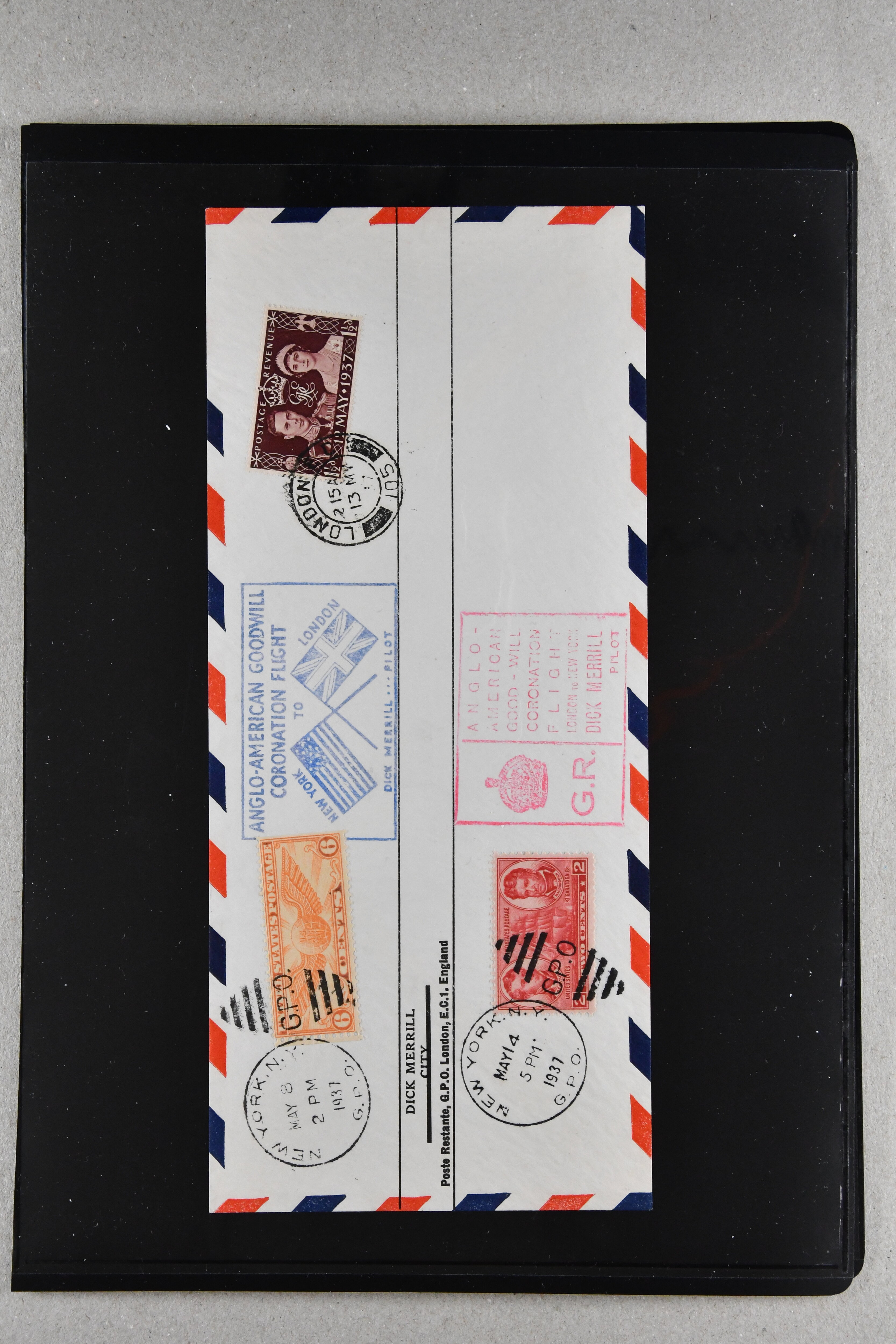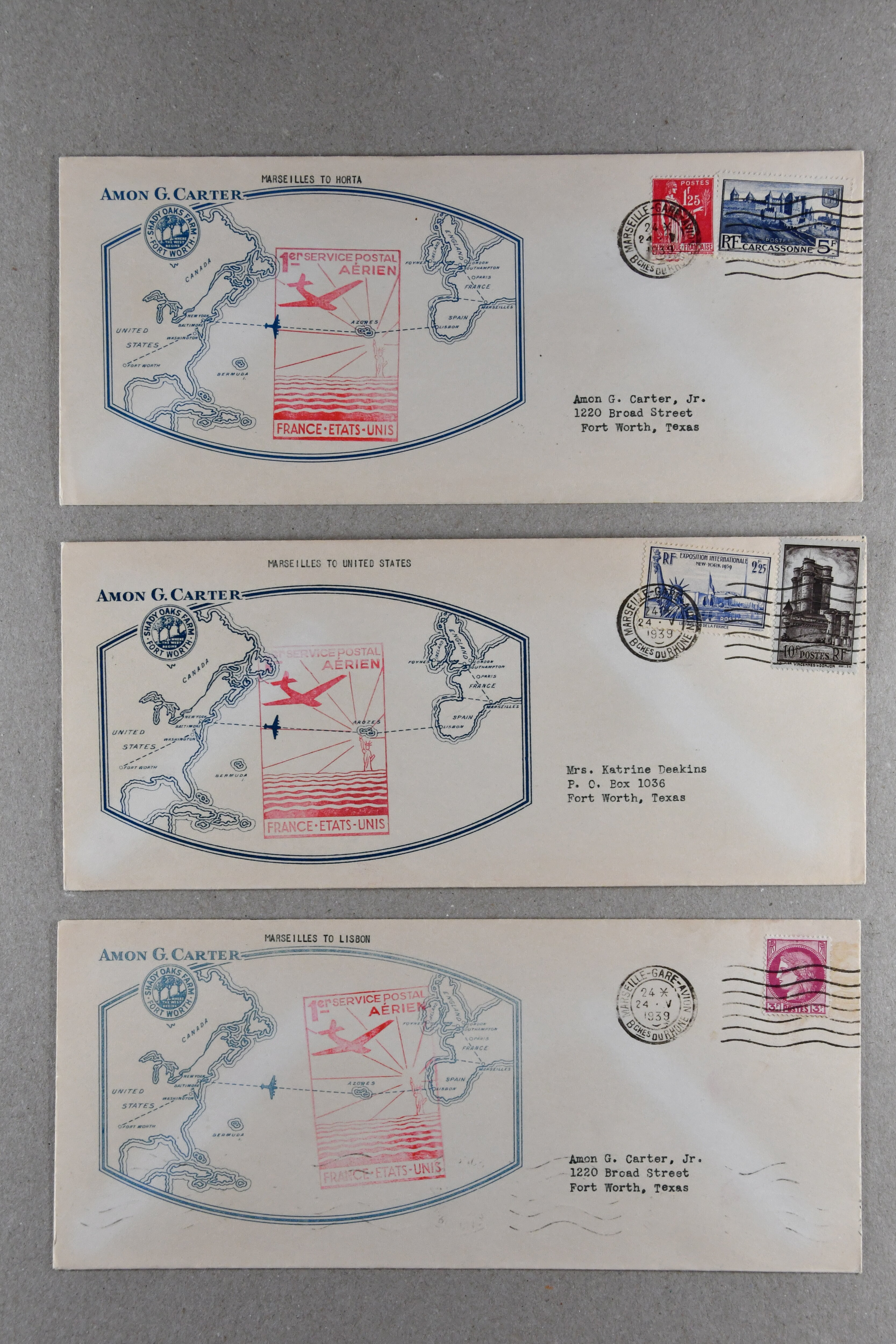 1505 cover imageTransatlantic Mail 1925/39: Group of 22 covers/cards, incl. 1925 'Amundsen - Ellsworth' North Pole Mail, 1927 Nungesser & Coli Search Expedition, 1931 Hilling and Hoiriis Transatlantic Flight, 1934 Benjamin and Joseph Adamowicz attempted non-stop flight New York to Warsaw (2), 1937 “Anglo-American Good Will Coronation Flight” (2), 1939 PAA flight Bogota - New York - Europe (Mu90), IA first flight Paramaribo - New York - Southampton to Holland (Mu51) as well as eight special printed 'Amon Carter' covers of 1939 'Yankee Clipper' flight New York - Azores - Lisbon - Marseilles FAM-18 inauguration flight. Some with edge wear, but generally fine (Image 1) (Image 2) (Image 3) (Image 4) (Image 5) (Image 6) (Image 7) (Image 8) (Image 9) (Image 10) (Image 11)