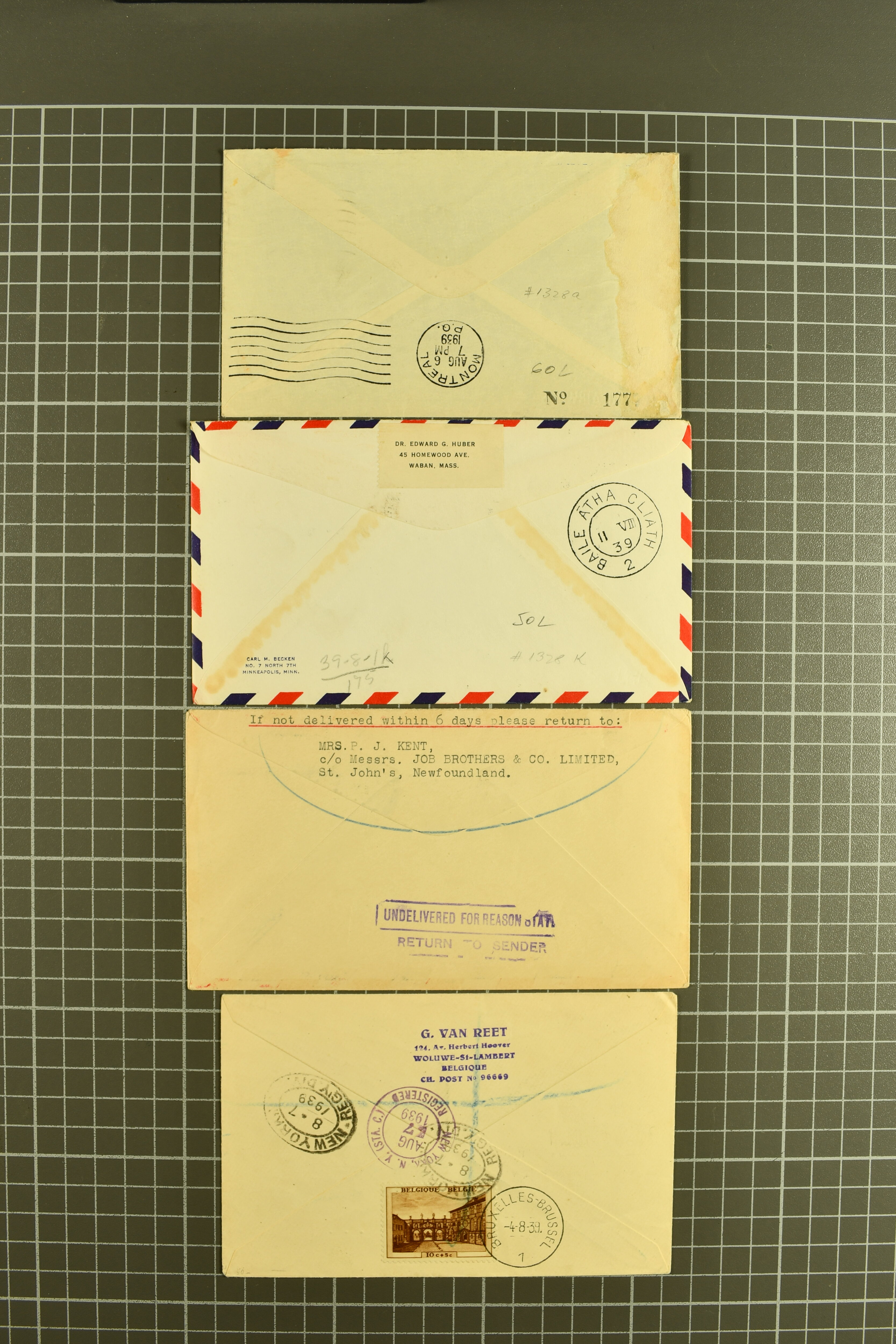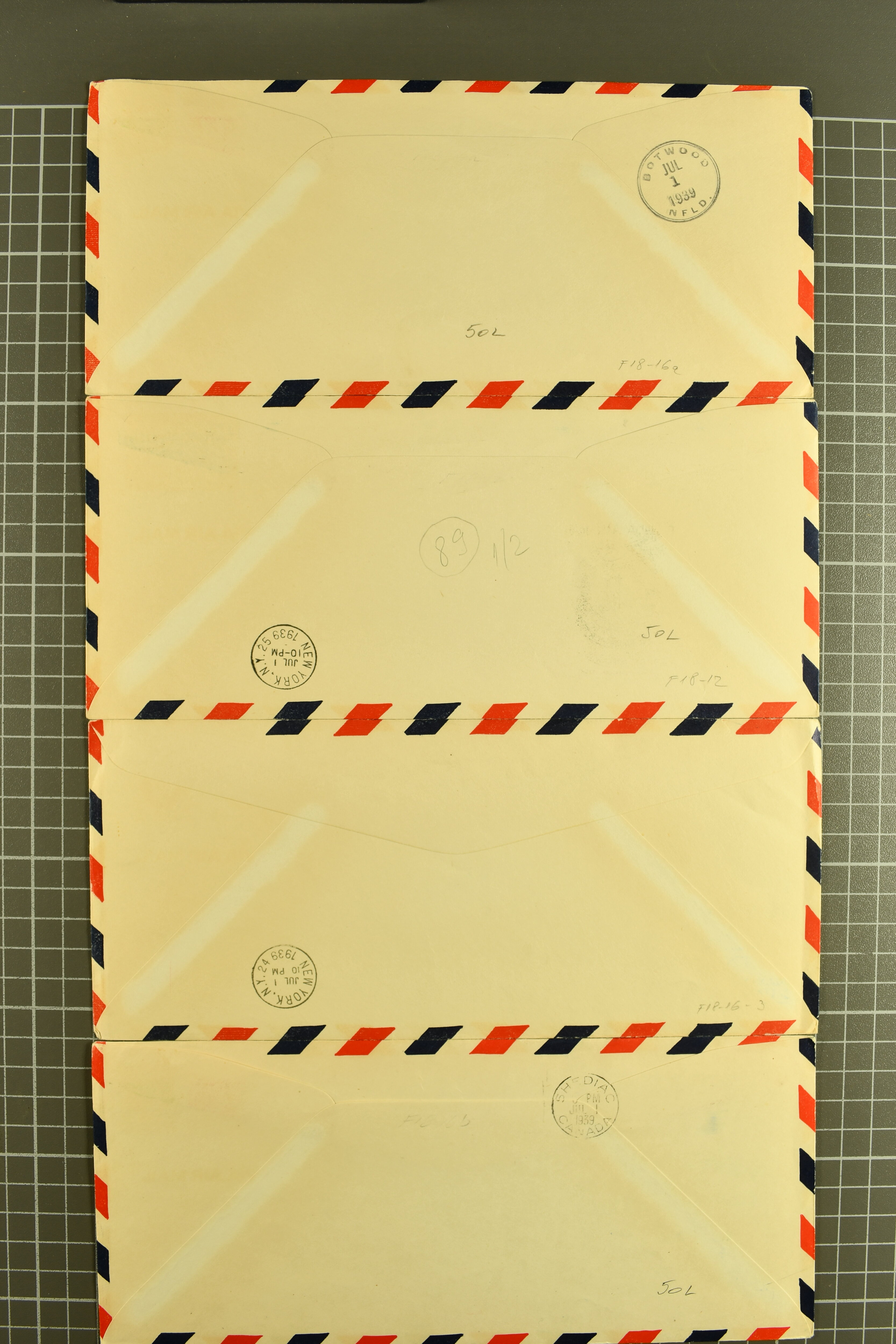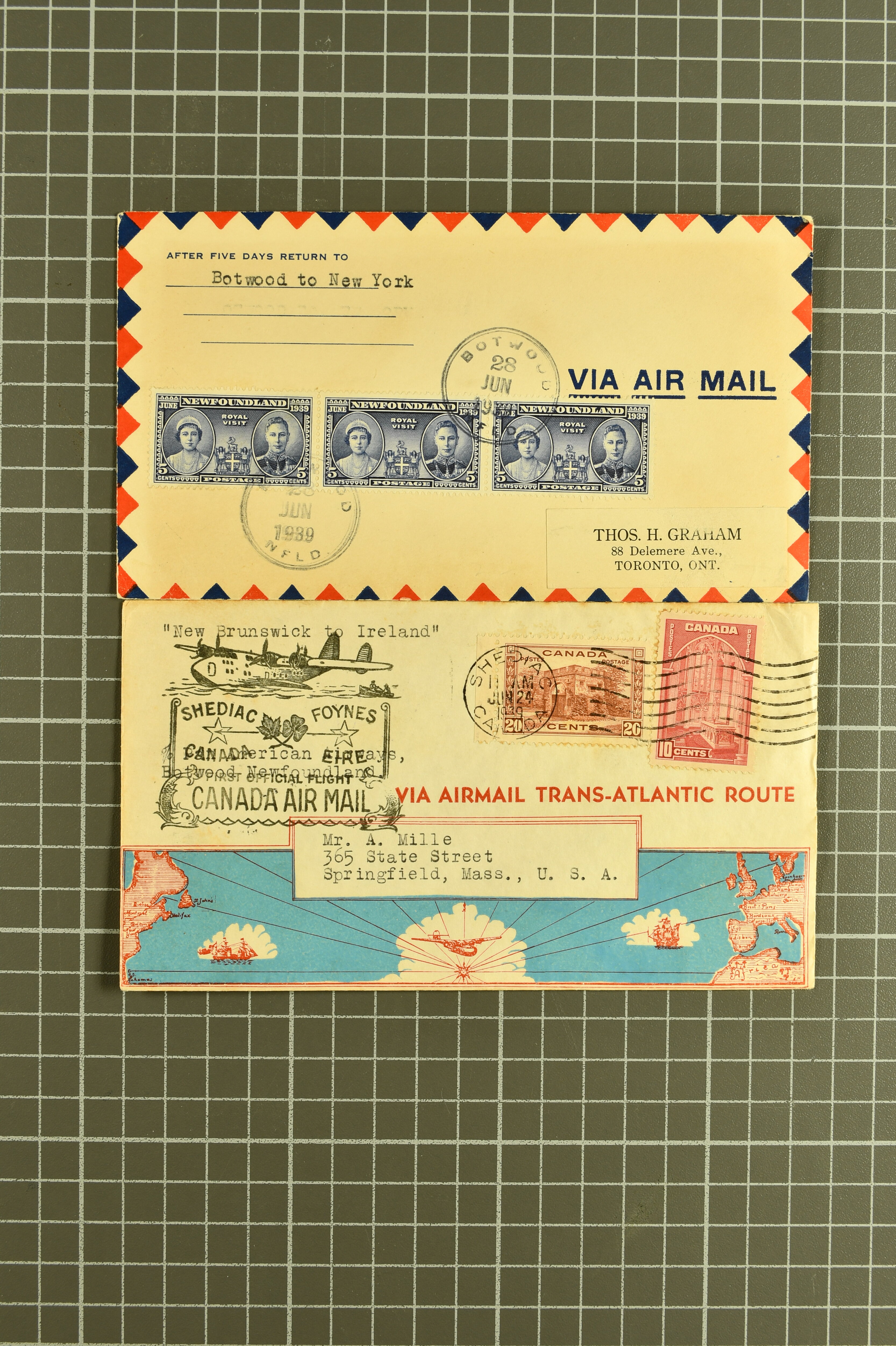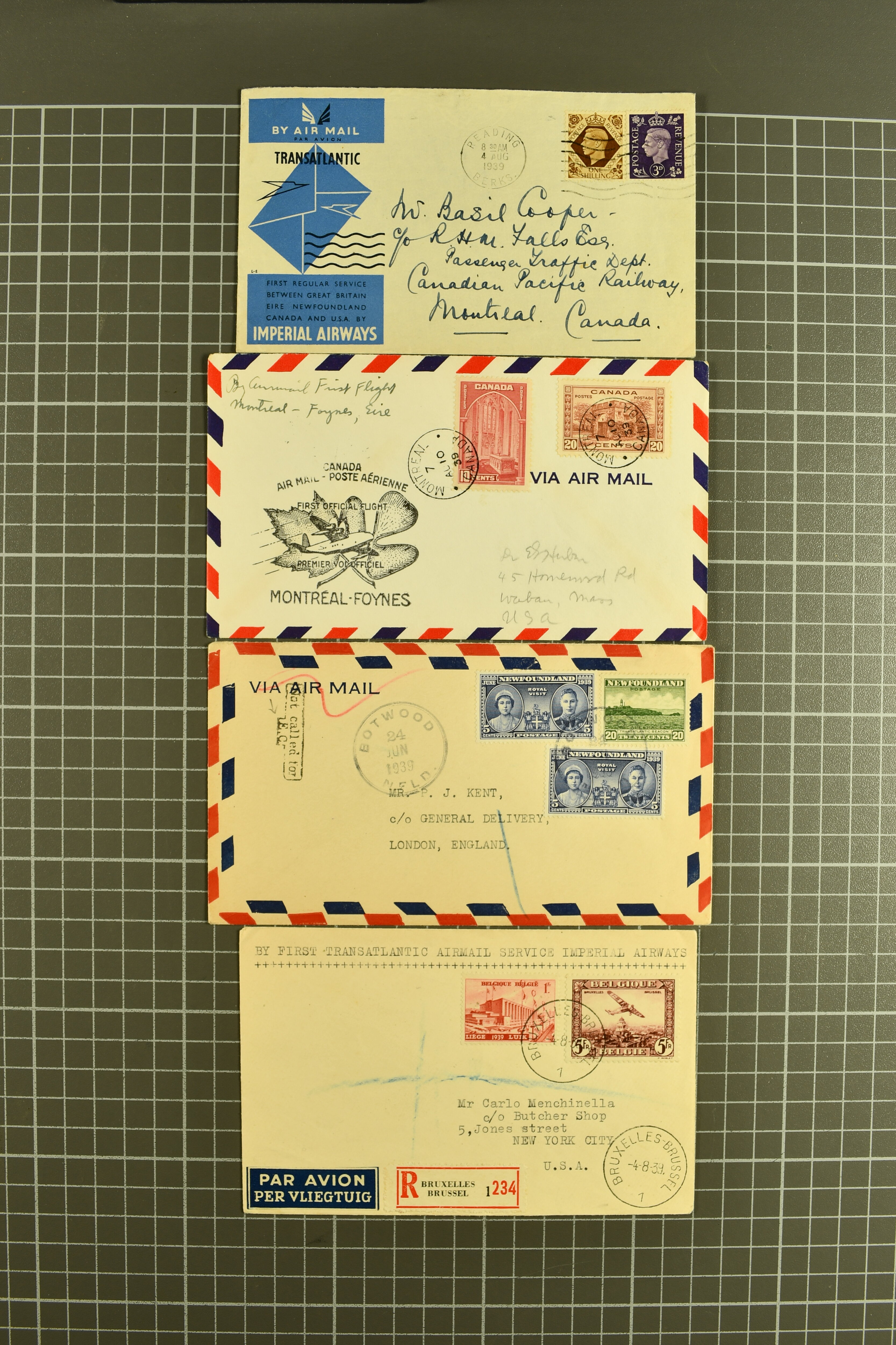 1505 cover imageTransatlantic Mail 1925/39: Group of 22 covers/cards, incl. 1925 'Amundsen - Ellsworth' North Pole Mail, 1927 Nungesser & Coli Search Expedition, 1931 Hilling and Hoiriis Transatlantic Flight, 1934 Benjamin and Joseph Adamowicz attempted non-stop flight New York to Warsaw (2), 1937 “Anglo-American Good Will Coronation Flight” (2), 1939 PAA flight Bogota - New York - Europe (Mu90), IA first flight Paramaribo - New York - Southampton to Holland (Mu51) as well as eight special printed 'Amon Carter' covers of 1939 'Yankee Clipper' flight New York - Azores - Lisbon - Marseilles FAM-18 inauguration flight. Some with edge wear, but generally fine (Image 1) (Image 2) (Image 3) (Image 4) (Image 5) (Image 6) (Image 7) (Image 8) (Image 9) (Image 10) (Image 11)
