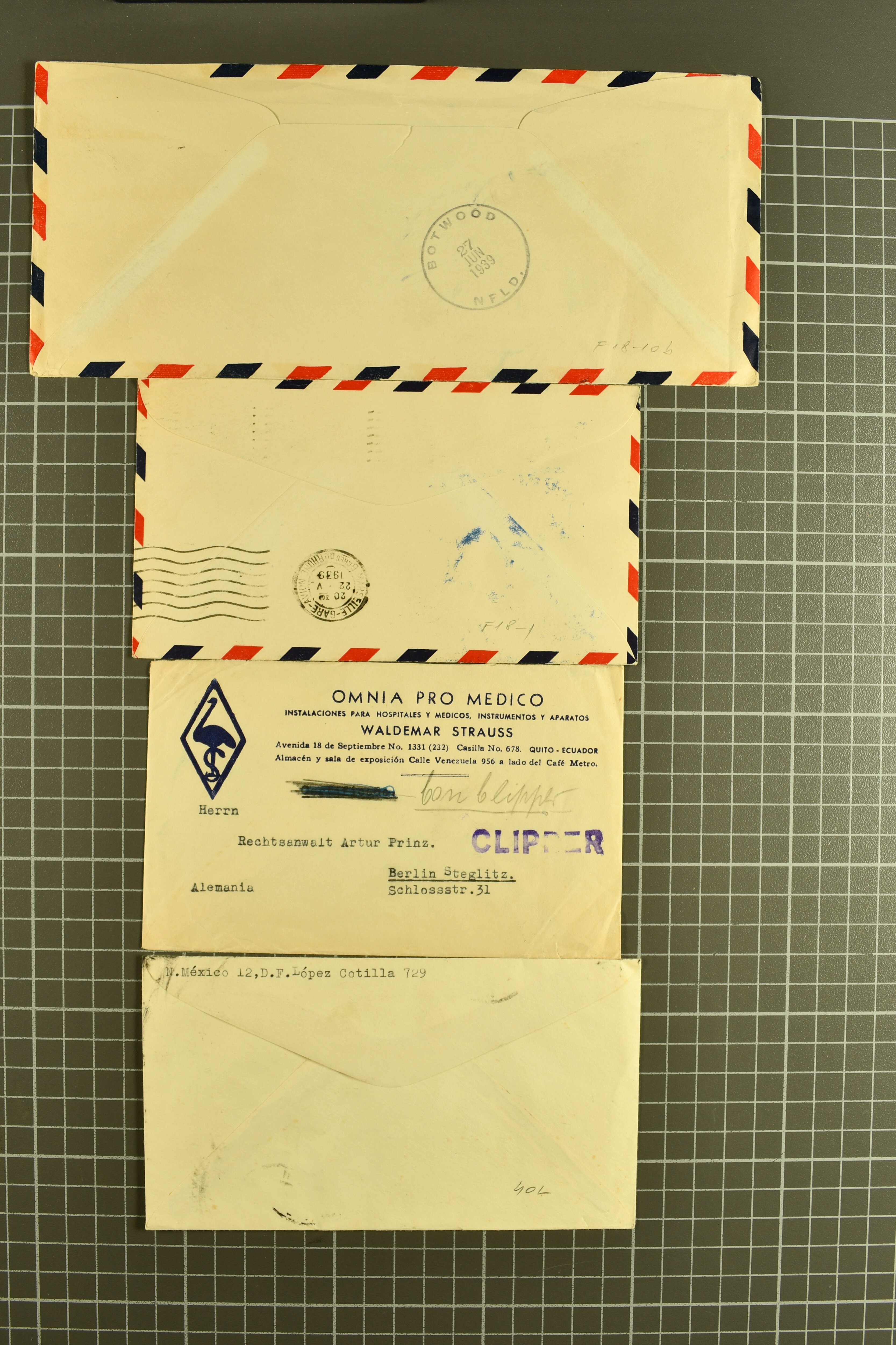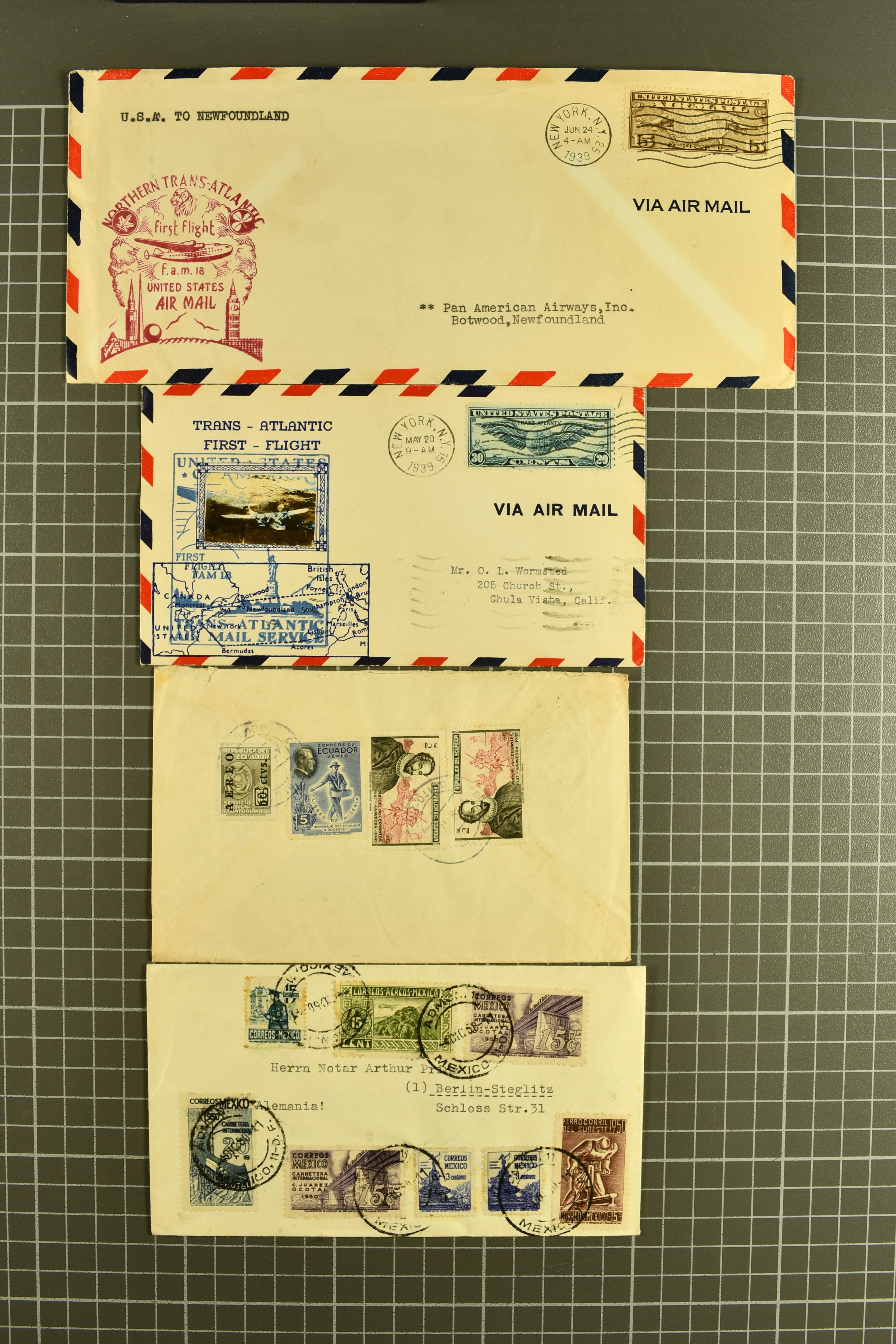 1502 cover imageTransatlantic Mail 1938/47: Lot 60 airmail covers, including 23 different PAA First Flight covers used under FAM-18 scheme, further seven different Imperial Airways First Flight covers, some Clipper mail from Colombia, Guatemala, Haiti, Mexico as well as some 1947 usages from Martinique. A fine assembly (Image 1) (Image 2) (Image 3) (Image 4) (Image 5) (Image 6) (Image 7) (Image 8) (Image 9) (Image 10) (Image 11) (Image 12) (Image 13) (Image 14) (Image 15) (Image 16) (Image 17) (Image 18) (Image 19) (Image 20) (Image 21) (Image 22) (Image 23) (Image 24) (Image 25) (Image 26)