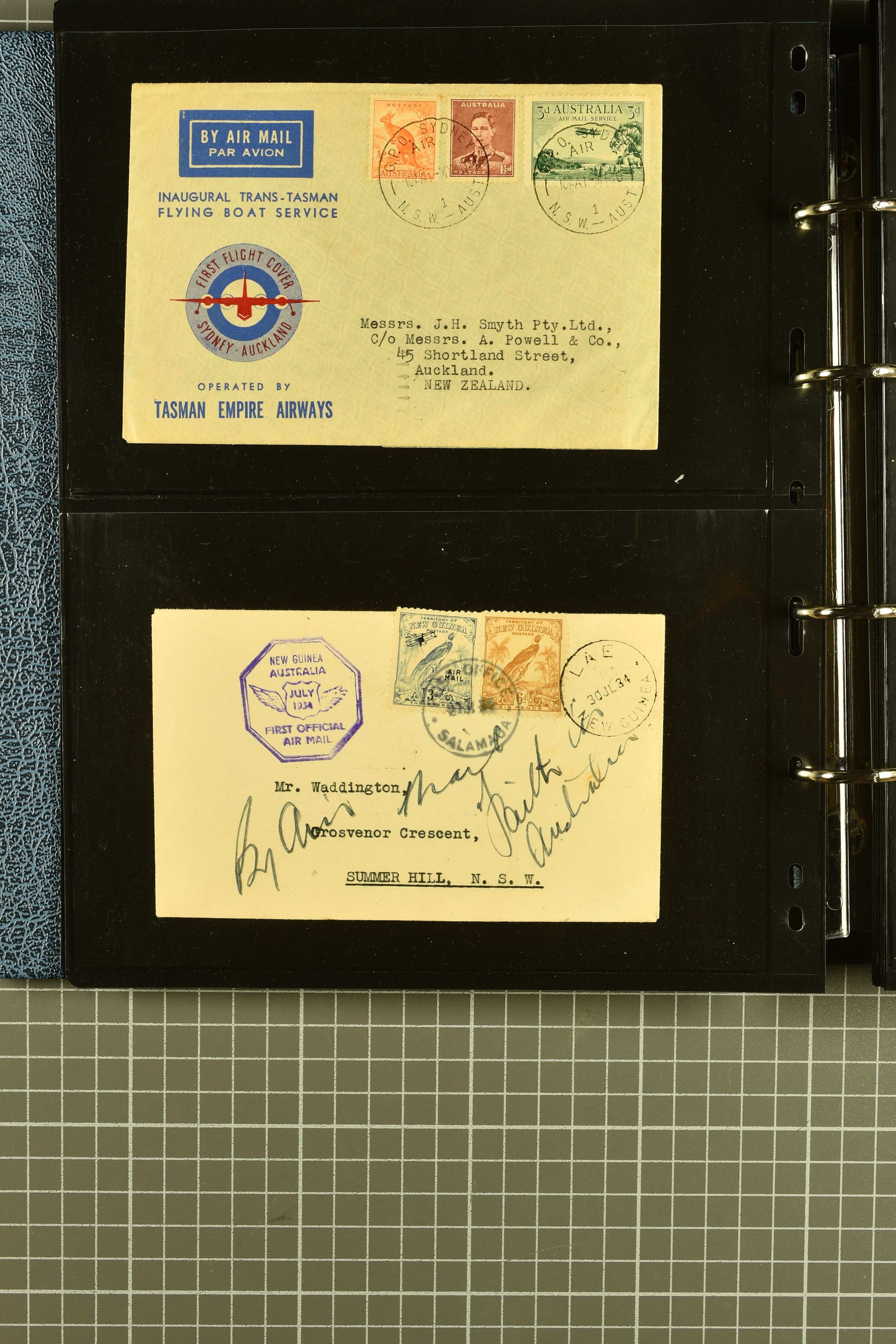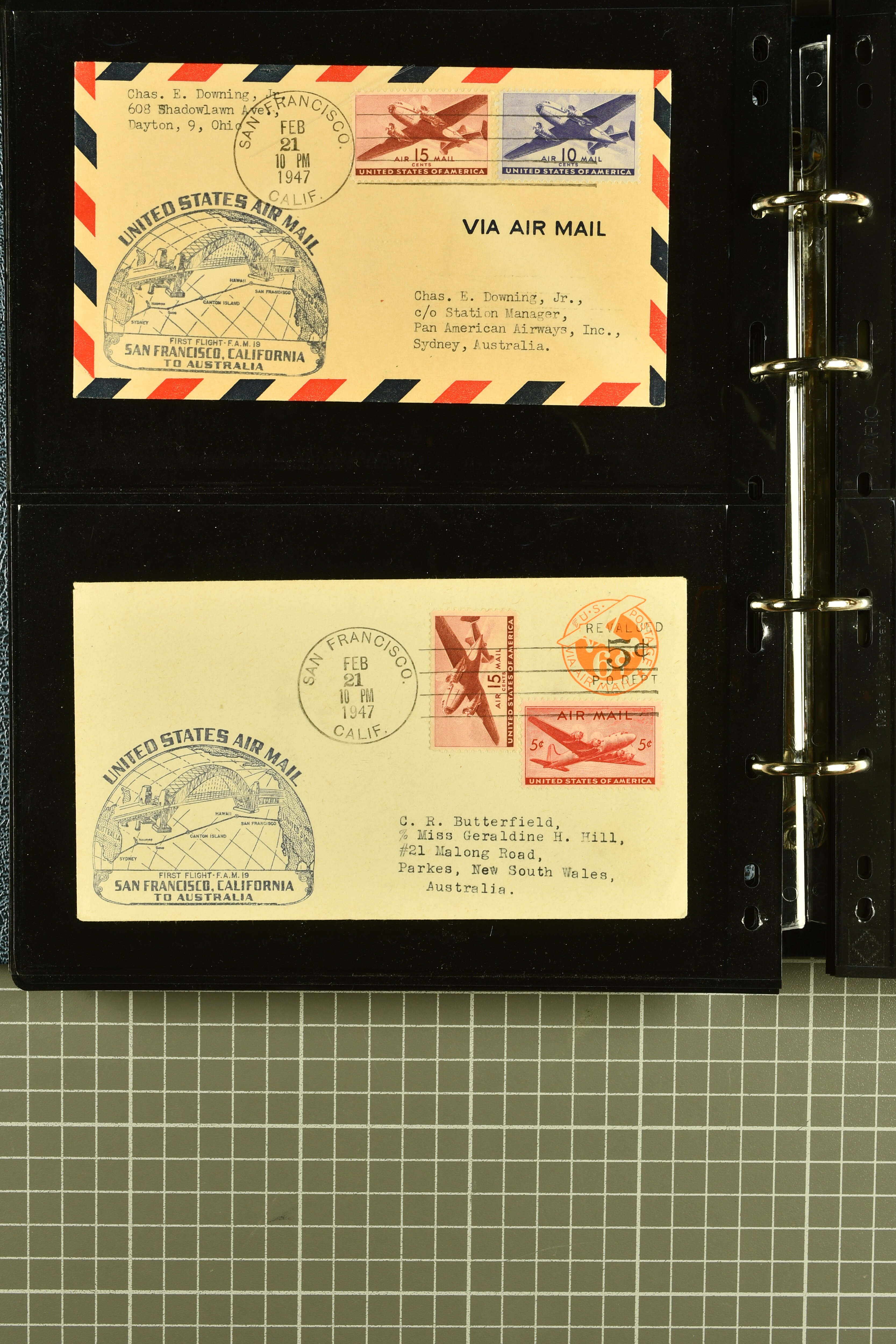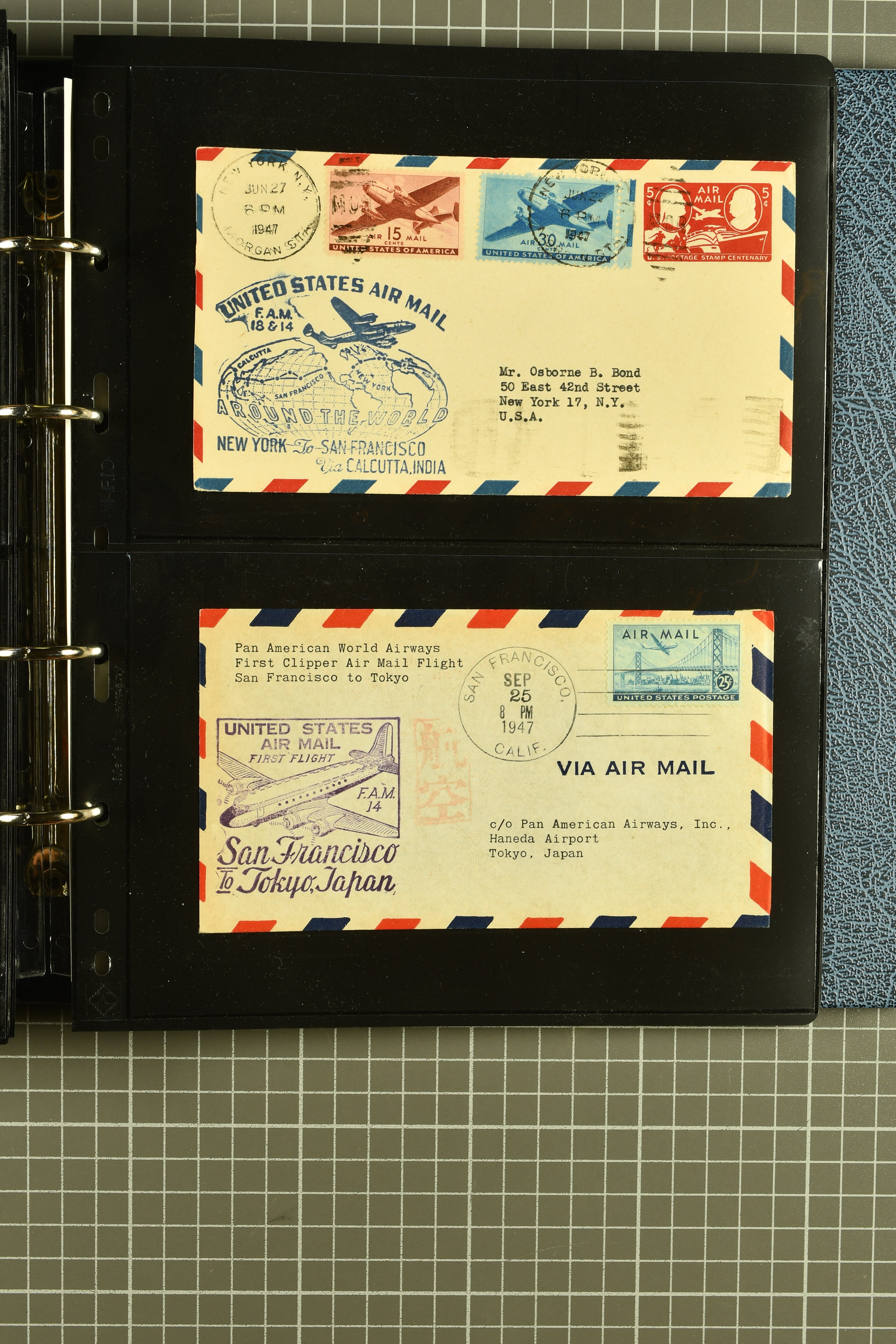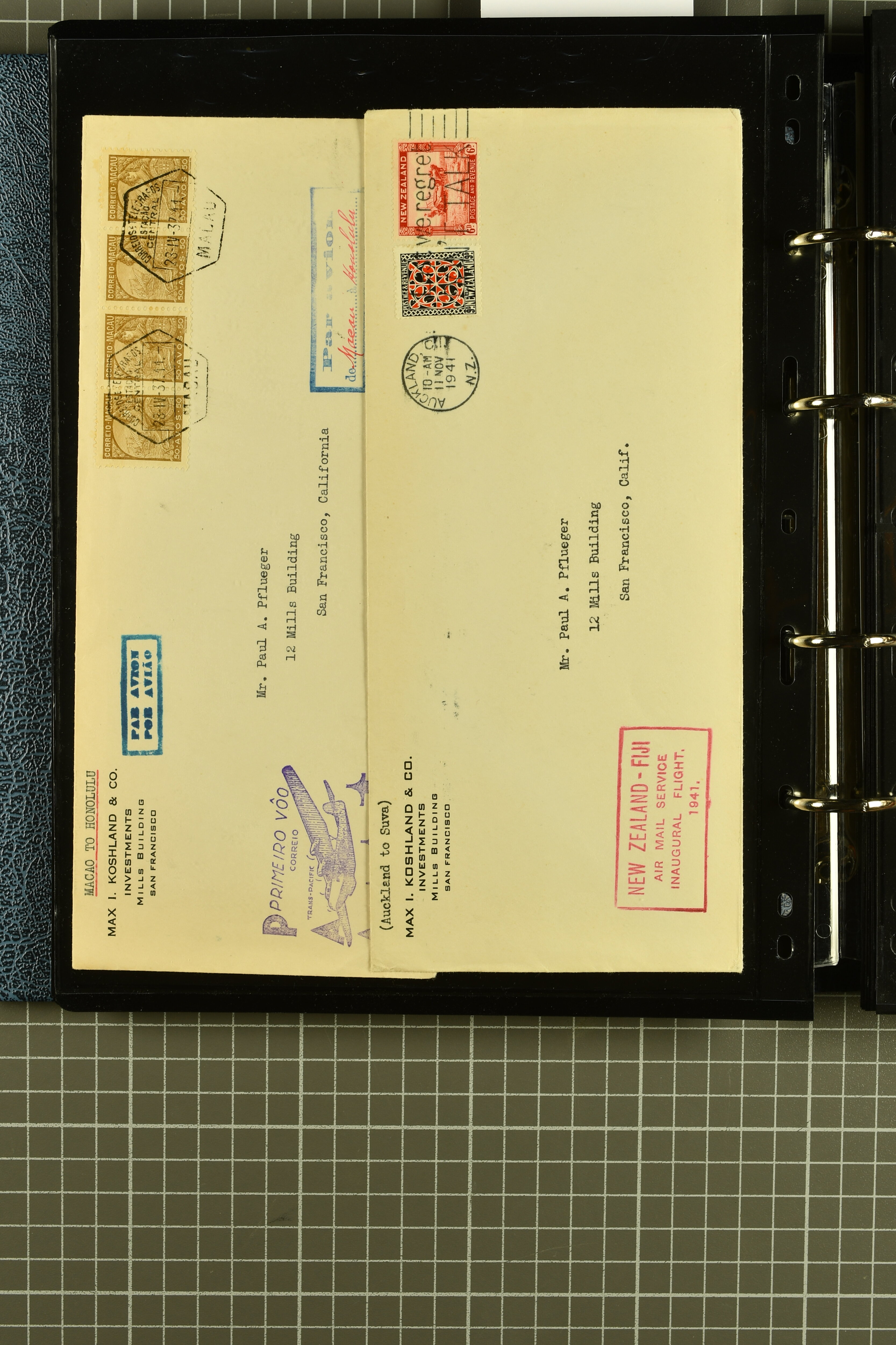 1496 cover imageTrans-Pacific Airmail 1938/44: Lot 55 airmail covers, incl. six commercial airmail covers carried by Clipper through the FAM 14 system, among them a rare commercial air mail usage by Naval Air Transport Service NATS, which was only used for military mail, further 1933/44 First Flight Covers (16) from Australia, Papua and New Zealand as well as 33 Trans-Pacific First Flight covers, all flown under FAM 14-19-20-1 scheme (Image 1) (Image 2) (Image 3) (Image 4) (Image 5) (Image 6) (Image 7) (Image 8) (Image 9) (Image 10) (Image 11) (Image 12) (Image 13) (Image 14) (Image 15) (Image 16) (Image 17) (Image 18) (Image 19) (Image 20) (Image 21) (Image 22) (Image 23) (Image 24) (Image 25) (Image 26) (Image 27) (Image 28)