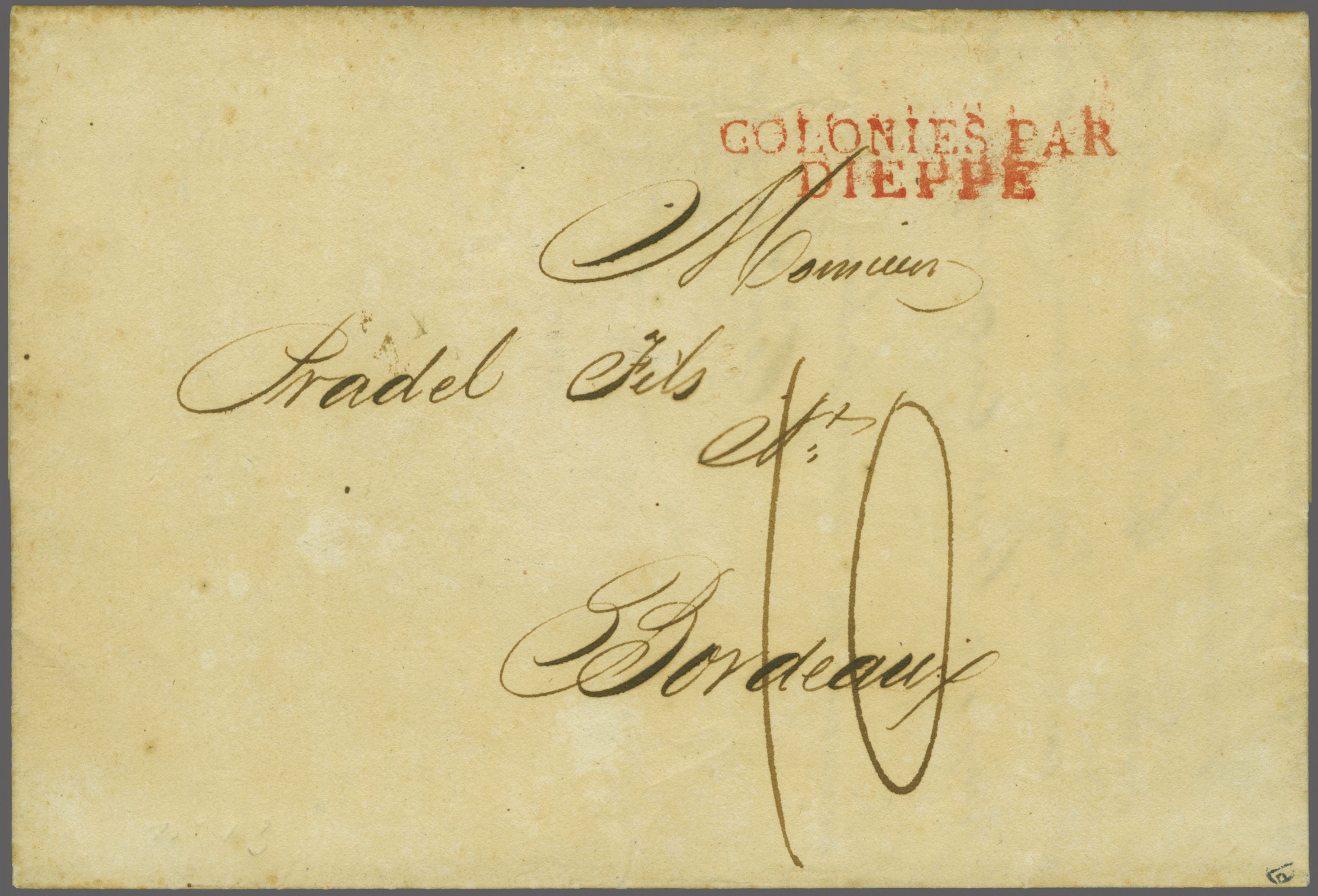 PAR / DIEPPE" in red, charged with 1 décime voie de Mer and 9 décimes for the French inland journey. Signed Vincent Pothion (Image 1)