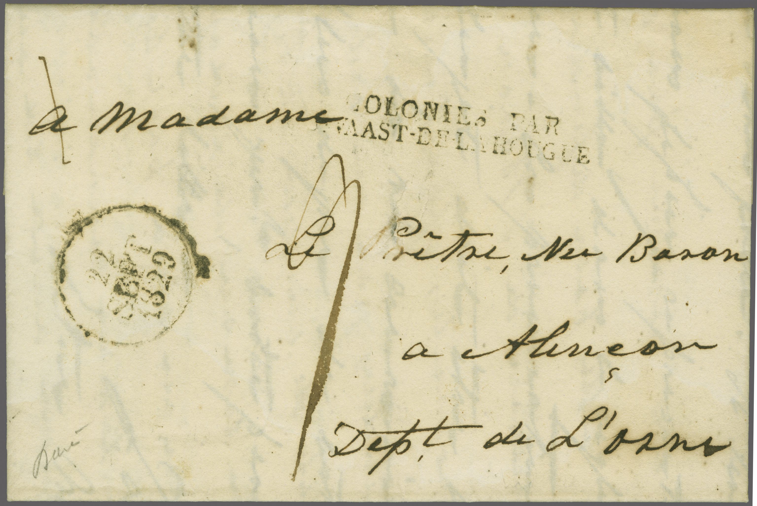Transatlantic mail between France and the USA and vice versa - Shipmail from the United States to France on private ships; 1829 (July 16): Entire letter from New Orleans to Alençon, struck on arrival with two-line "COLONIES
