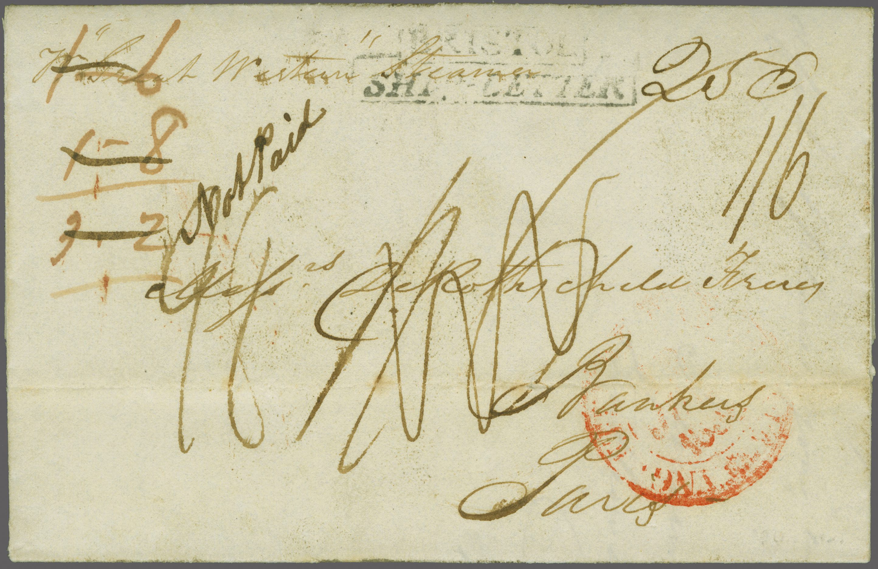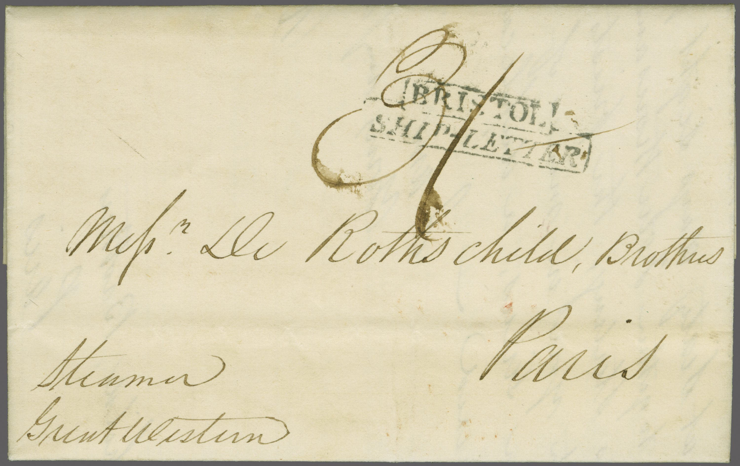 "BRISTOL / SHIP-LETTER" stepped handstamp, reverse with London transit (May 23) cds in red. This 'Great Western' journey lasted from May 7-22 between New York and Bristol (Image 1)