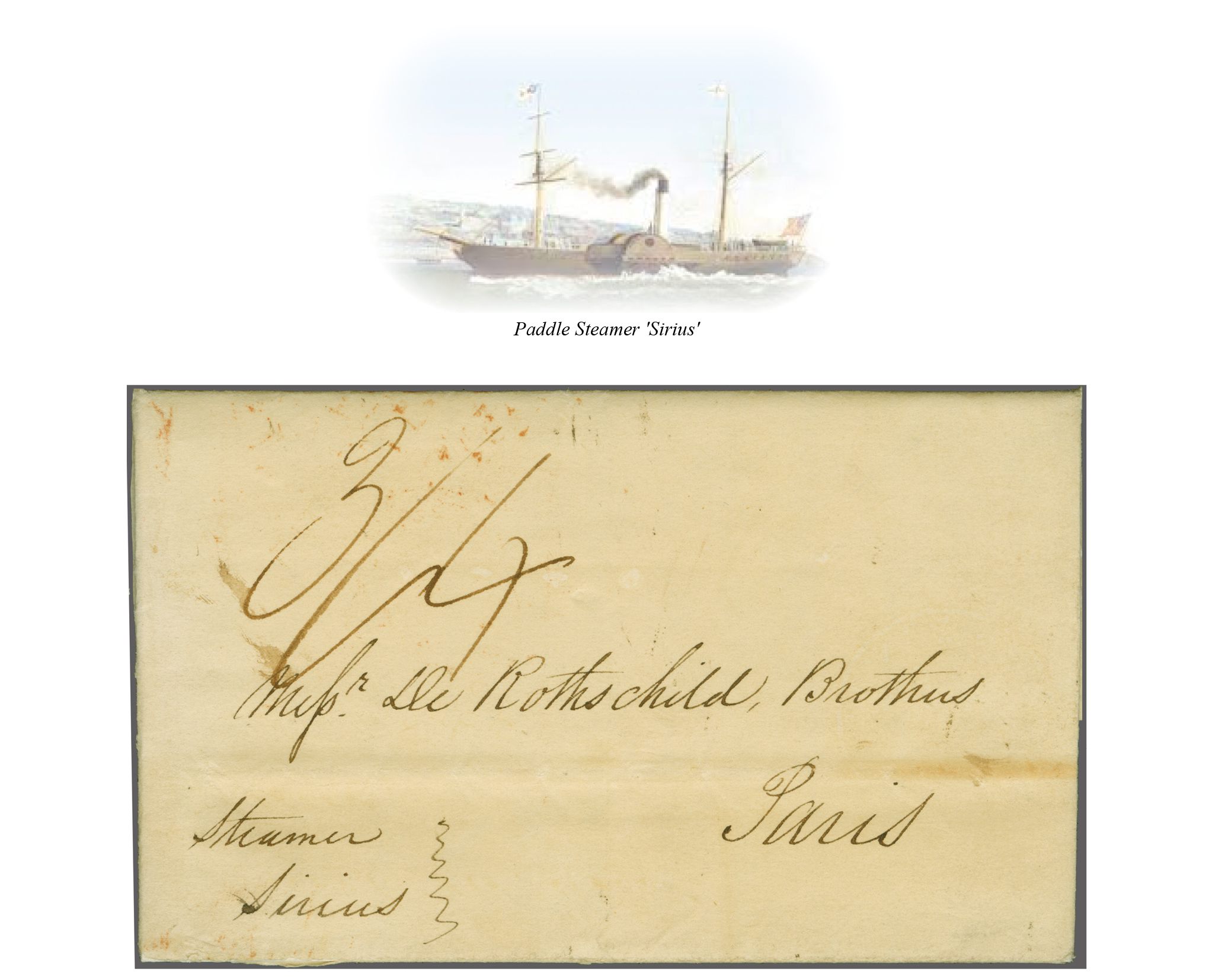 Transatlantic mail between France and the USA and vice versa - Pioneer Steamships; 1838 (April 30): Entire letter from New York to Paris with the first passage of the 'Sirius', endorsed "Steamer Sirius", struck on reverse with