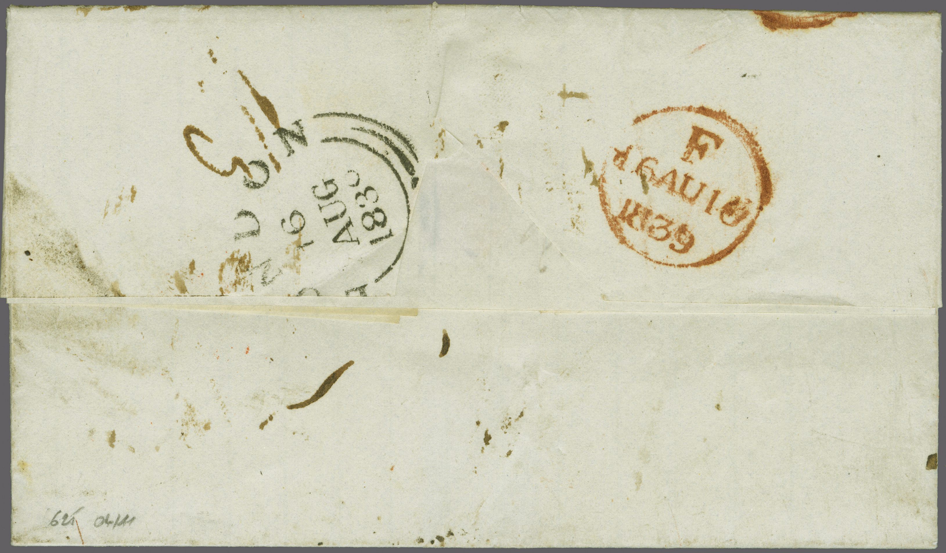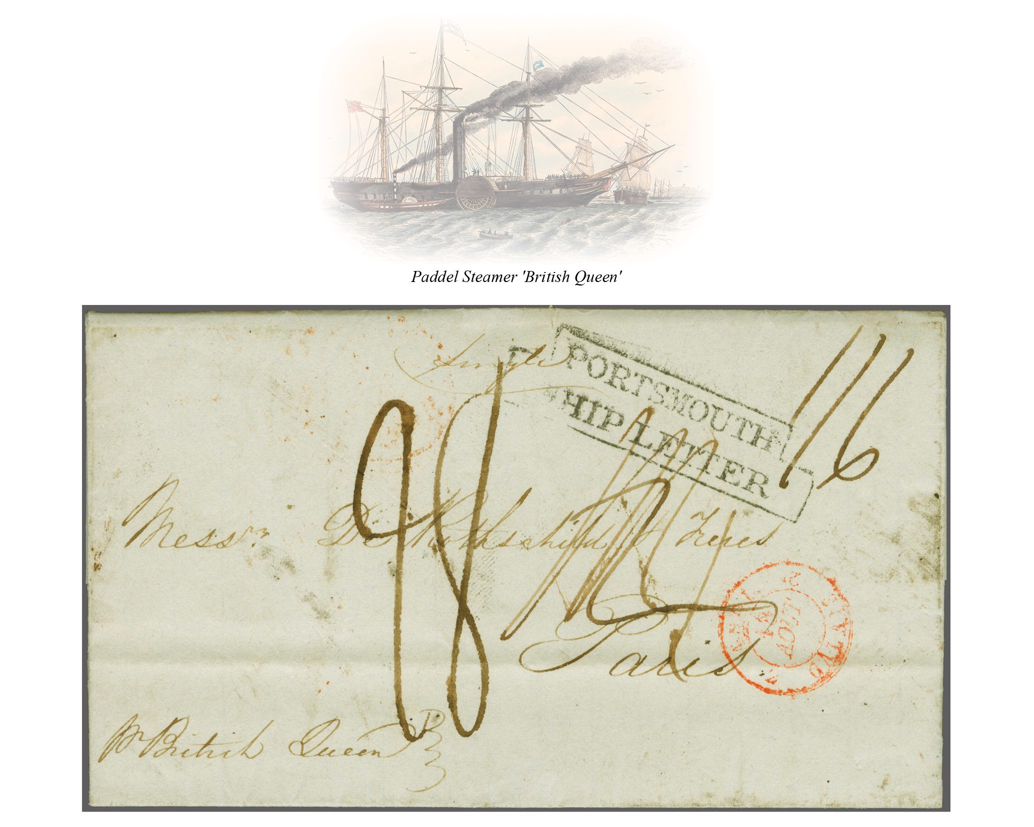 Transatlantic mail between France and the USA and vice versa - Pioneer Steamships; 1839 (Aug 1): Entire letter from New York to Paris with the first passage of the 'British Queen', endorsed "pr British Queen", struck on