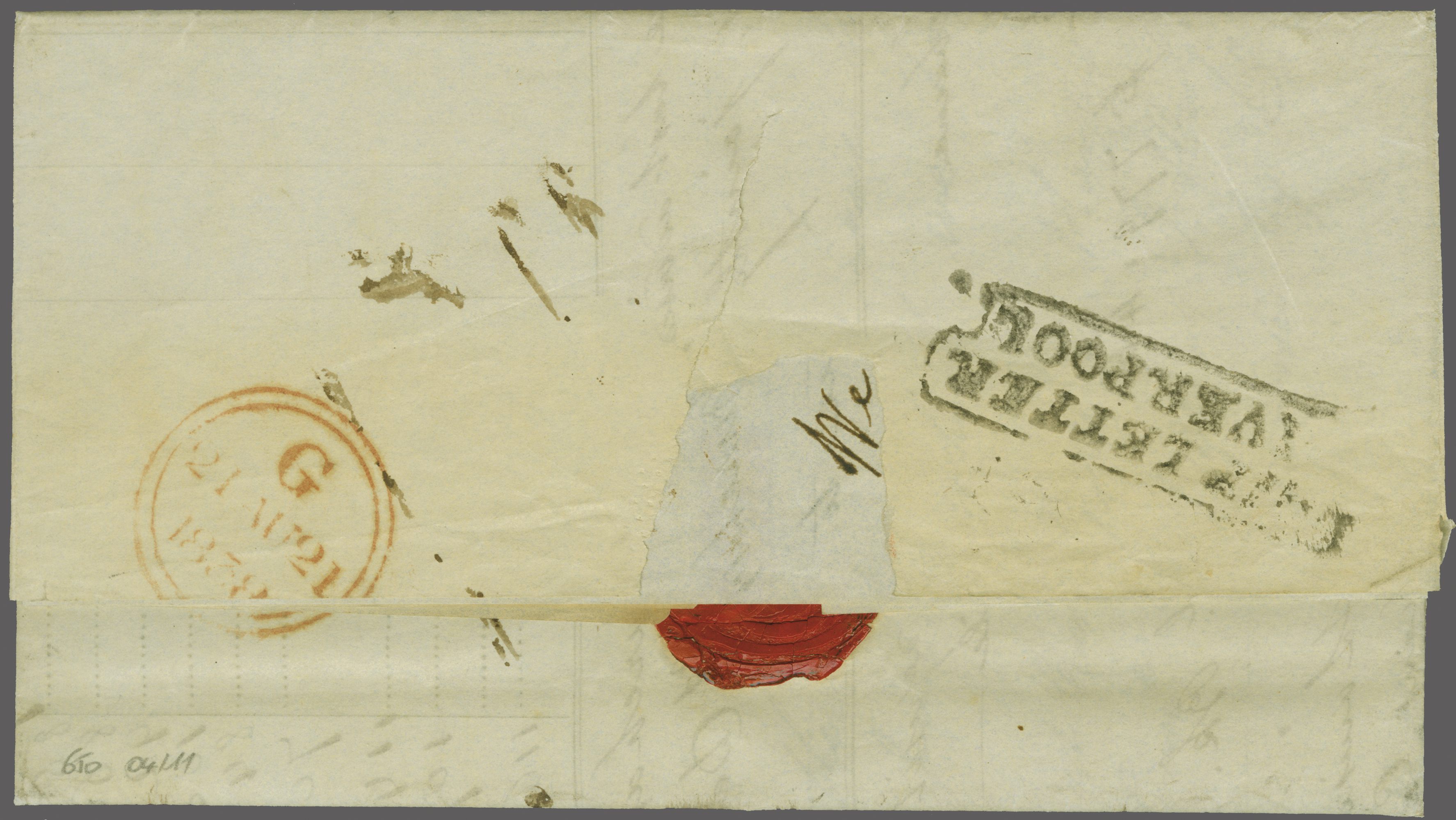 LETTER LIVERPOOL" stepped handstamp and London transit (Aug 21) cds. This 'President' journey lasted from August 4-19 between New York and Liverpool (Image