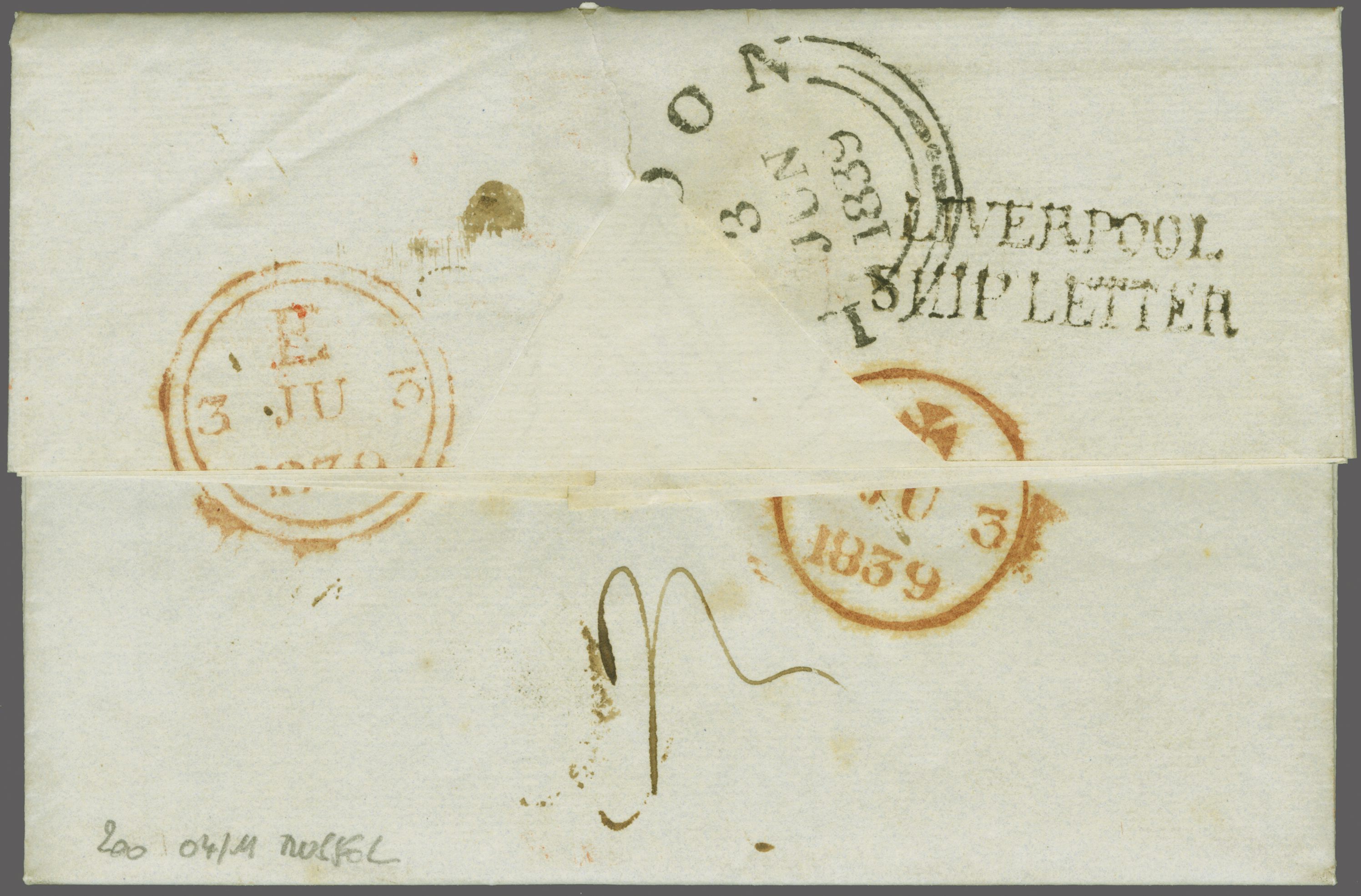 framed "SHIP LETTER FALMOUTH" handstamp and London transit (May 21) datestamp, both in red. This 'Sirius' journey lasted from May 1-18 between New York and Falmouth (Image 1)