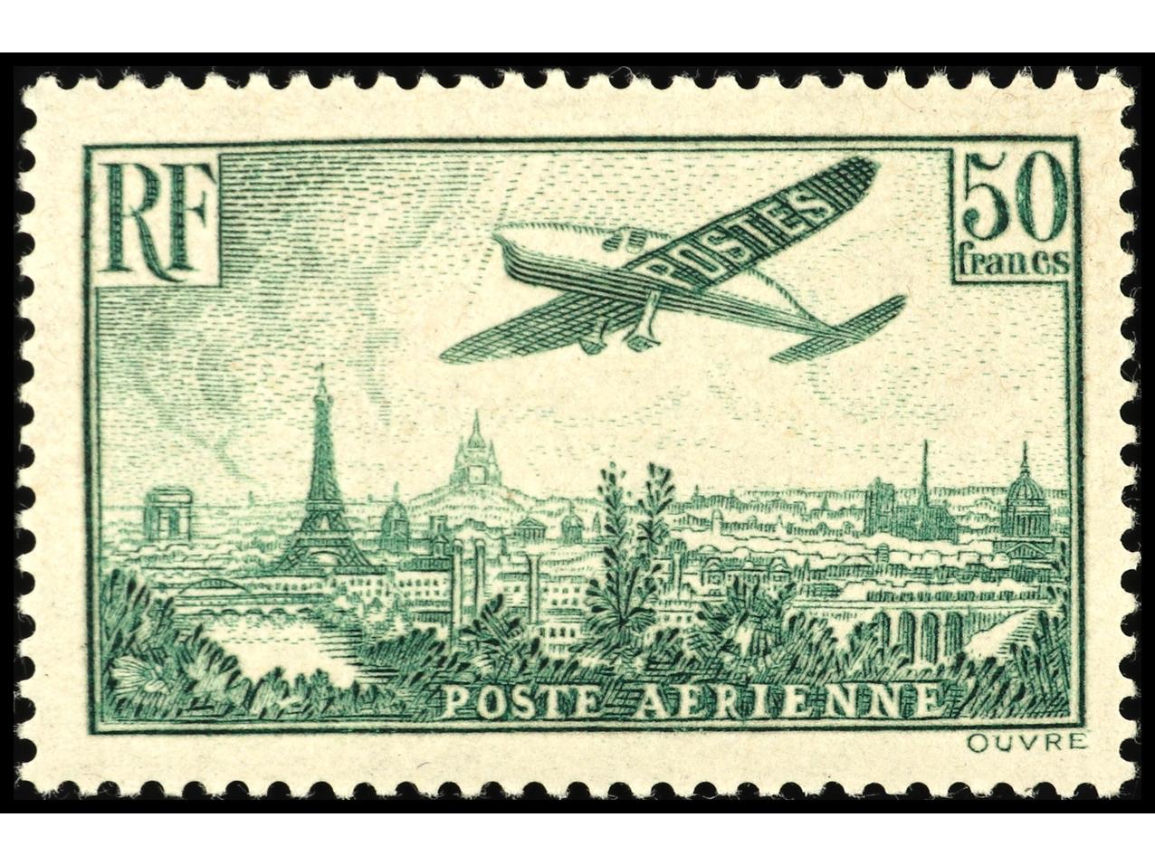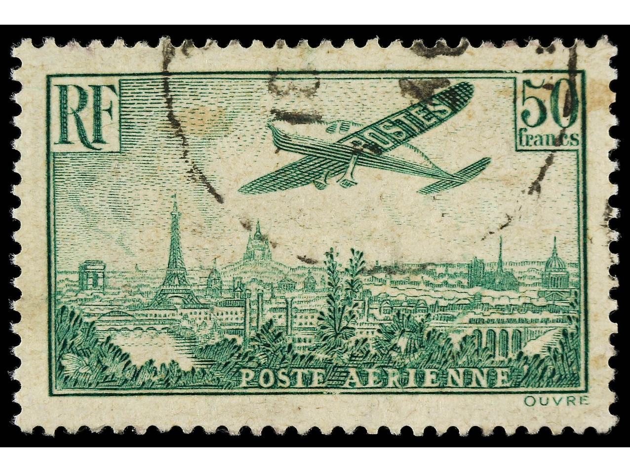 FRANCIA. SERIE COMPLETA, 7 valores. 50 fr. usado, leves sombras del tiempo. Yv.Av. 8/14. Cat. 590€. (Image1) (Image2)