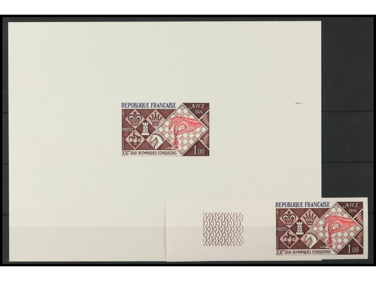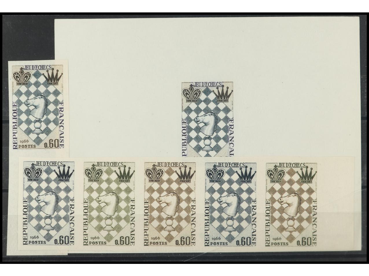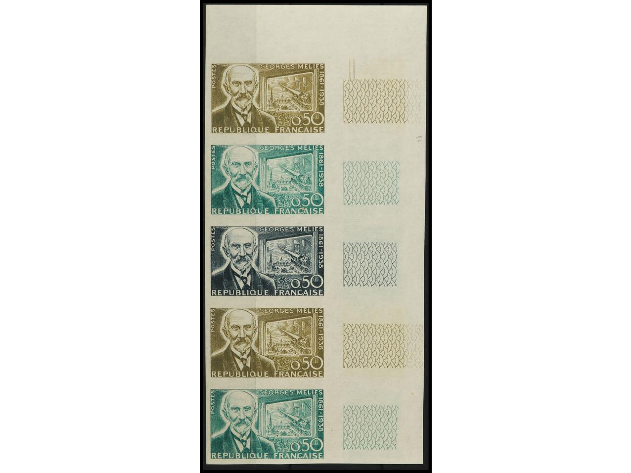 FRANCIA. Sello SIN DENTAR y PRUEBA DE LUJO. Además se añade ENSAYO DE COLOR SIN DENTAR en tira de 5 con 3 colores diferentes (no catalogado, sin valorar). OCASIÓN. Yv.**1480a y (*)1480P. Yvert.+650€. (Image1)