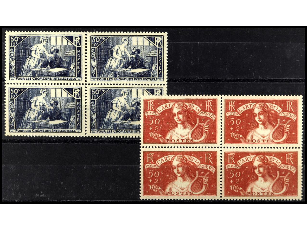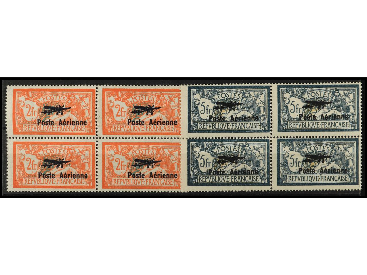 FRANCIA. SERIE COMPLETA en bloque de 4. Hay tres series con señal de fijasellos y una sin. RARA. OCASIÓN. Yv.Av.1/2. Yvert.2.450€. (Image1) (Image2)