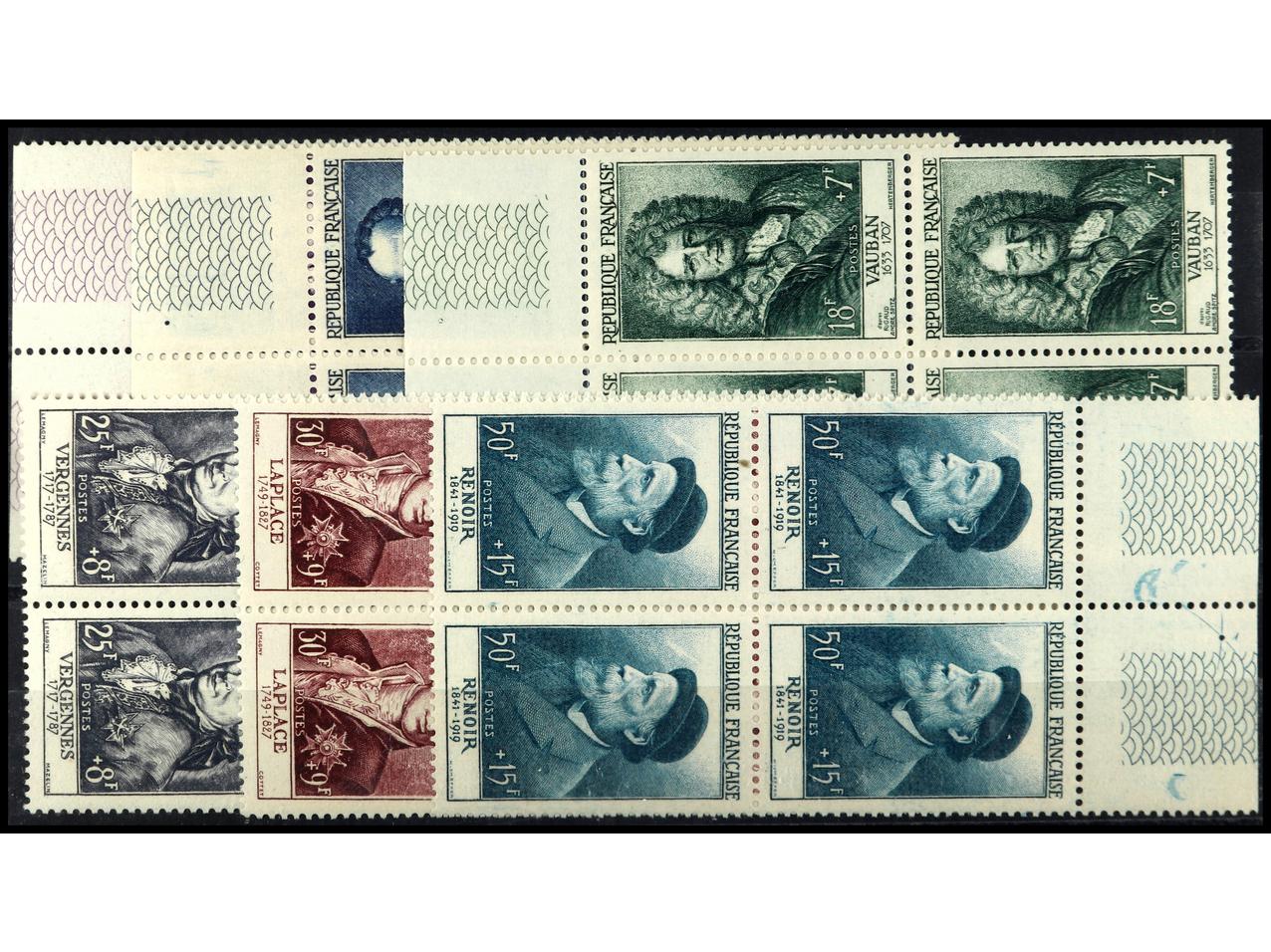 FRANCIA. 50 SERIES COMPLETAS en bloques. En general buena calidad. A EXAMINAR. Ed.565/6 (50). Cat. 1.300€.