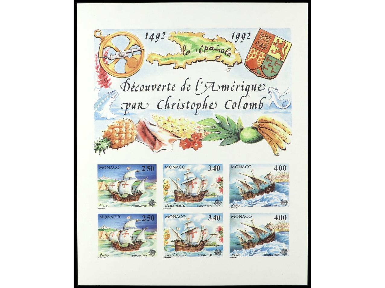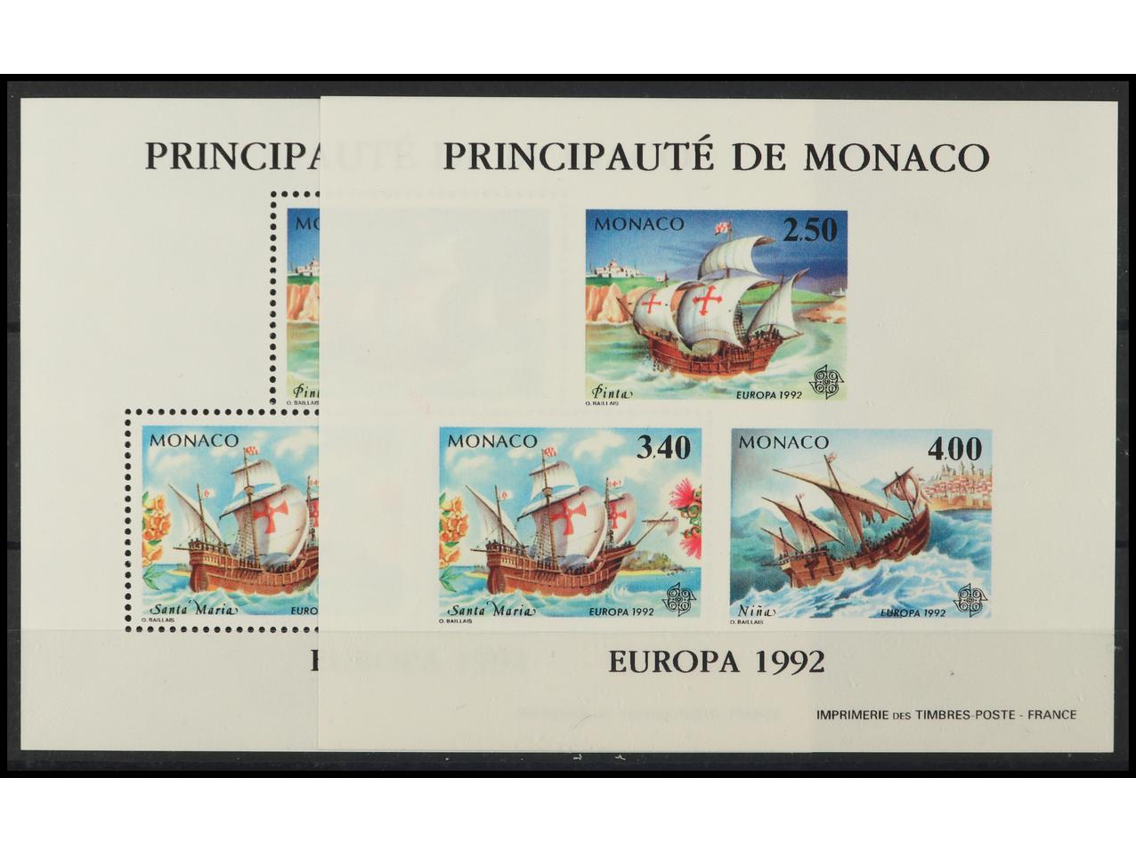 MONACO. DESCUBRIMIENTO. 2 HB. SIN DENTAR (una BLOQUES ESPECIALES). LUJO. Yv.HB.57a y BE.19a. Yvert.580€. (Image1) (Image2)