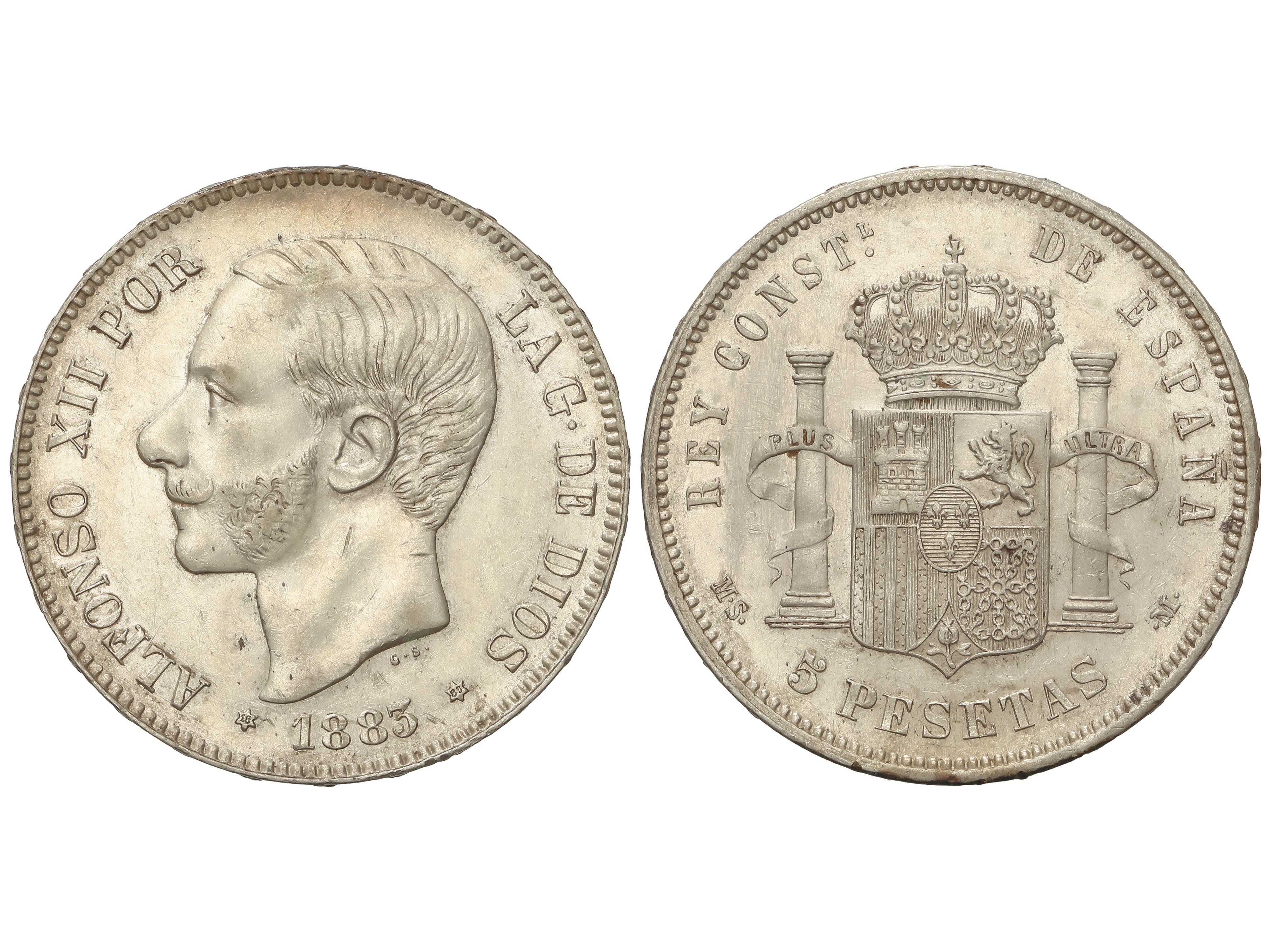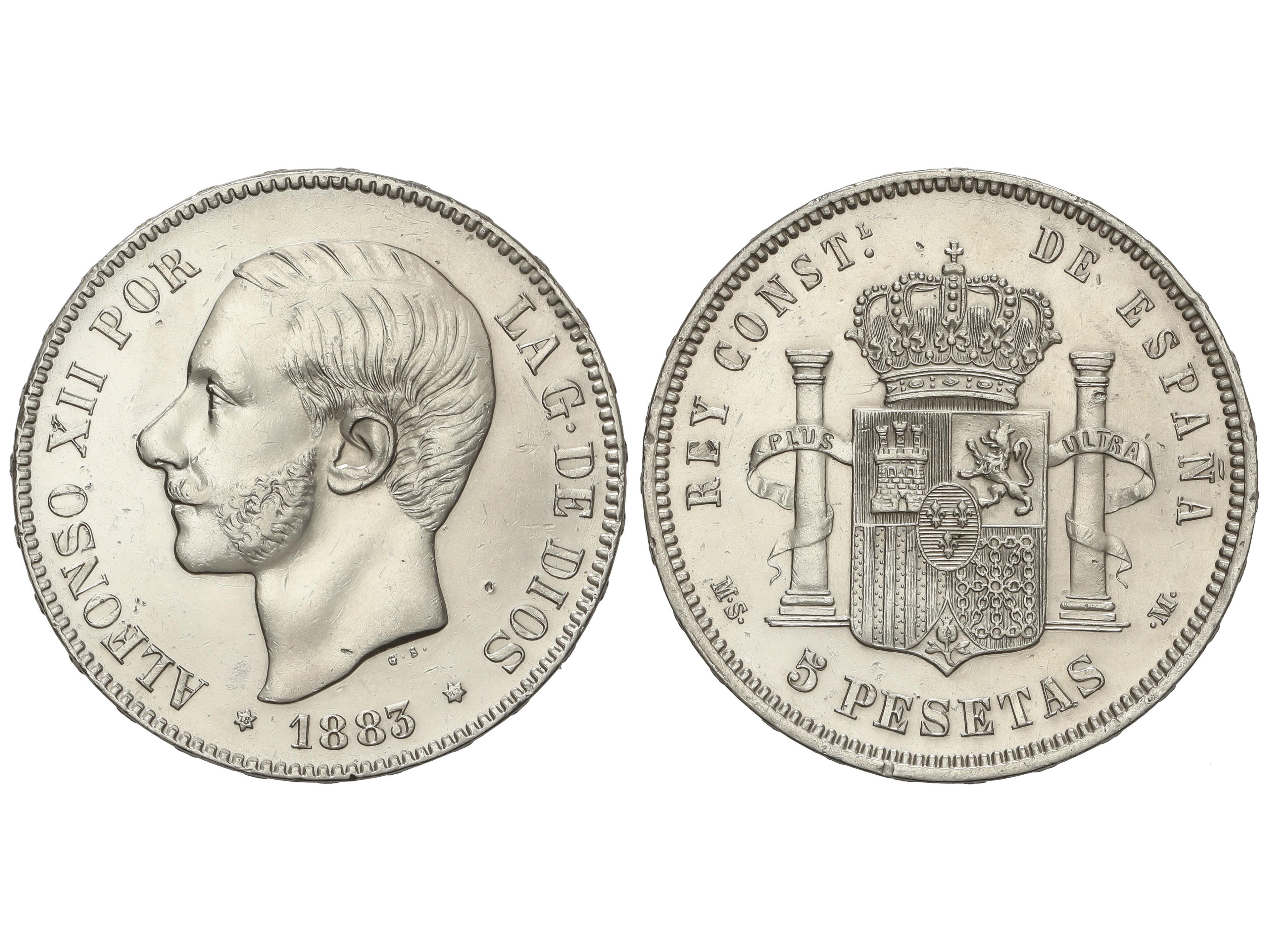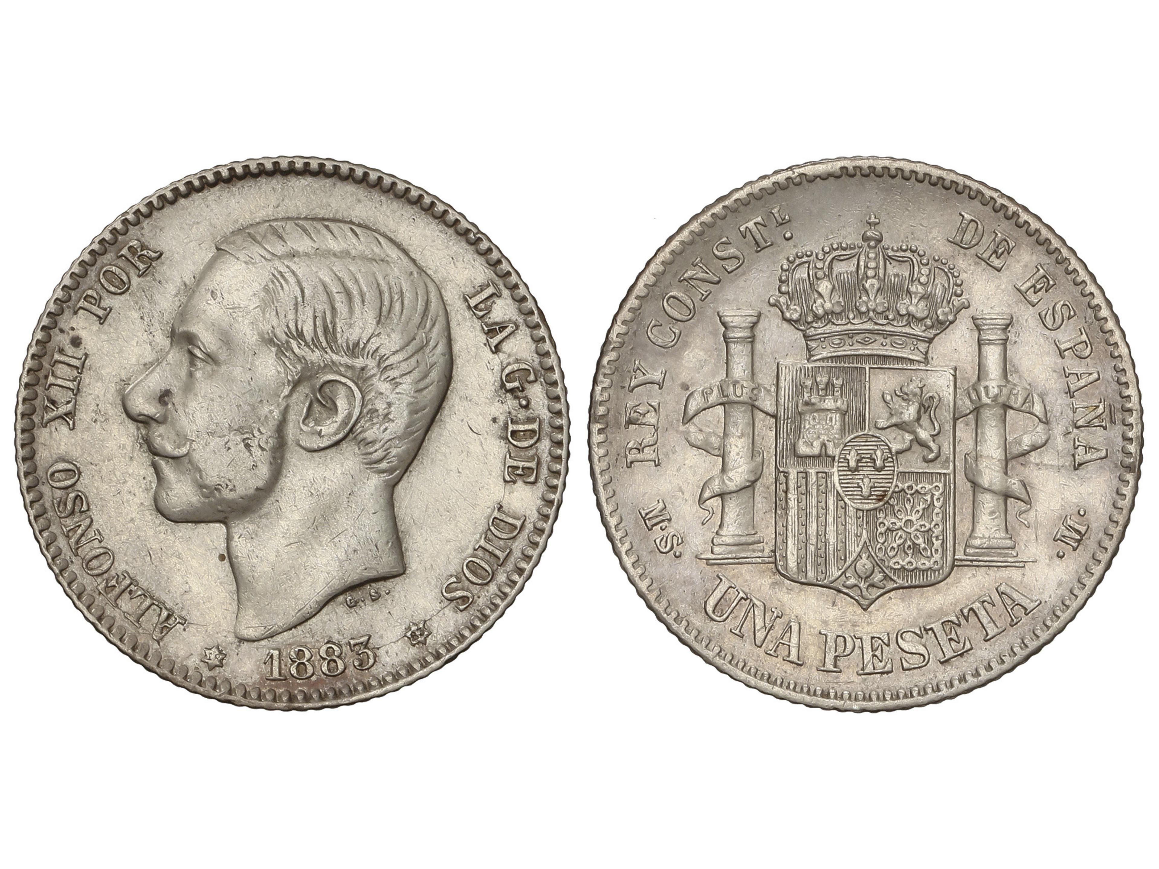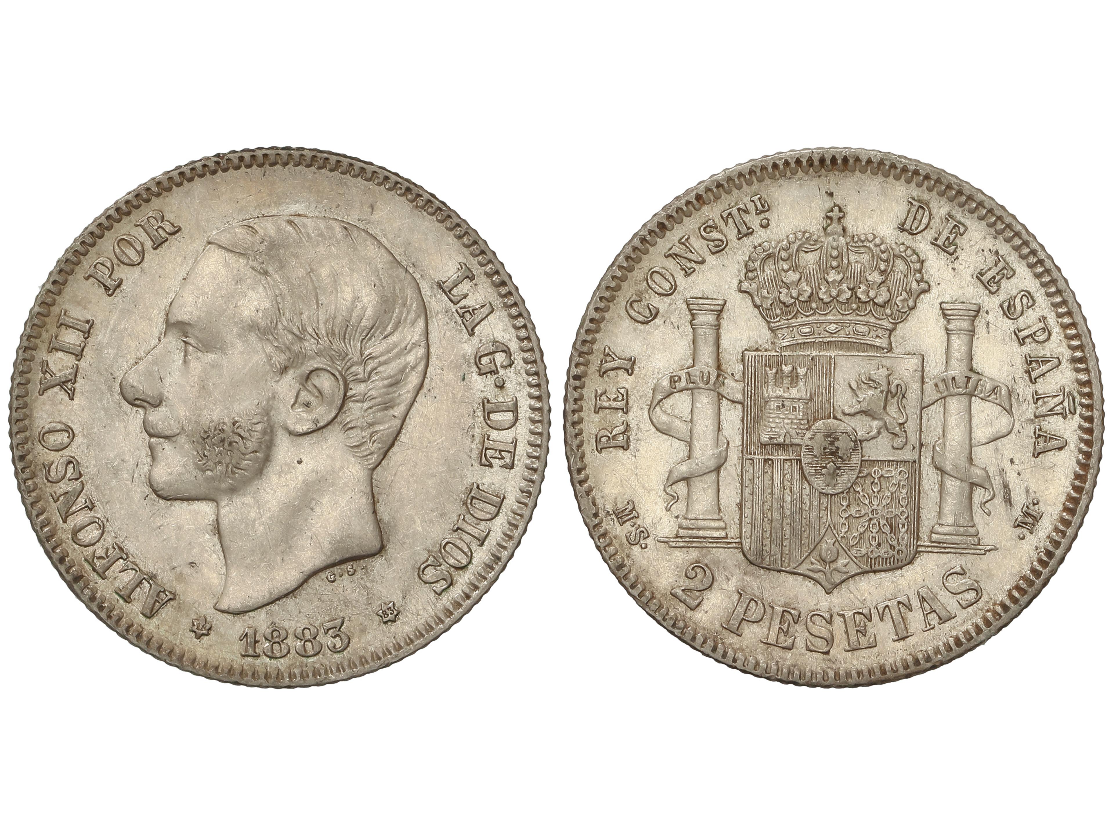 Pesetas. 1883 (*18-83). M.S.-M. (Golpecitos). AC-55. EBC-. (Image1)