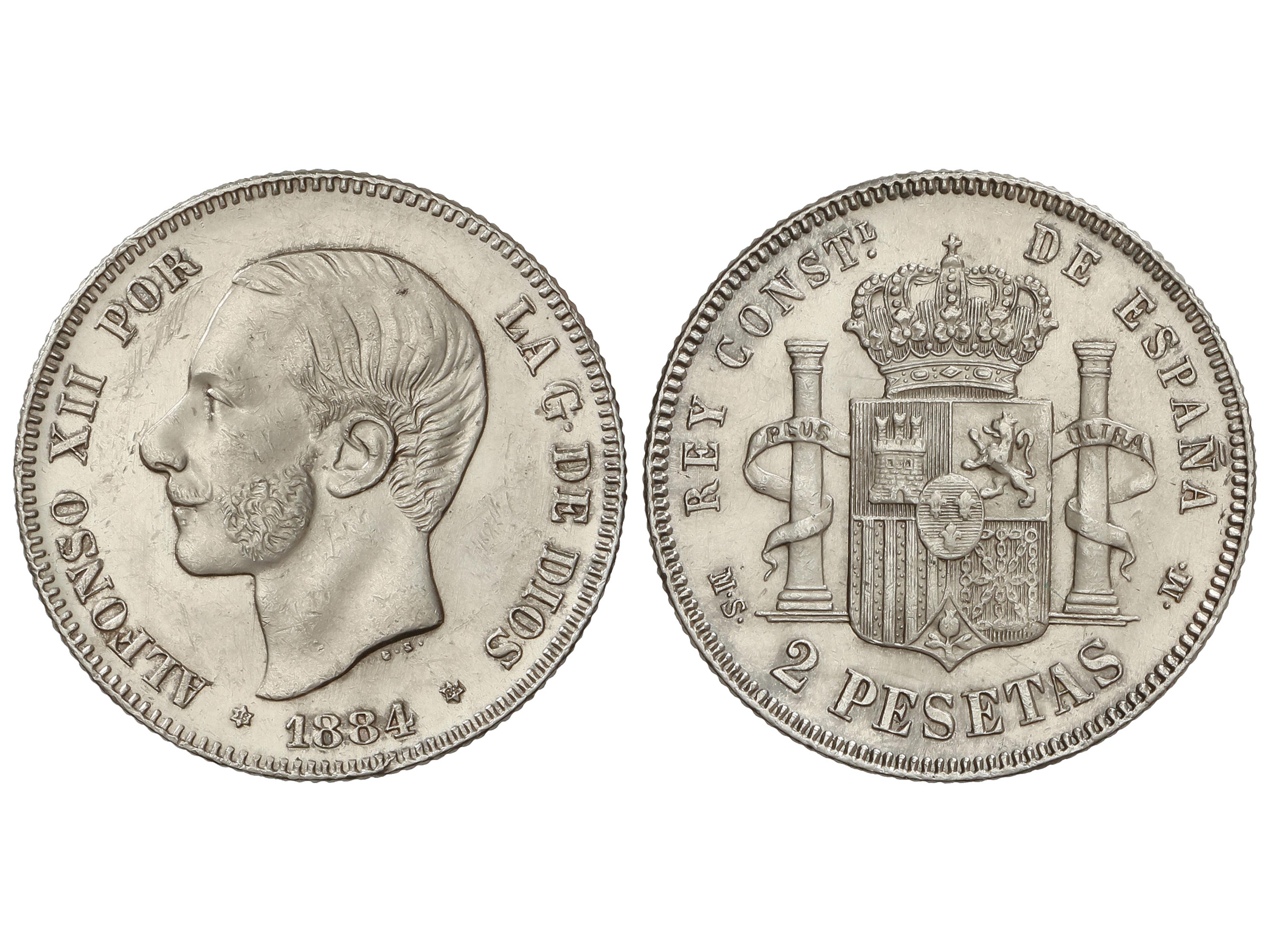 Pesetas. 1884 (*18-84). M.S.-M. (Limpiada, golpecitos). AC-34. EBC-. (Image1)