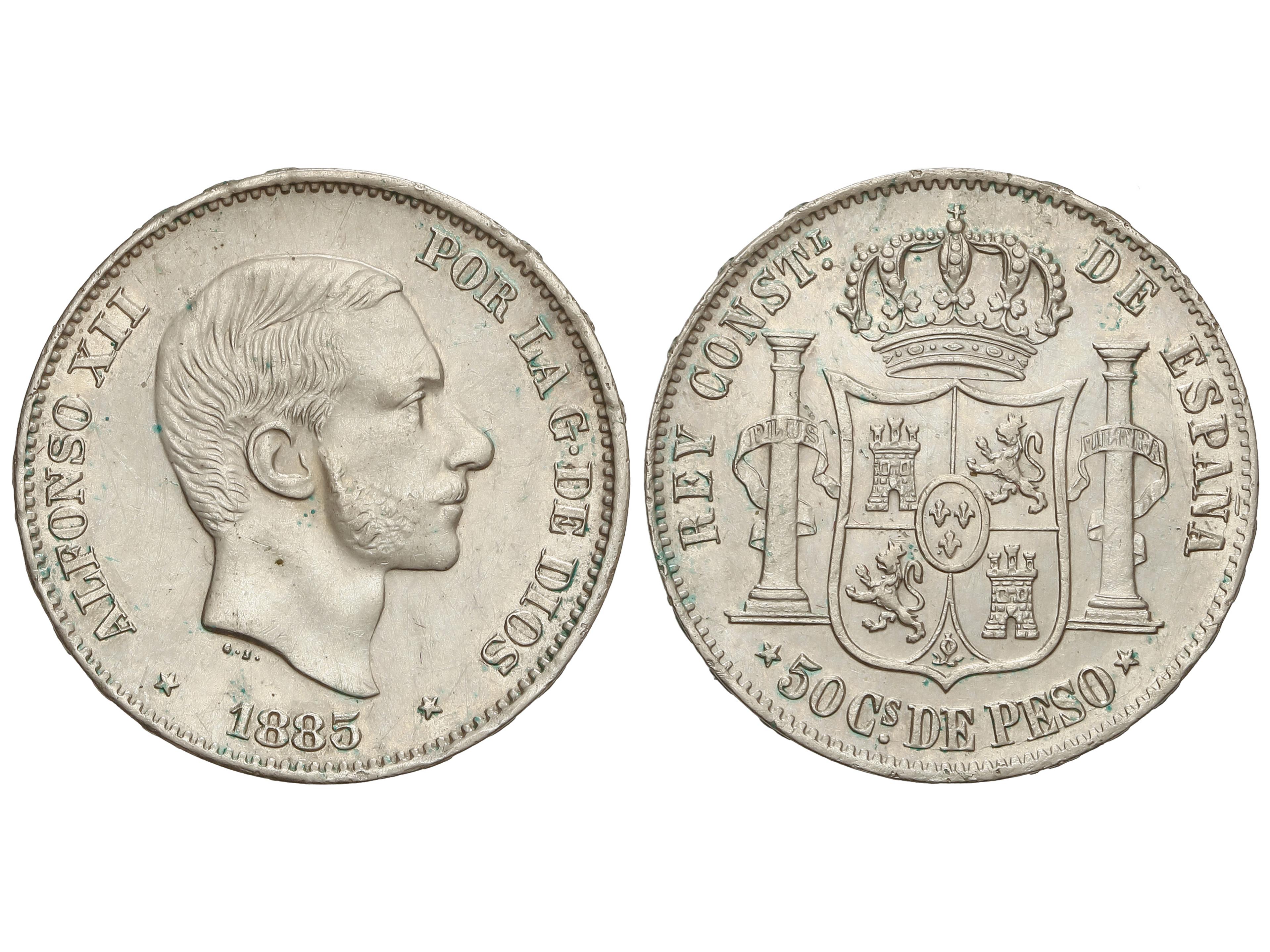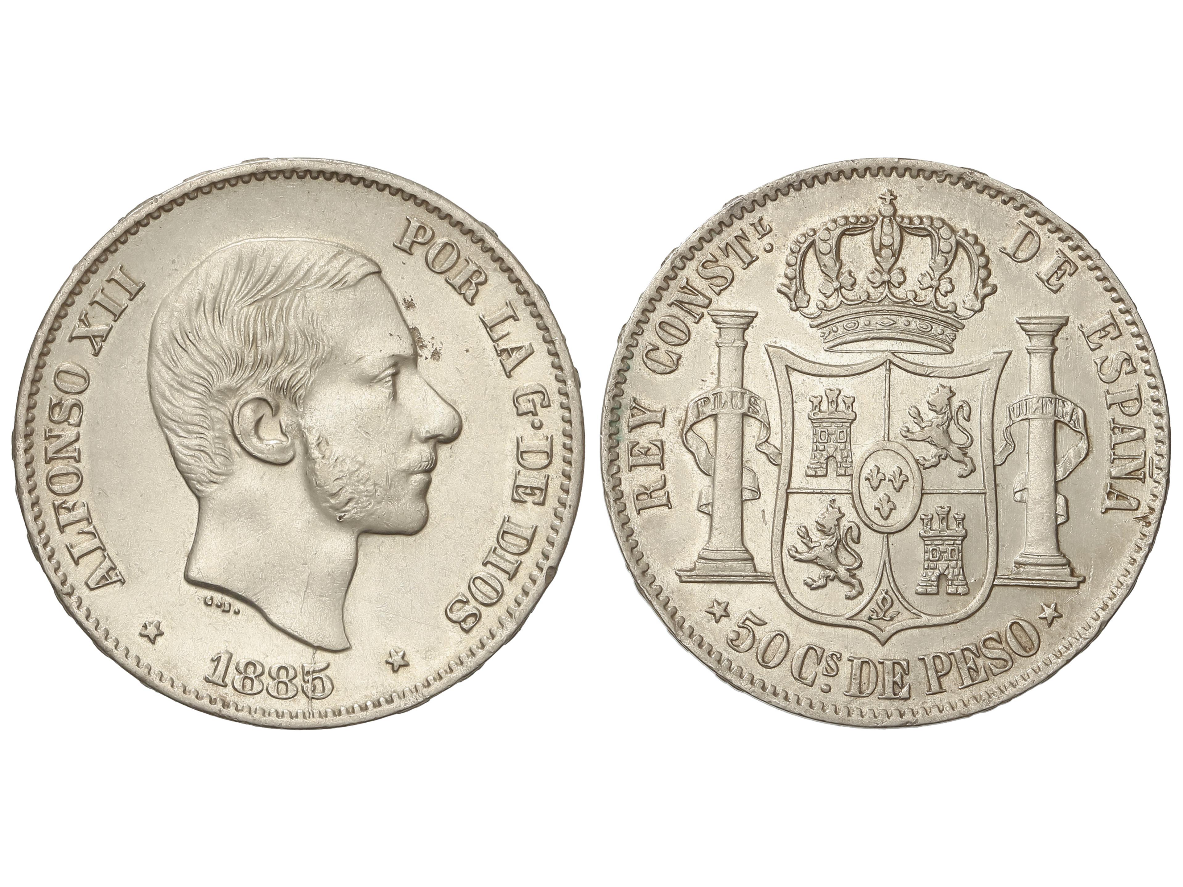 50 Centavos de Peso. 1885. MANILA. AC-124. EBC-. (Image1)