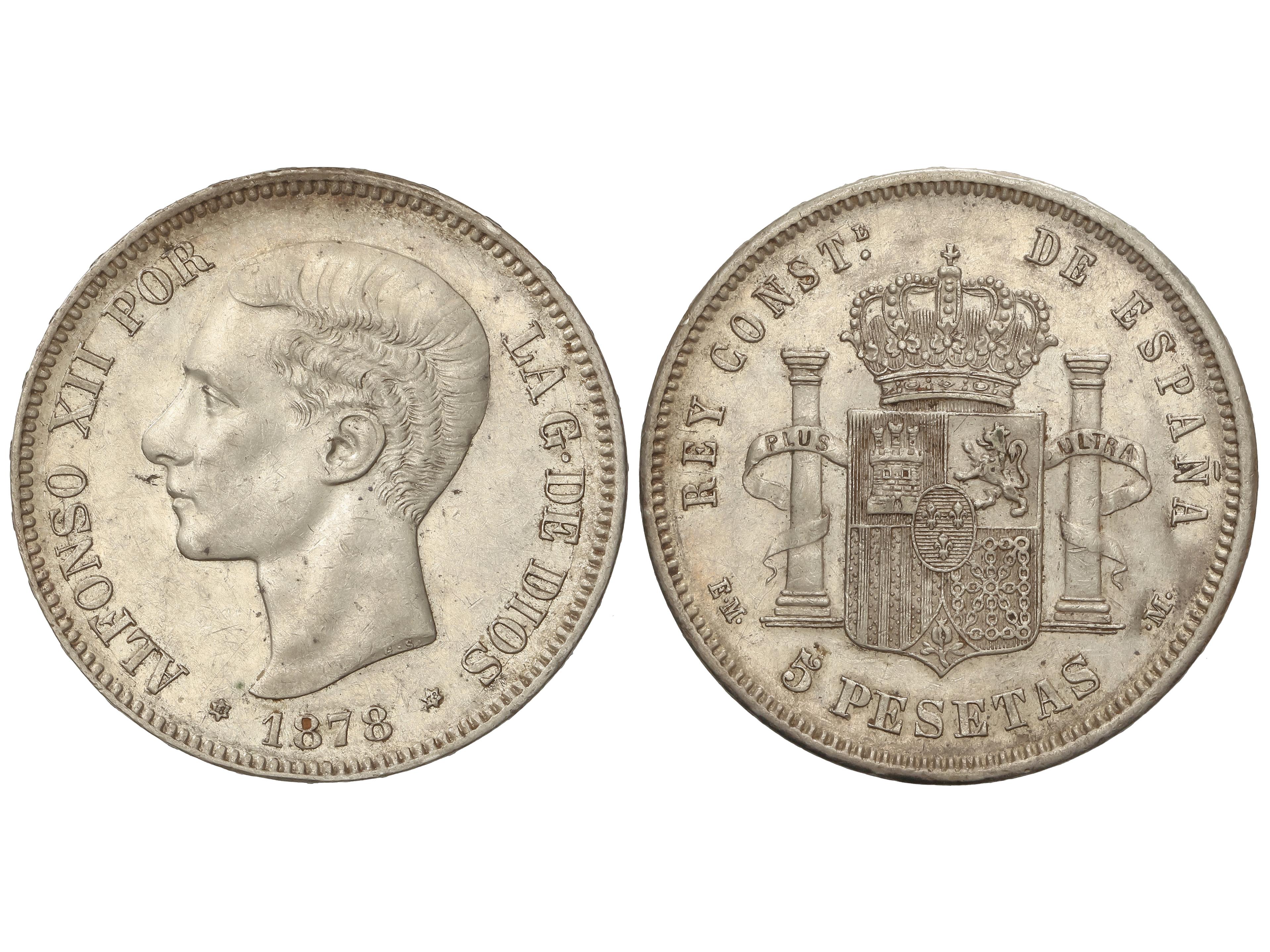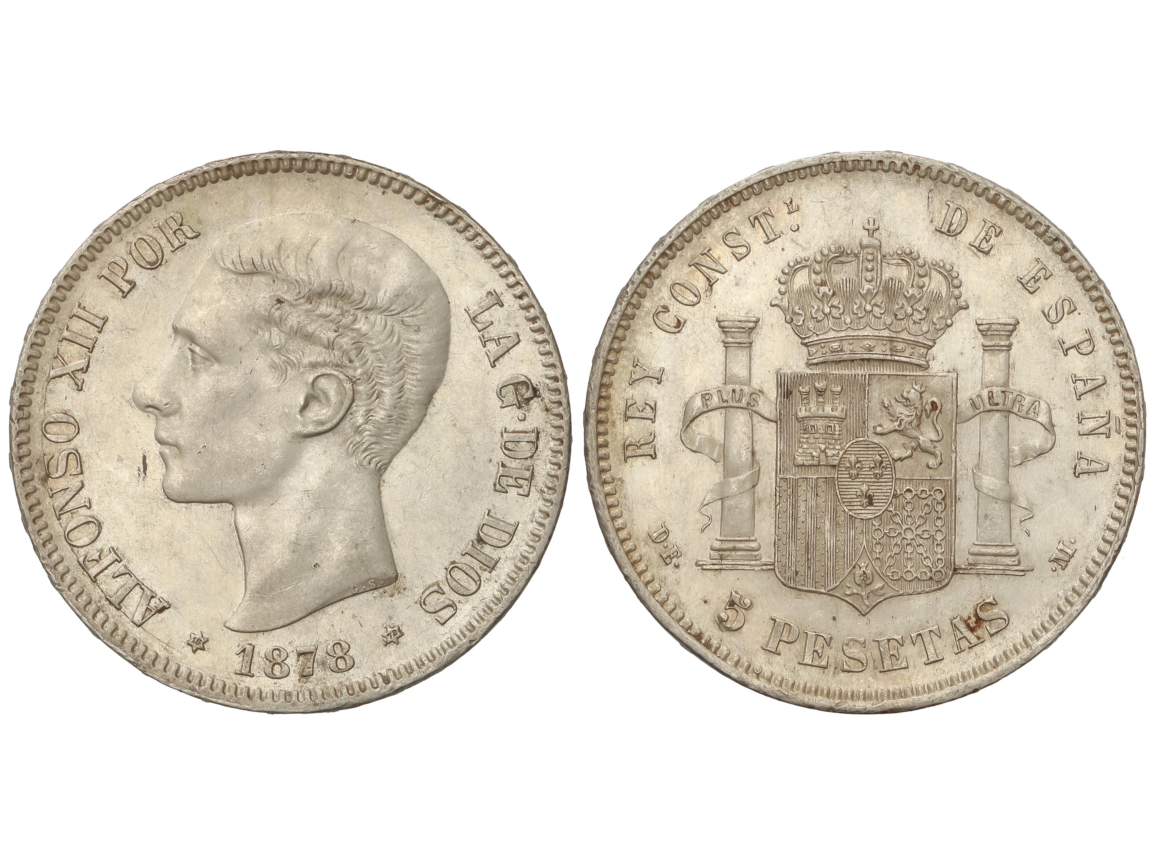 Pesetas. 1878 (*18-78). D.E.-M. Restos de brillo. AC-39. (EBC-). (Image1)