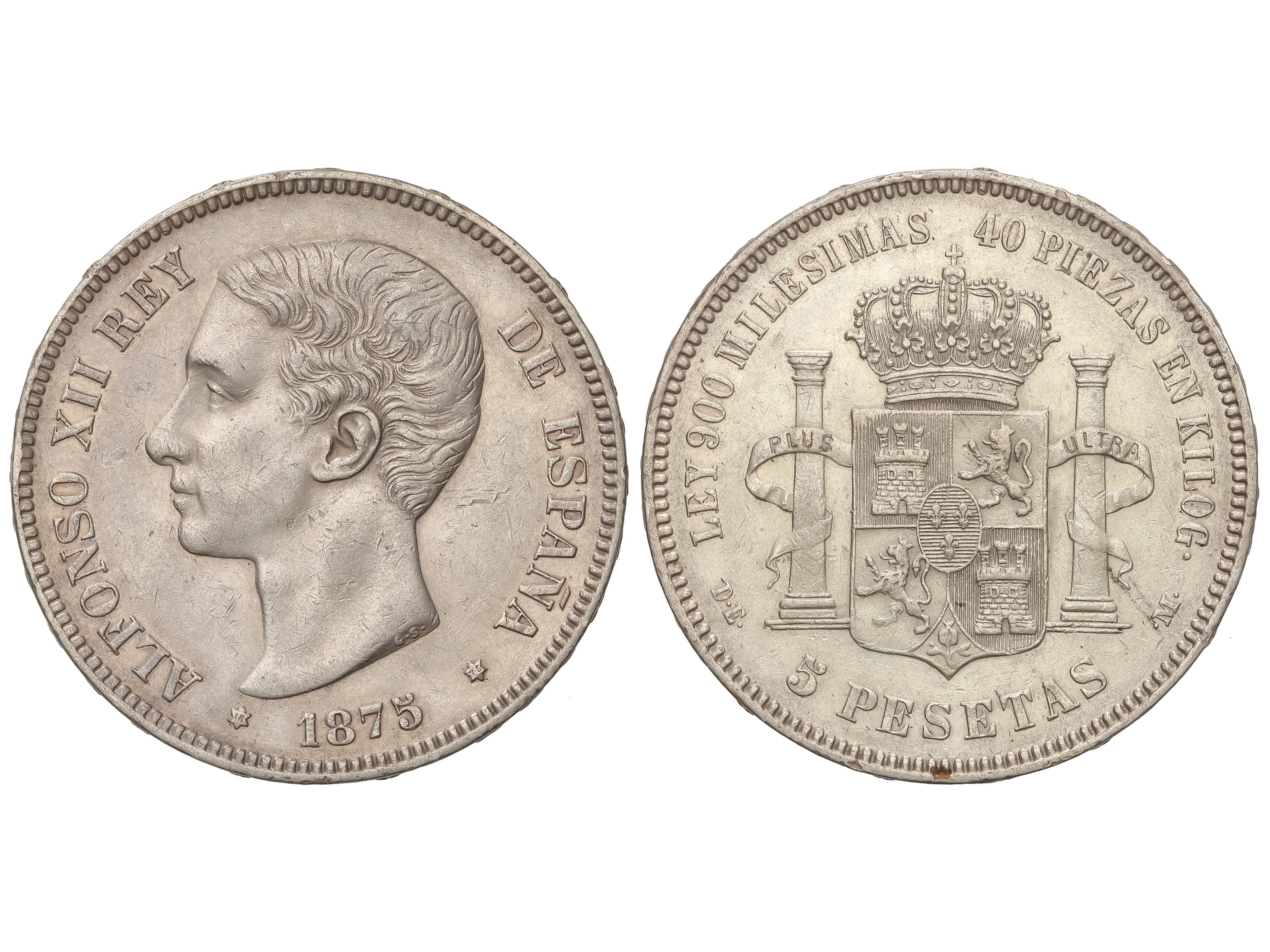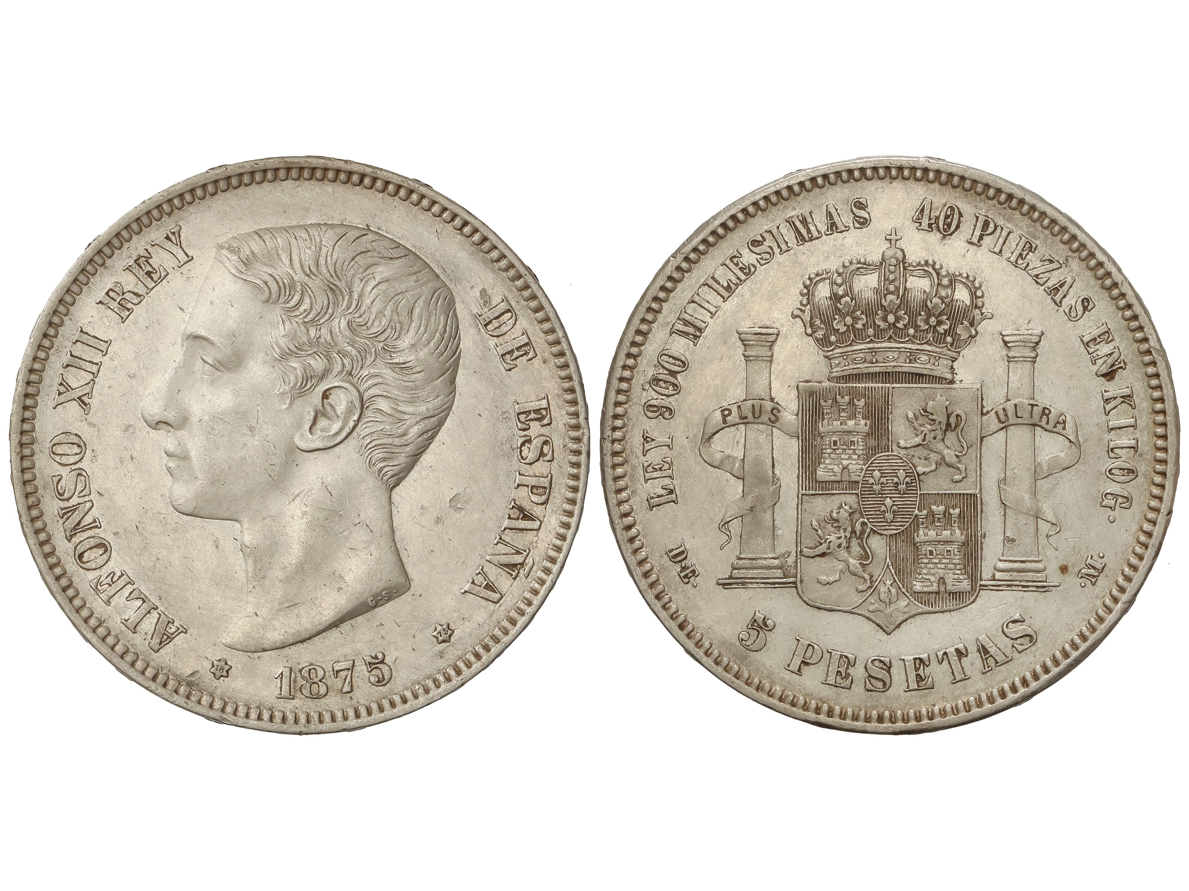 Pesetas. 1875 (*18-75). D.E.-M. AC-35. EBC-/MBC+. (Image1)