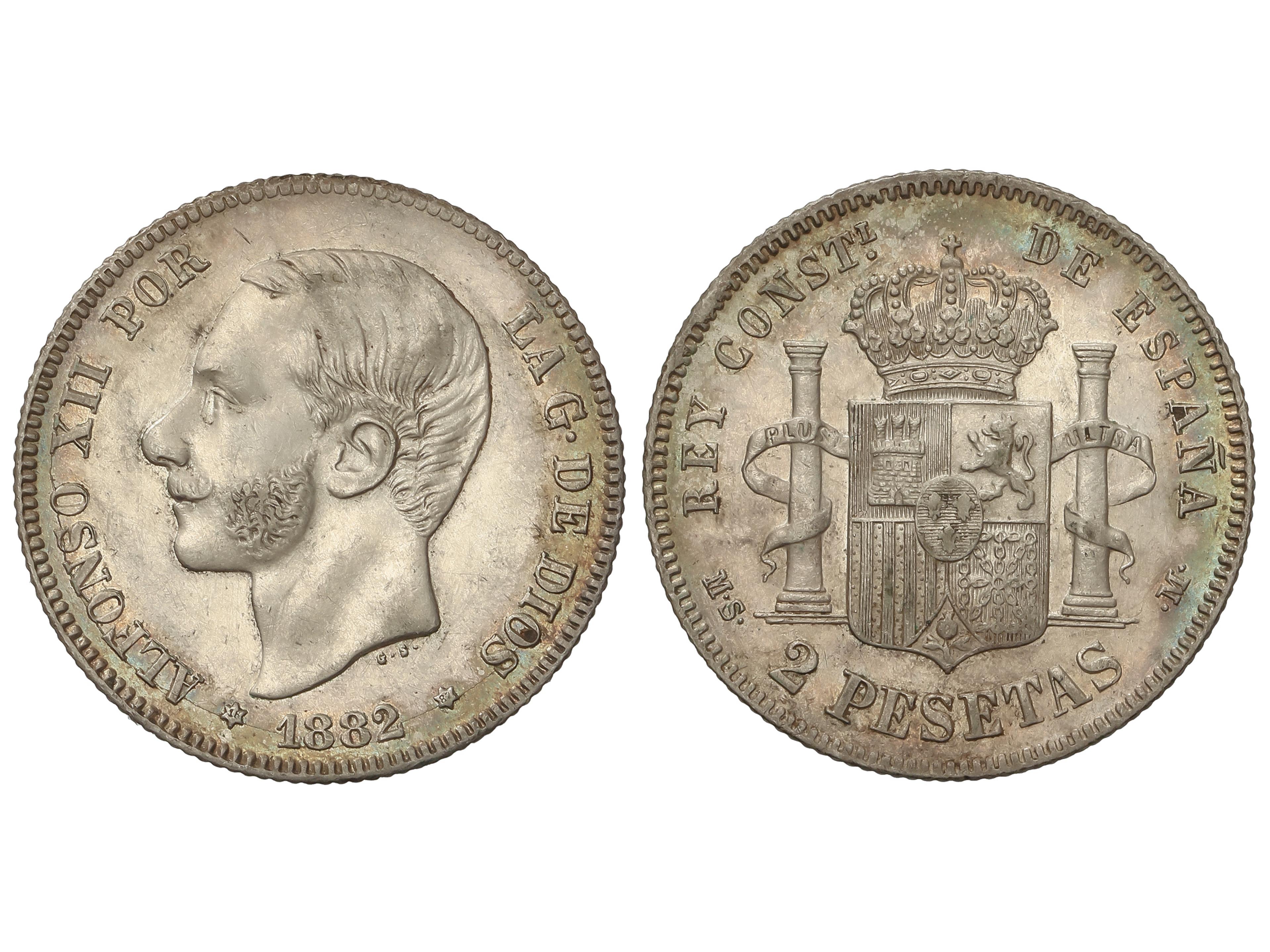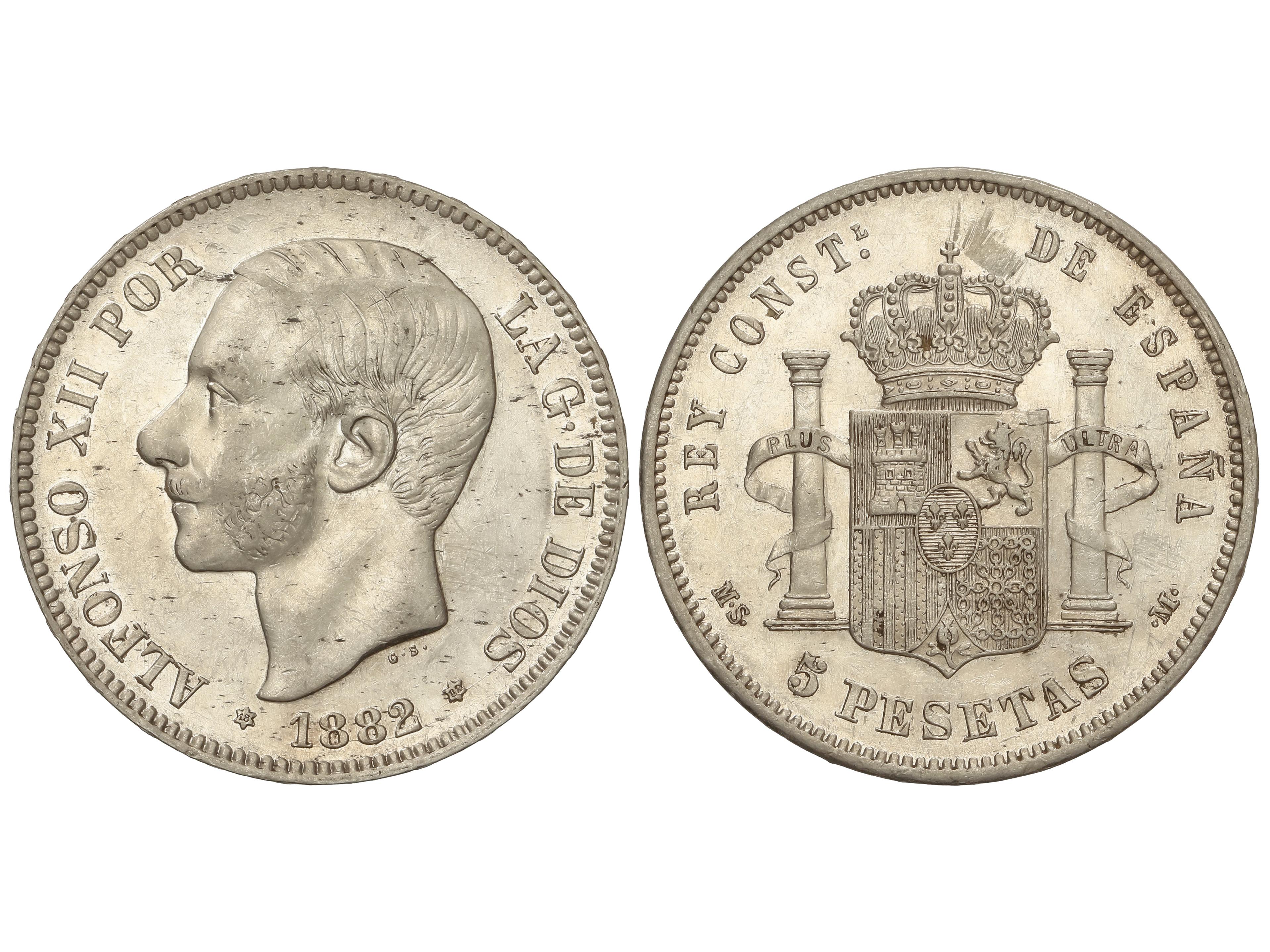Pesetas. 1882 (*18-82). M.S.-M. Pátina. AC-32. EBC-. (Image1)
