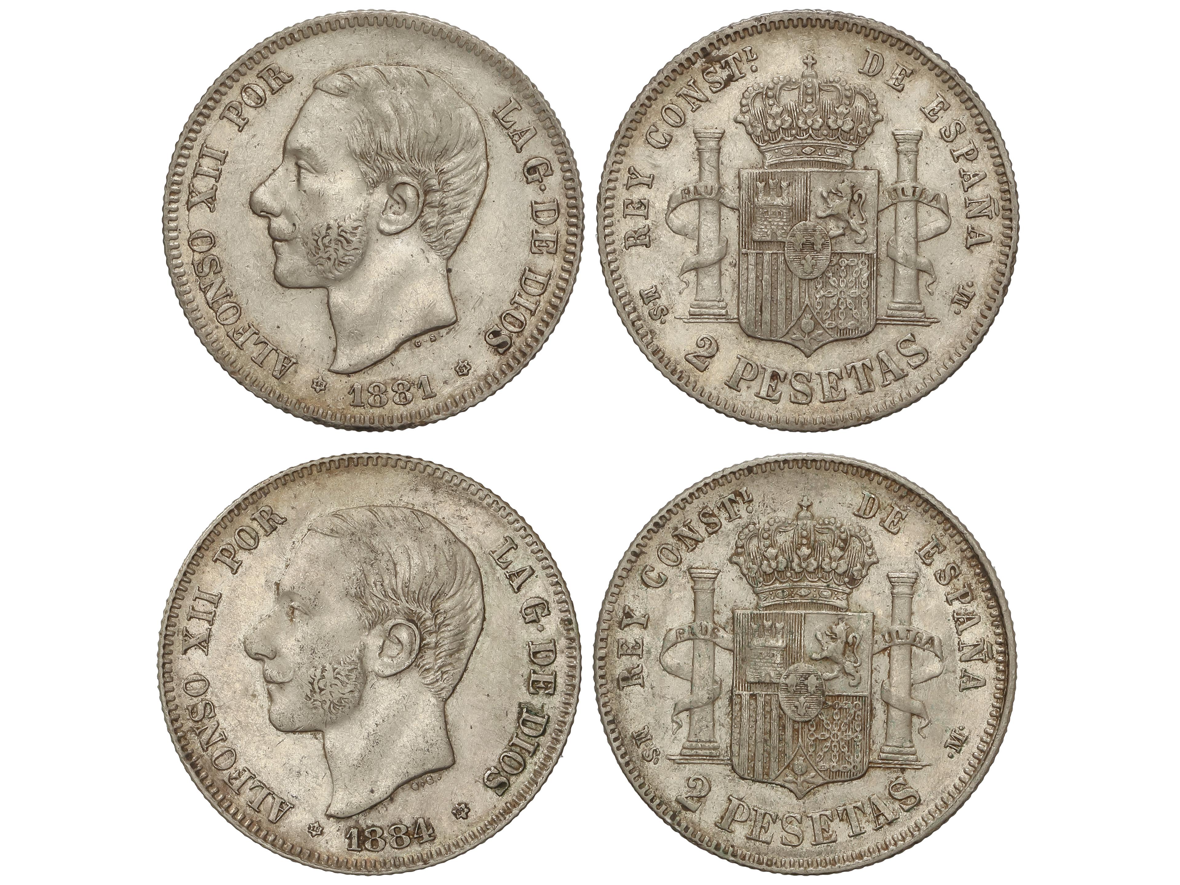 Lote 2 monedas 2 Pesetas. 1881 y 1884 (*81, 84). AC-28, 34. MBC+. (Image1)