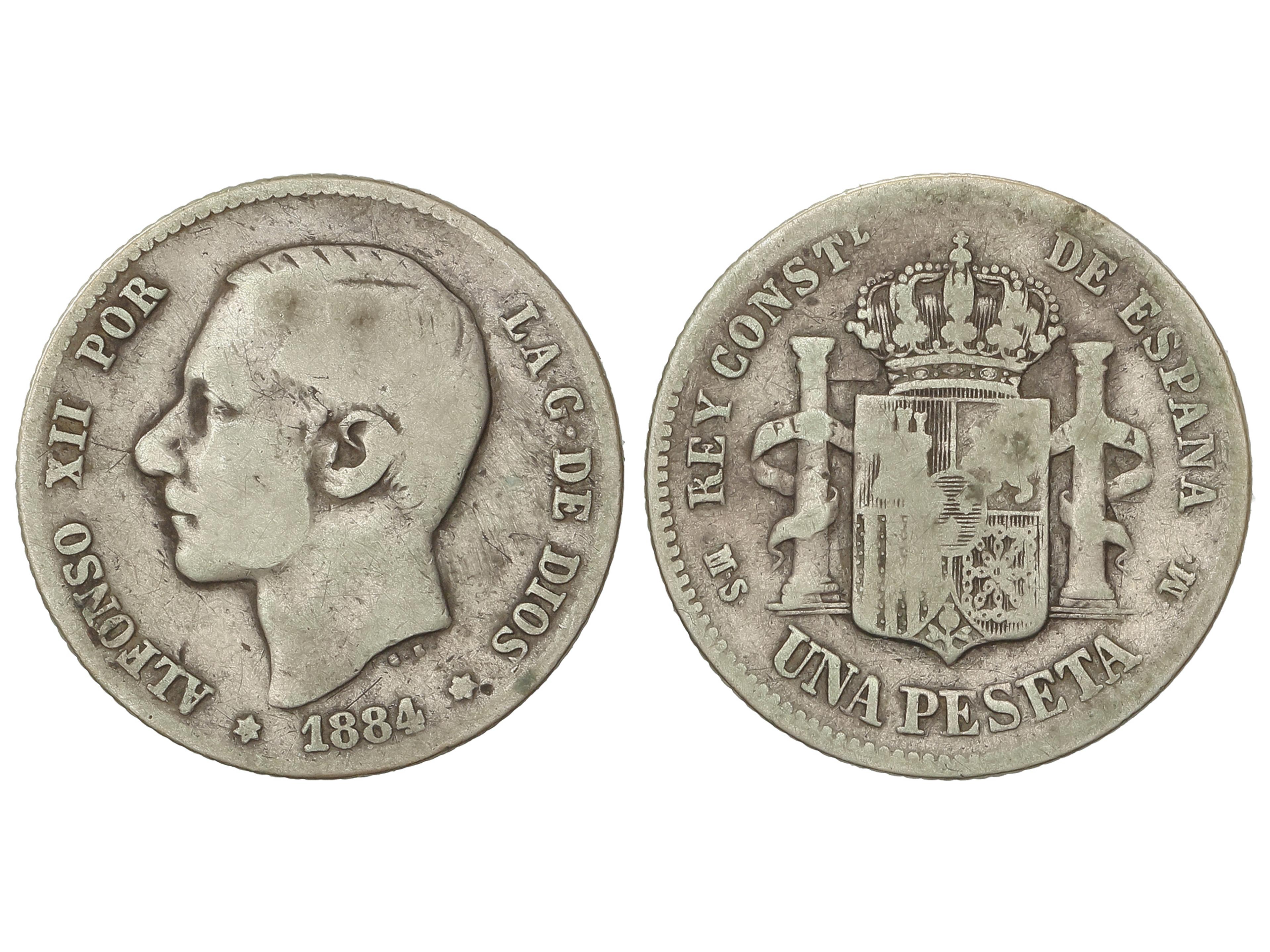 Peseta. 1884 (*_-_). M.S.-M. ESCASA. AC-23. MBC-. (Image1)