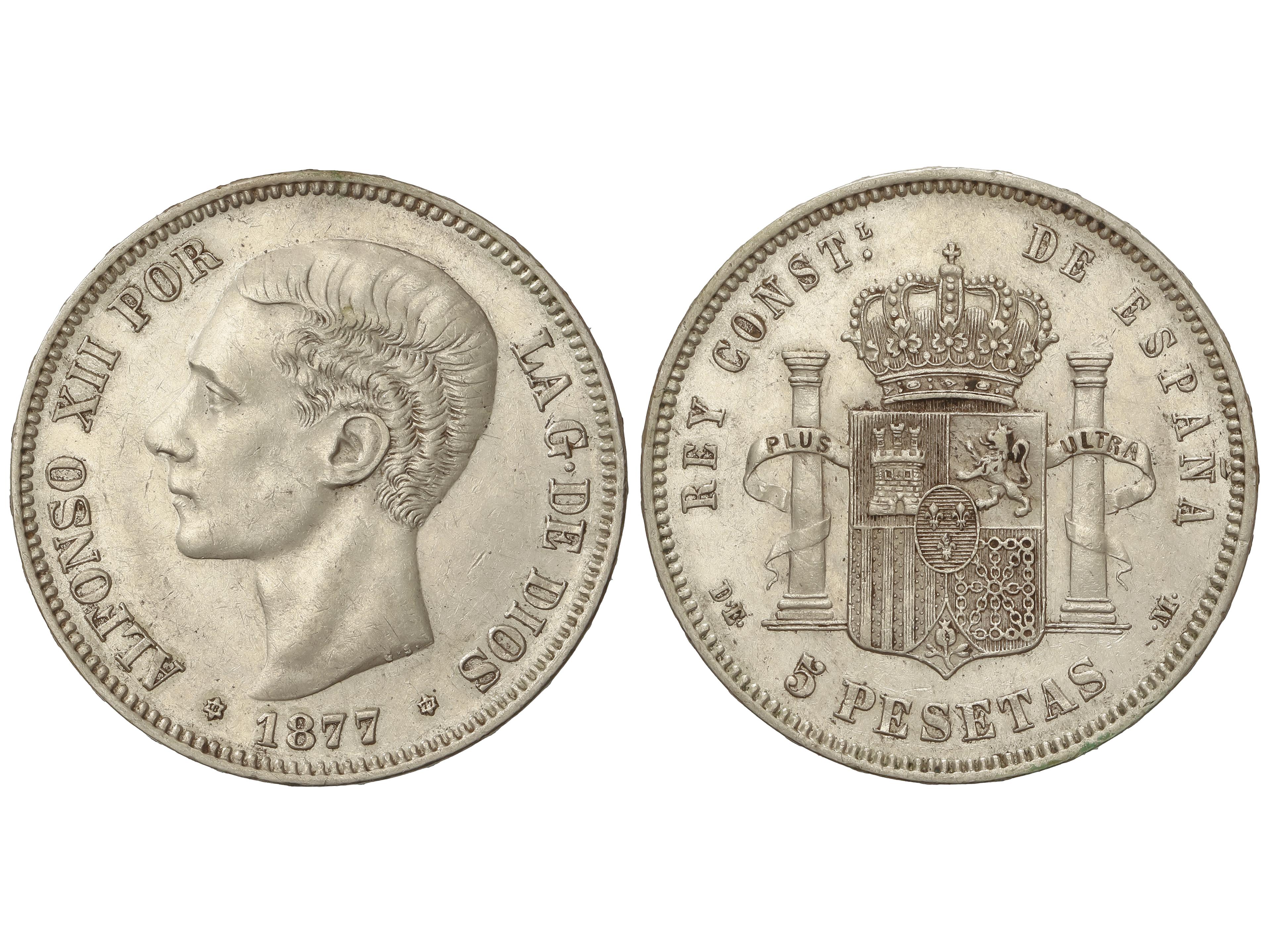 Pesetas. 1877 (*18-77). D.E.-M. AC-38. MBC+. (Image1)