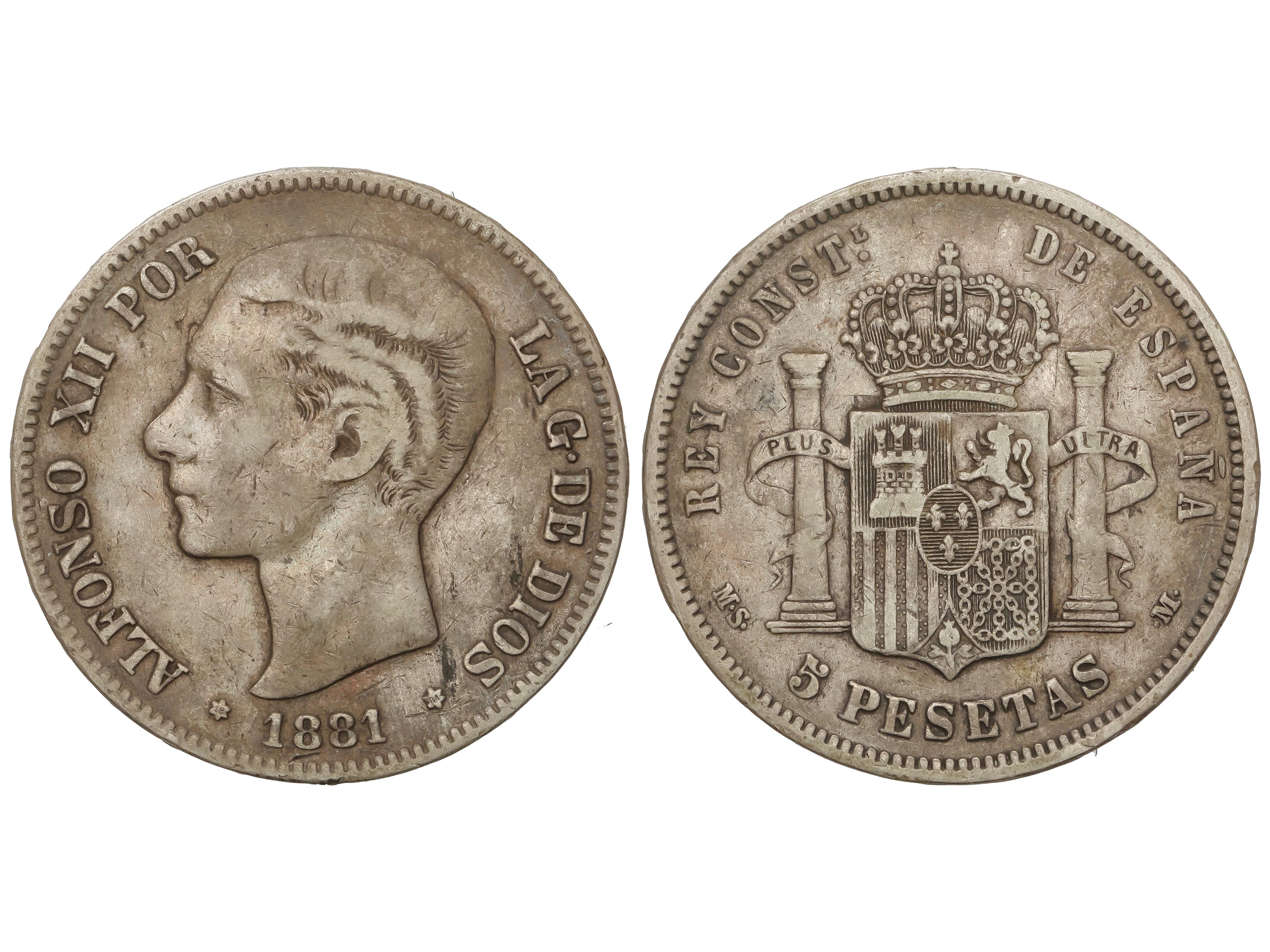 Pesetas. 1881 (*18-81). M.S.-M. AC-44. MBC-. (Image1)