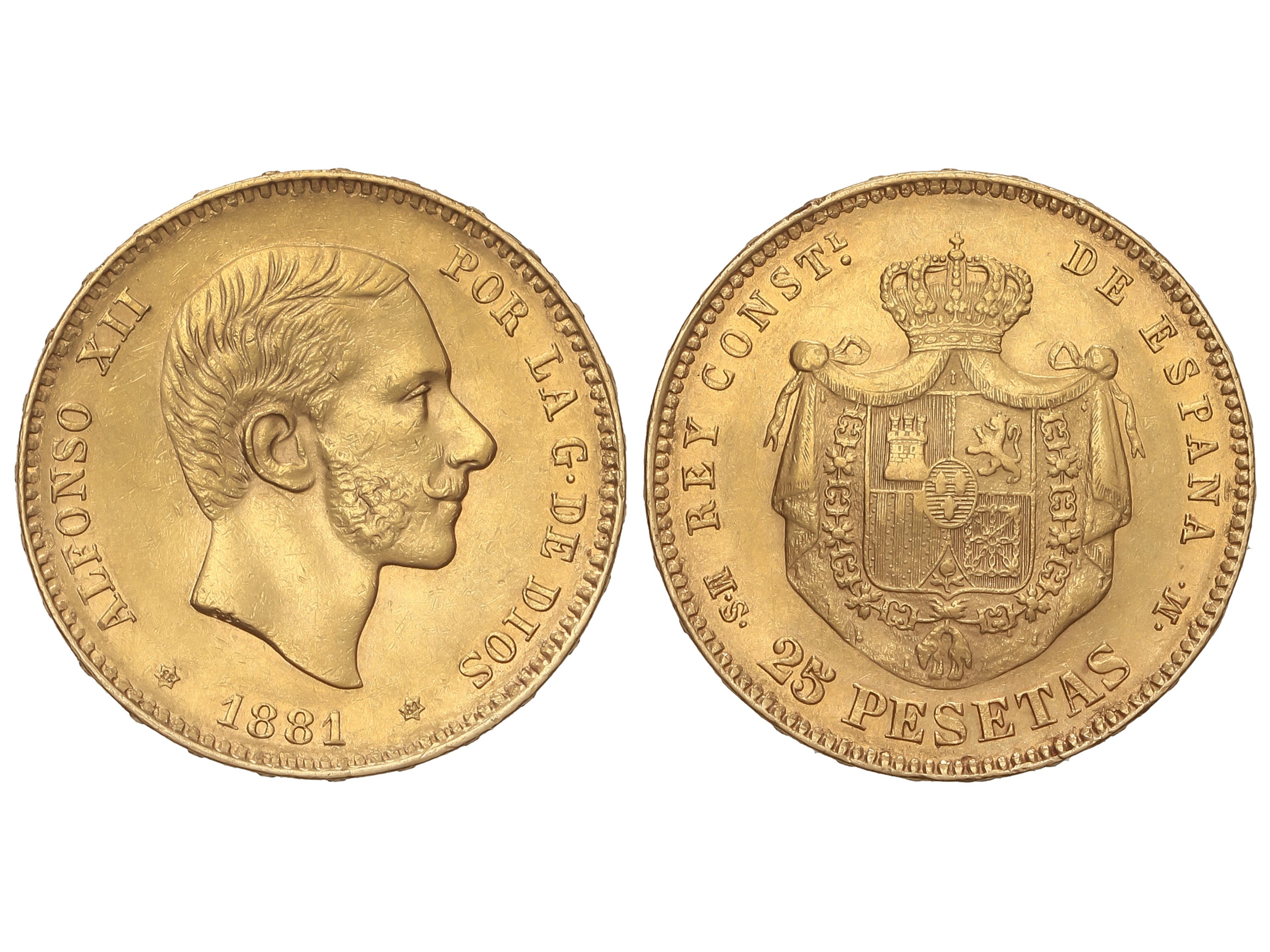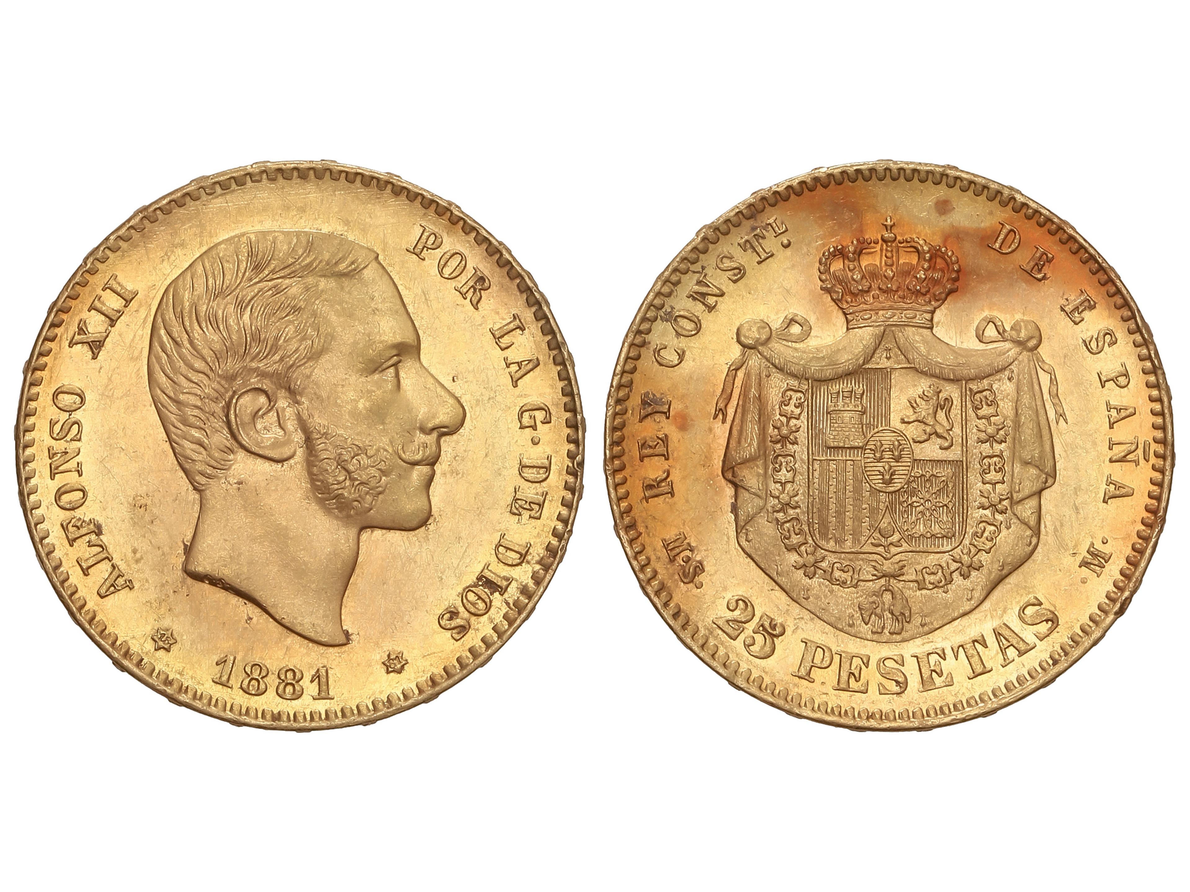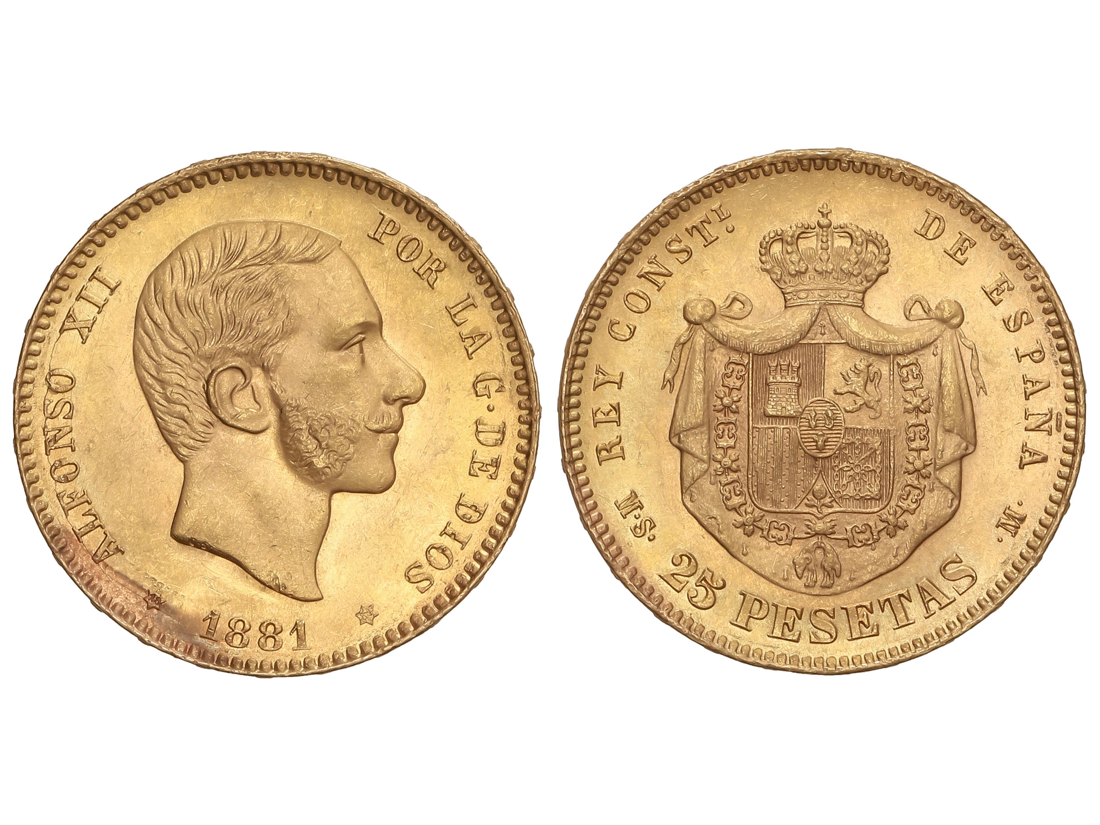 25 Pesetas. 1881 (*18-81). M.S.-M. 8,02 grs. AU (900). AC-82. EBC-. (Image1)
