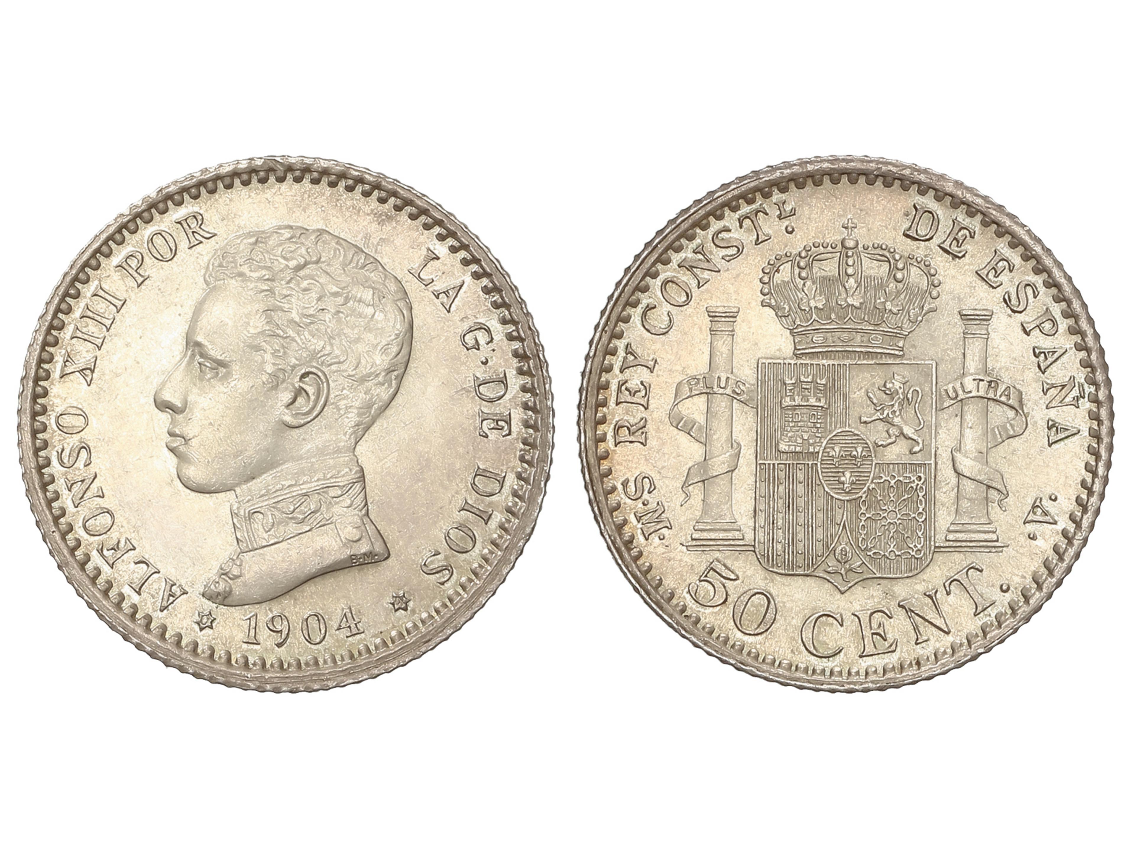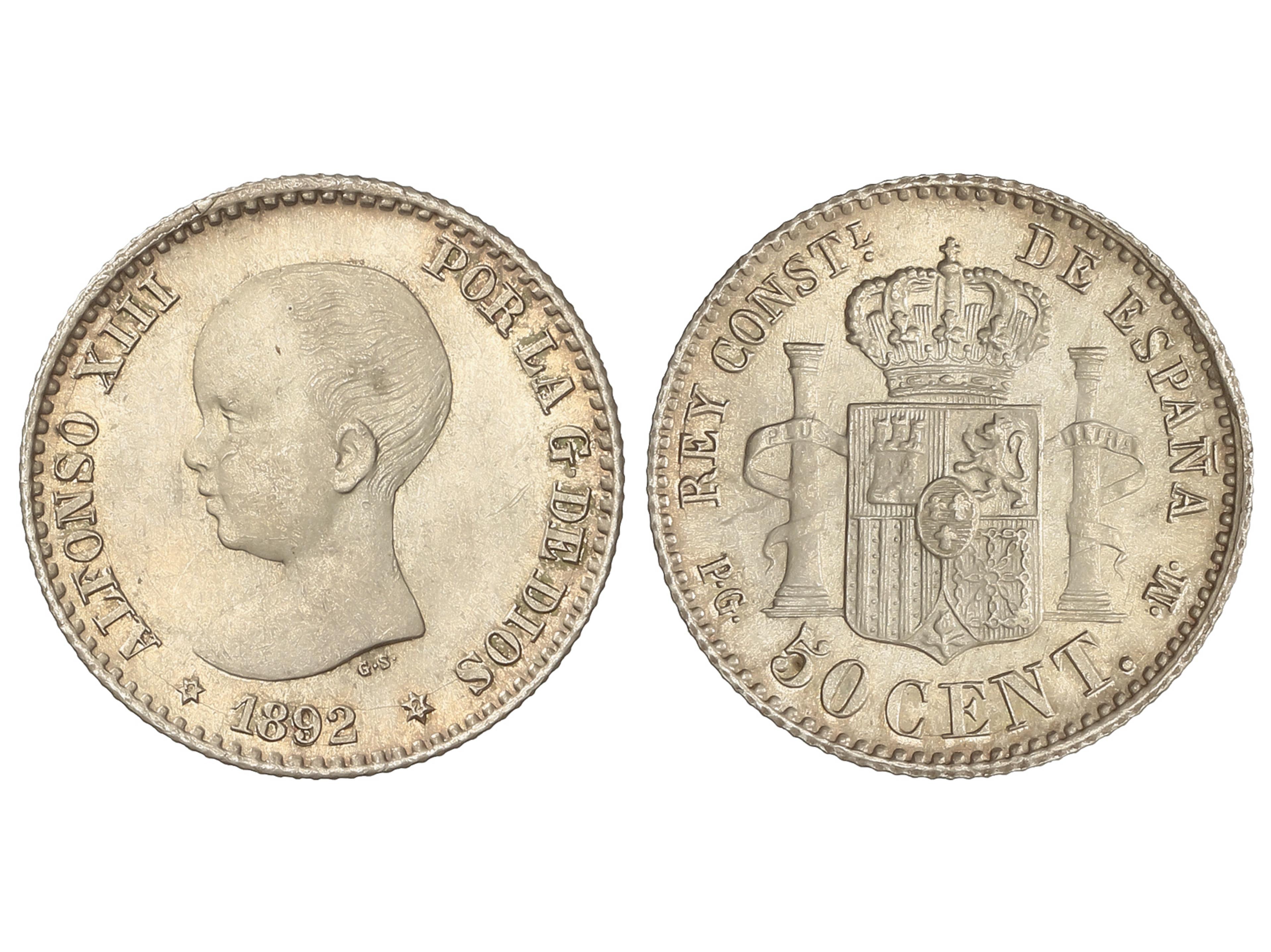 25 Pesetas. 1881 (*18-81). M.S.-M. 8,07 grs. AU (900). (Levísimos golpecitos). Brillo original con pátina anaranjada irregular en reverso. AC-82. SC-. (Image1)