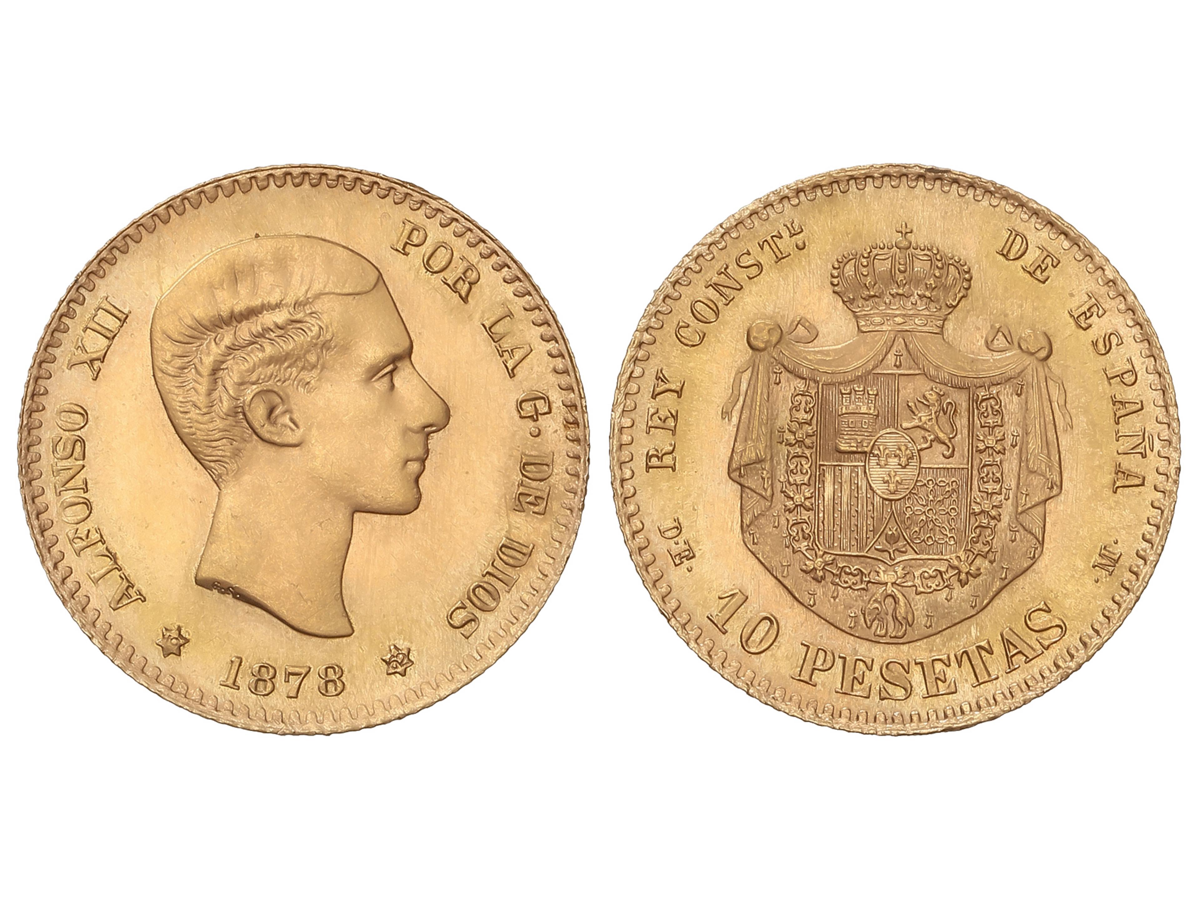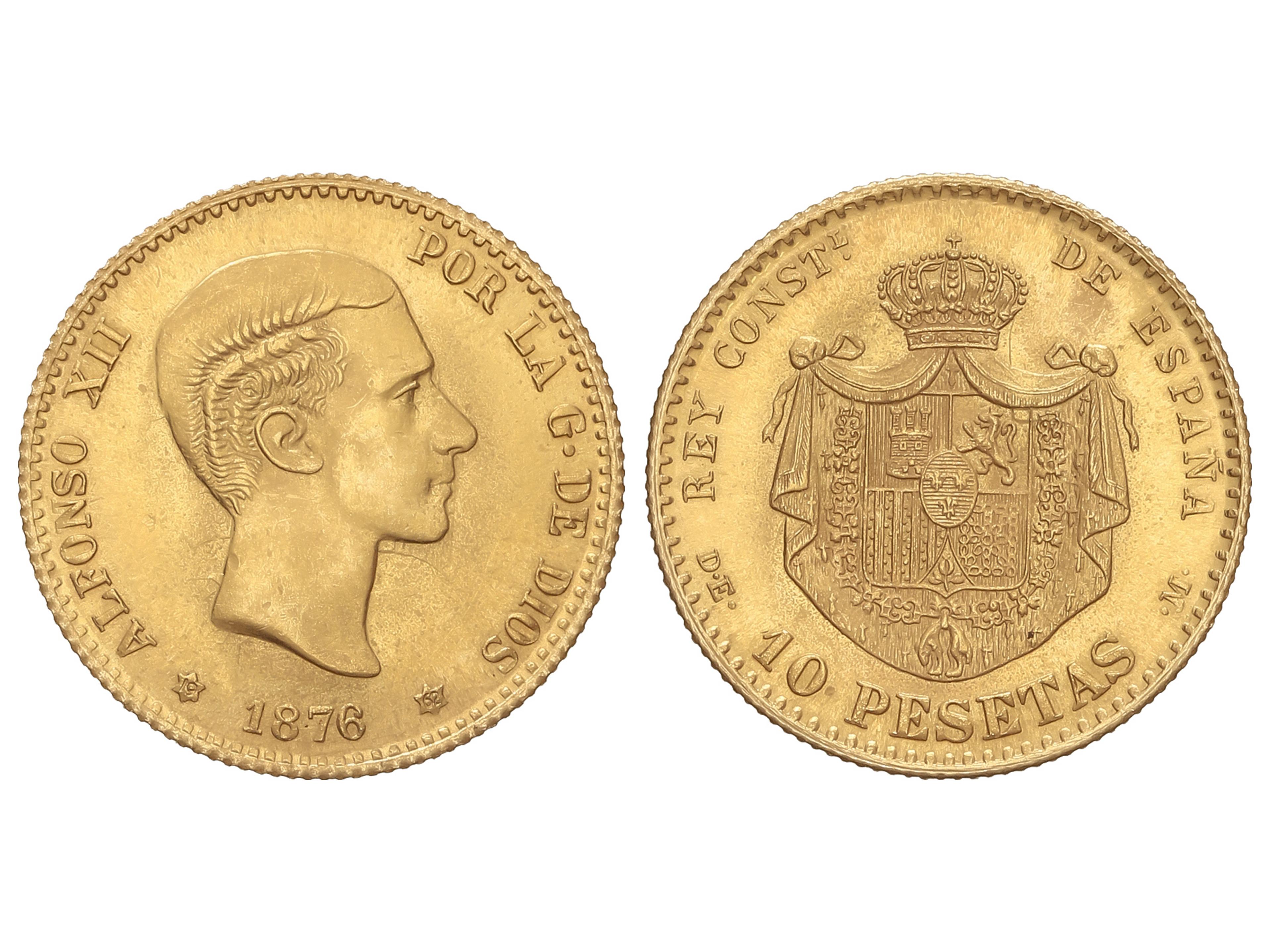 Reproduccción 10 Pesetas. 1876 (*19-62). D.E.-M. 3,16 grs. AU (800). EBC. (Image1)
