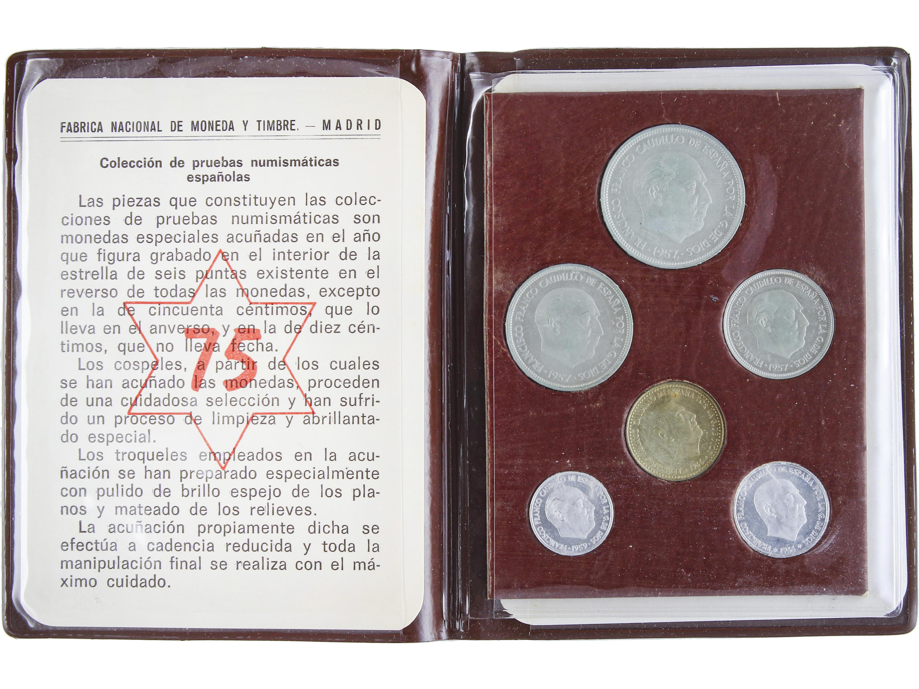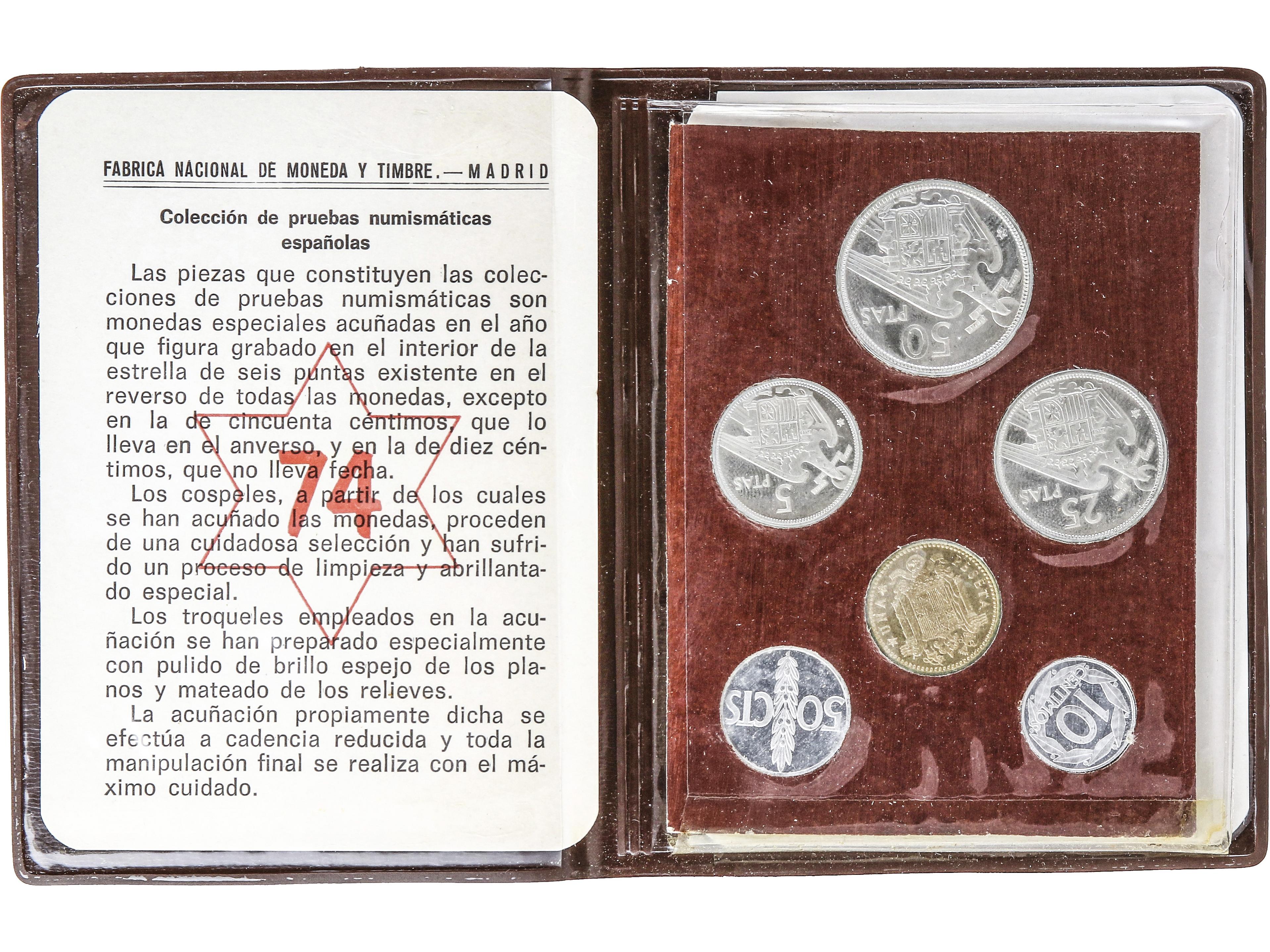 Lote 49 series 6 monedas 10 Céntimos a 50 Pesetas. (*75). En carteritas originales F.N.M.T. (Algunos aluminios con posibles oxidaciones). PRUEBAS. (Image1)