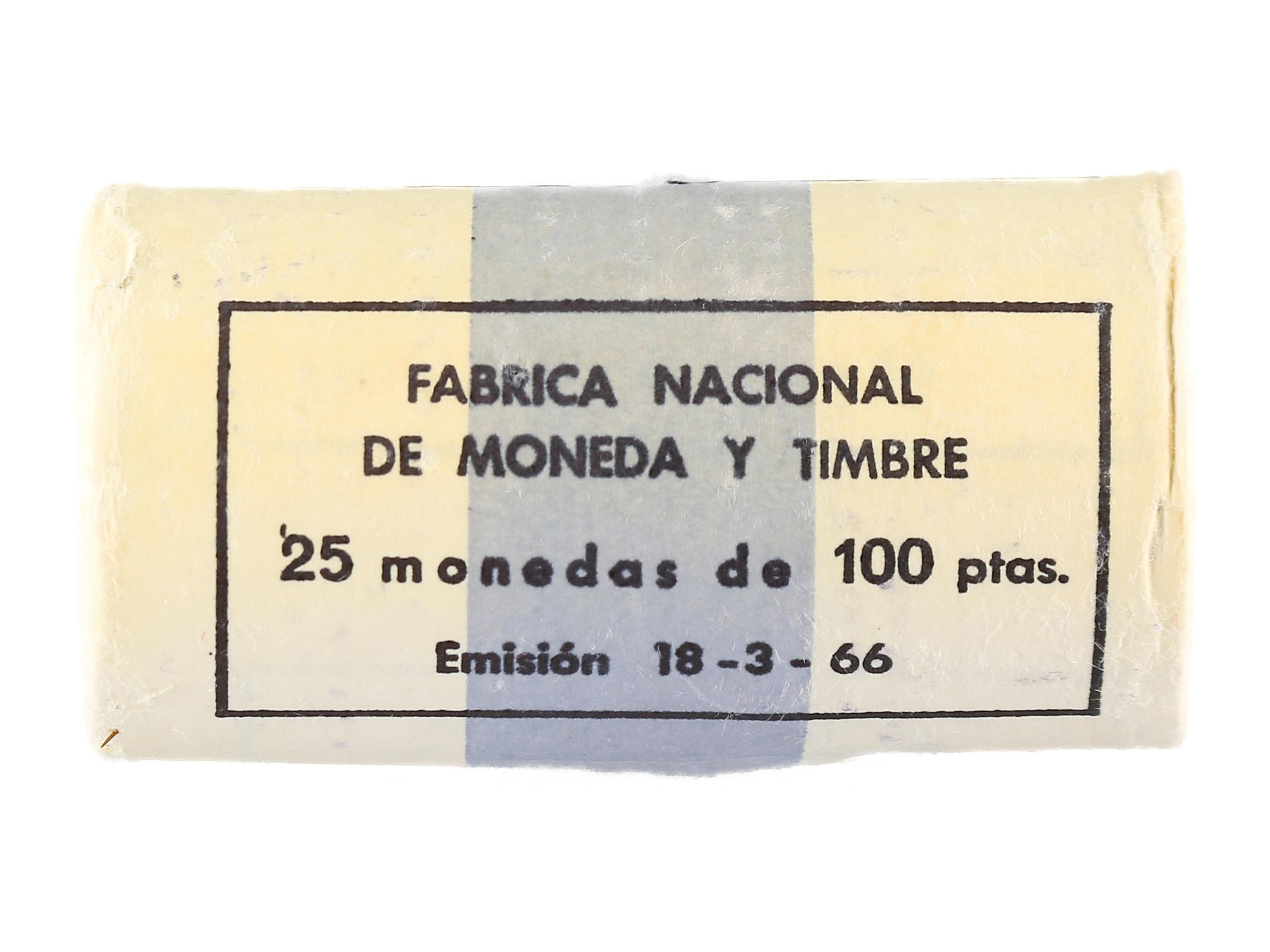 Lote 25 monedas 100 Pesetas. 1966 (*19-68). En cartucho original F.N.M.T. (Abierto, roto). SC. (Image1)
