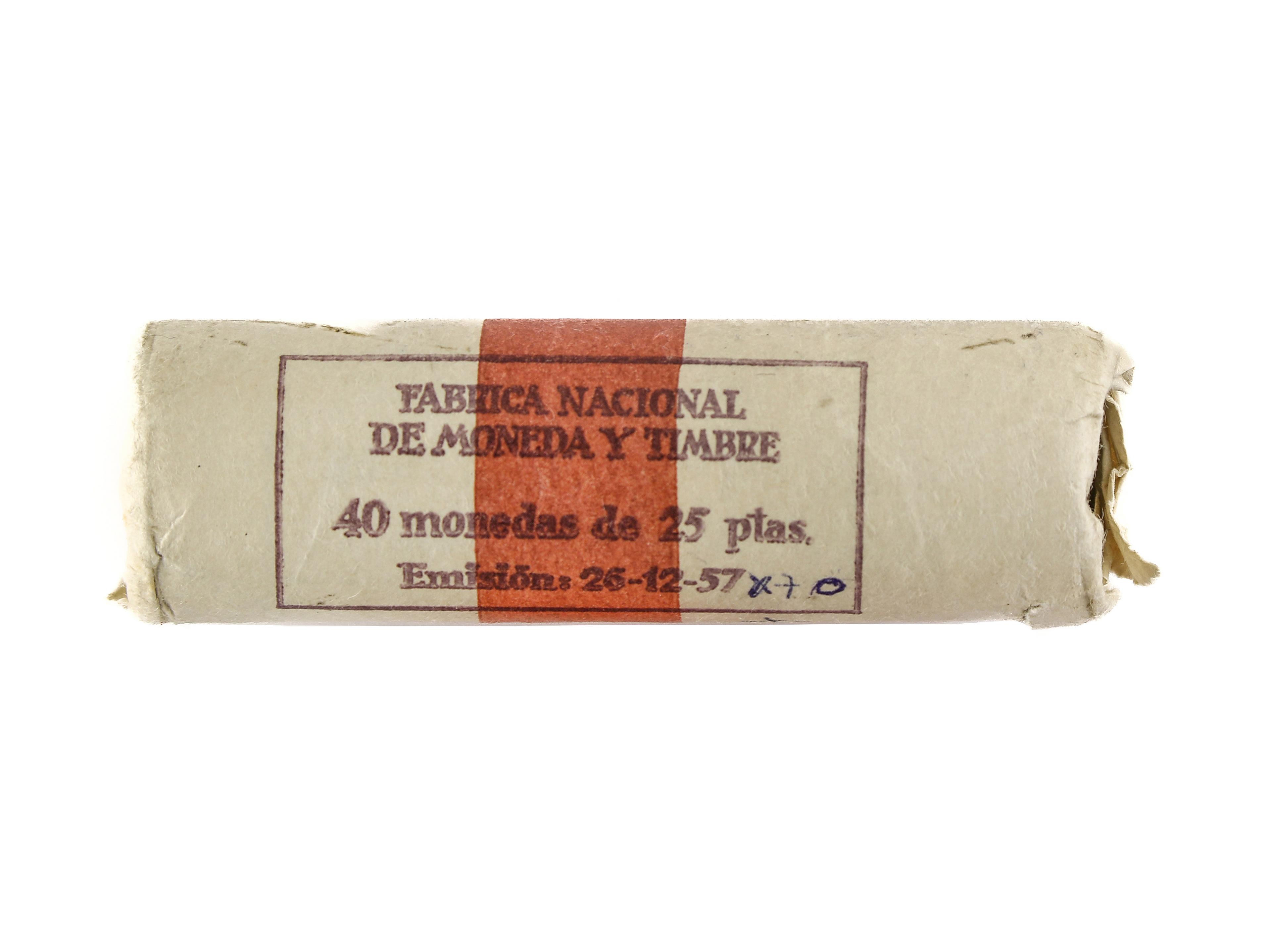 Lote 40 monedas 25 Pesetas. 1957 (*70). En cartucho original F.N.M.T. (Abierto). SC. (Image1)