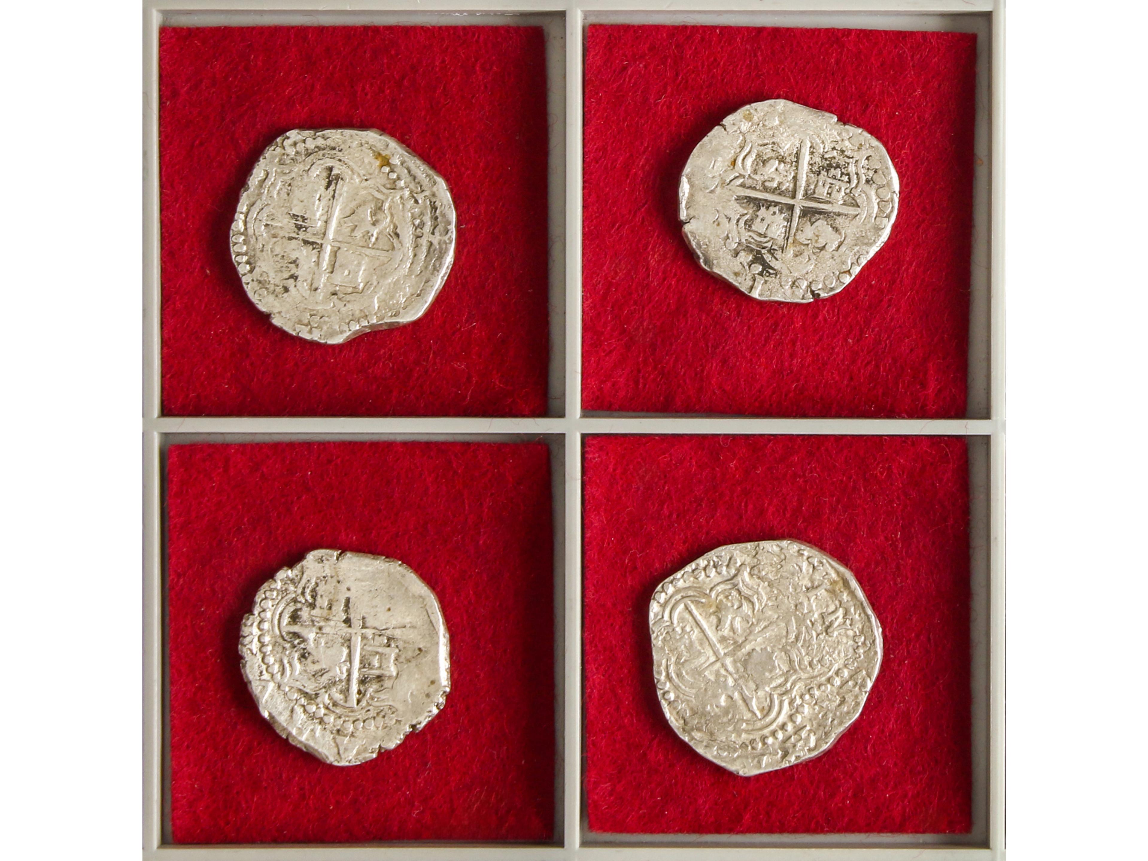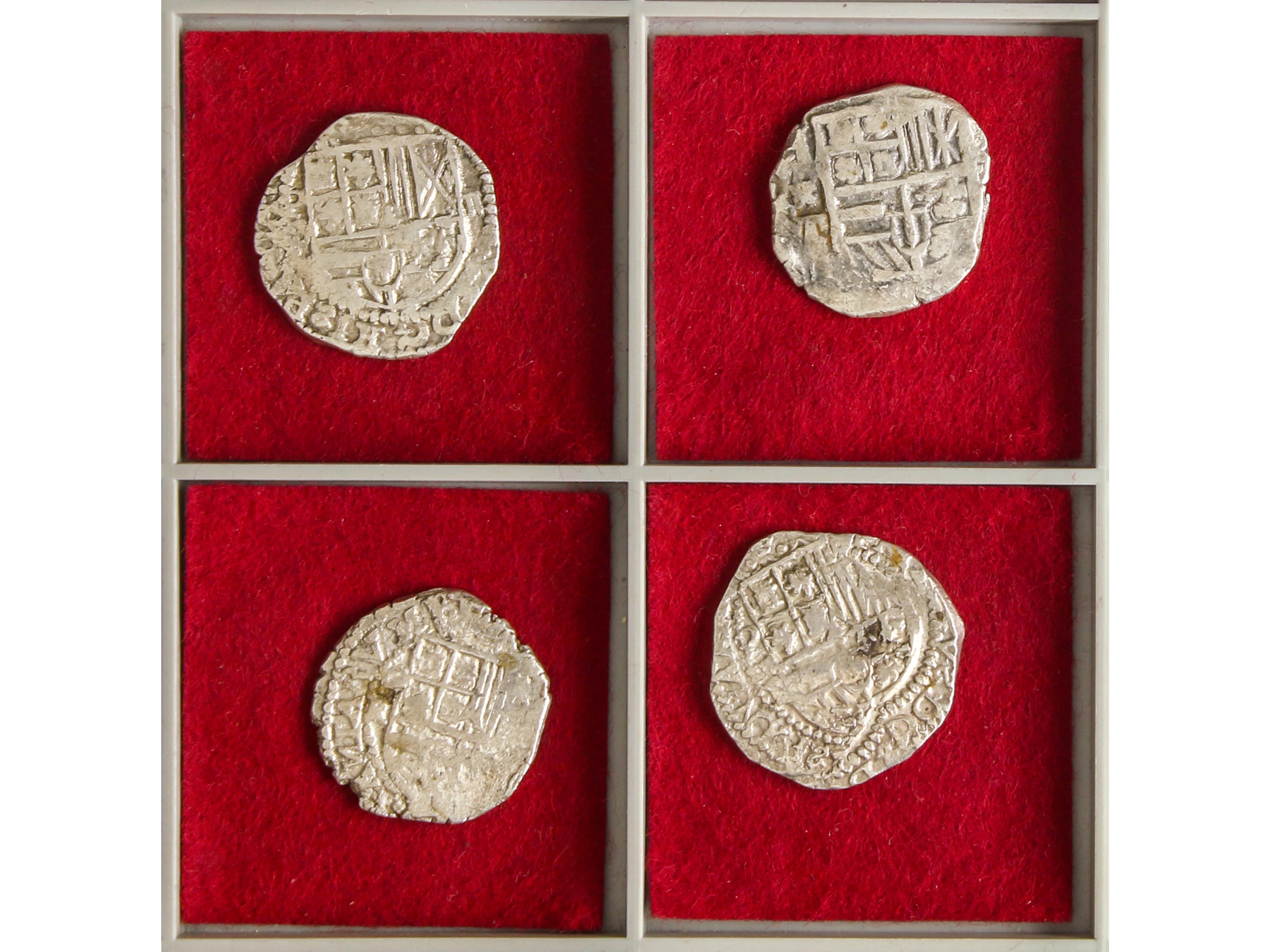 Lote 4 monedas Macuquinas. MONARQUÍA HISPÁNICA. AR. Módulo de 2 Reales. A IDENTIFICAR. BC+ a MBC-. (Image1) (Image2)