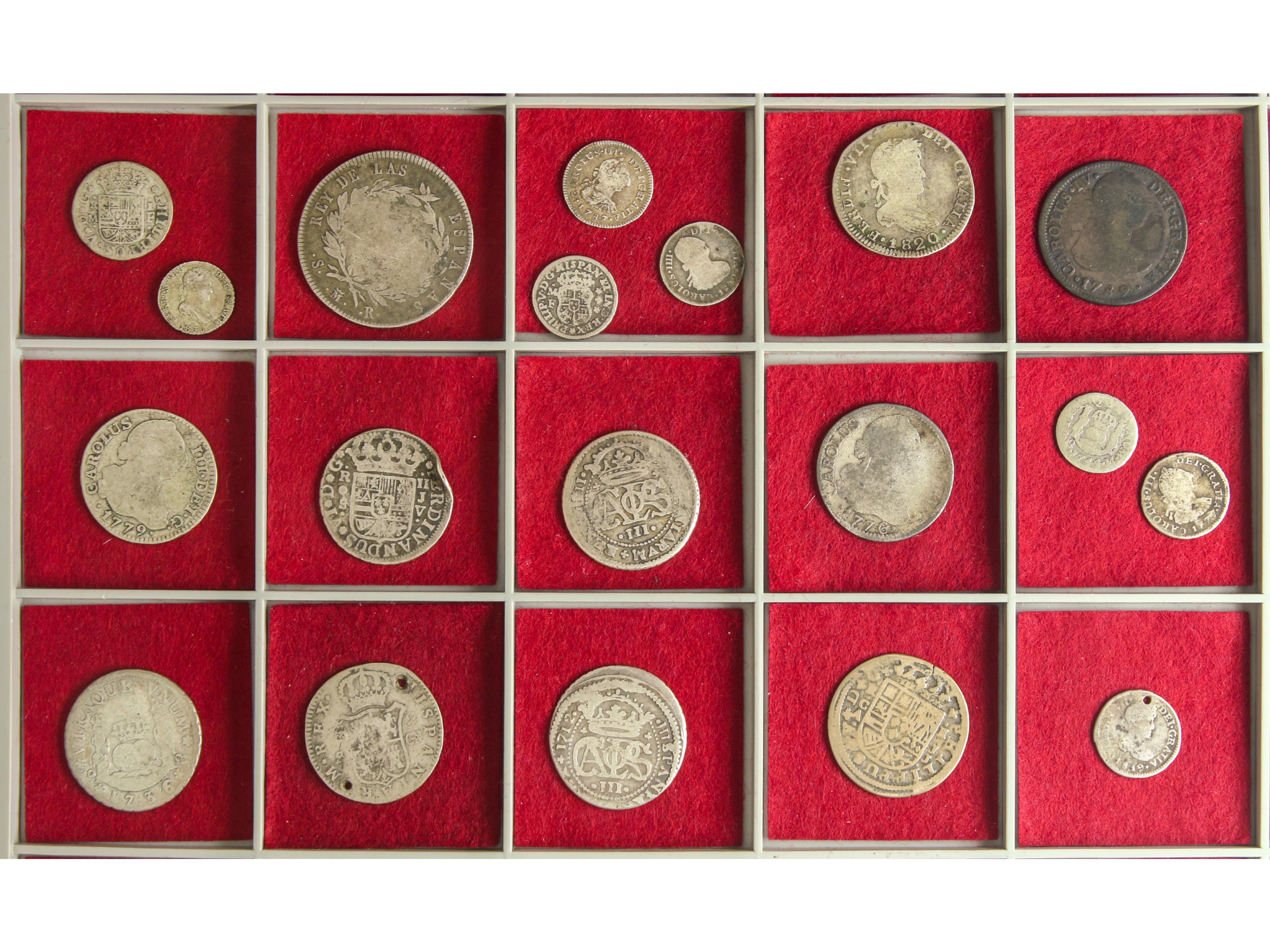 Lote 19 monedas 1/2 Real a 10 Reales. FELIPE V a FERNANDO VII. AR. A EXAMINAR. BC a MBC. (Image1)