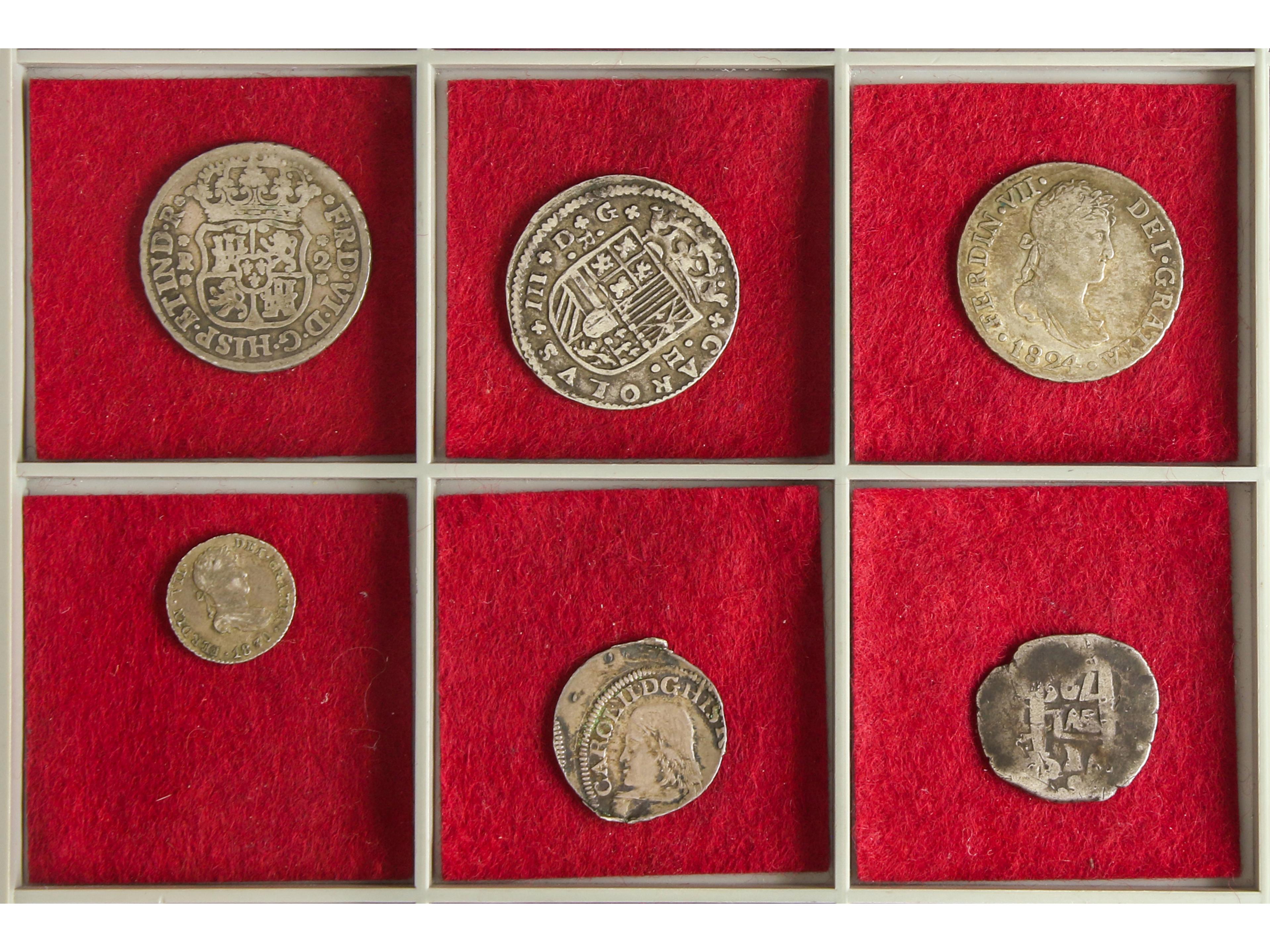Lote 6 monedas 1/2 Real a 2 Reales. CARLOS II a FERNANDO VII. AR. A EXAMINAR. BC+ a MBC. (Image1)