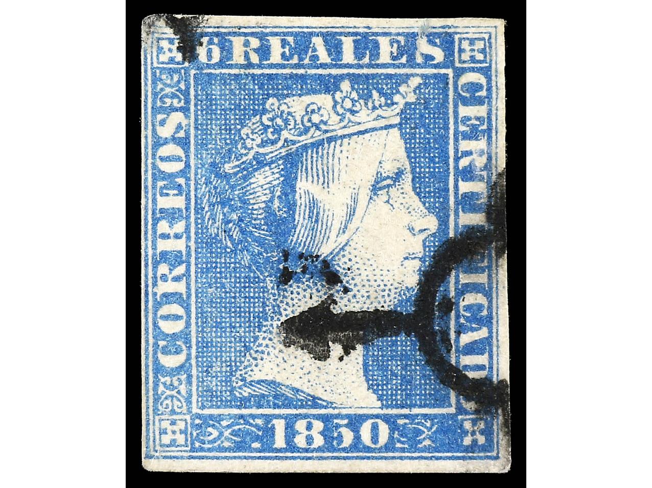 ESPAÑA. 6 reales azul. Tres amplios márgenes. Buen ejemplar. Ed.4. Cat. 825€. (Image1) (Image2)